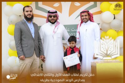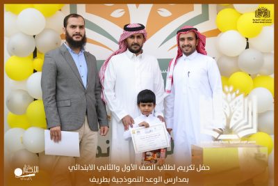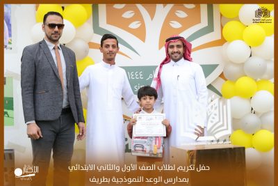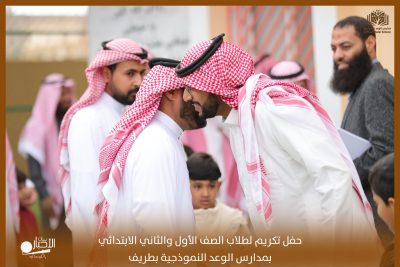 أقامت مدارس الوعد النموذجية الأهلية التابعة لجمعية رعاية الأيتام بمحافظة طريف حفل تكريم لطلاب الصف الأول والثاني الابتدائي وذلك بمناسبة نهاية الفصل الدراسي الأول.