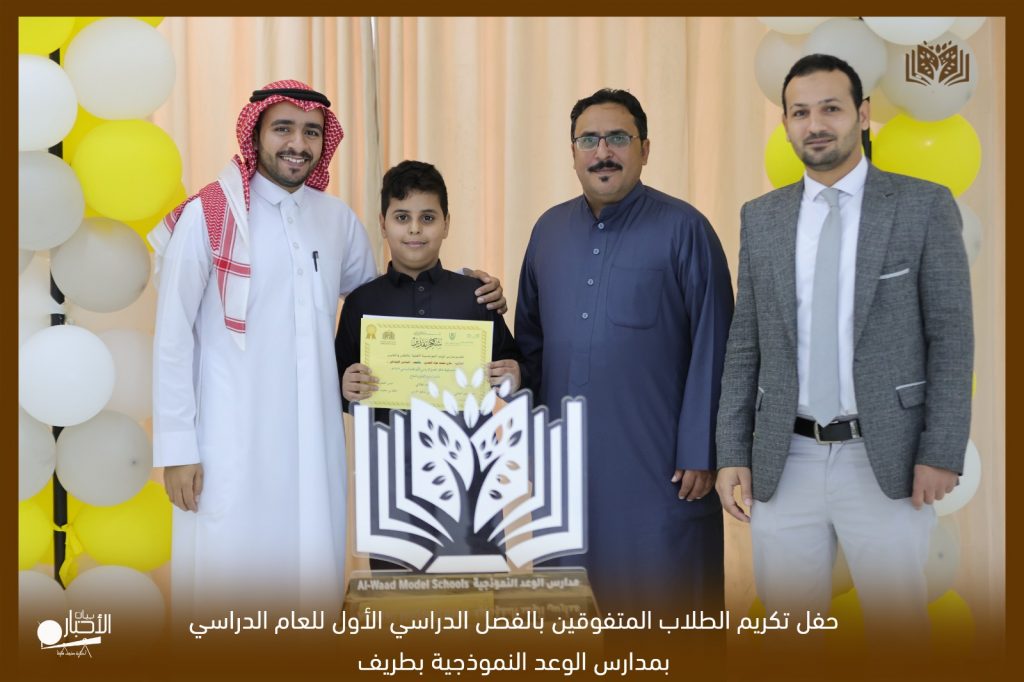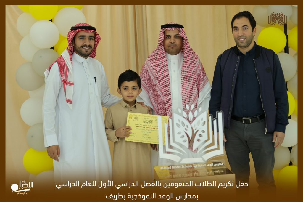 وقدمت مدارس الوعد الشكر لجميع منسوبي مدارس الوعد النموذجية الأهلية بطريف لتميزهم في الأداء و العطاء خلال الفصل الدراسي الأول، سائلين الله تعالى أن يستمروا على هذا العطاء و التميز والإبداع التي تليق بمدارسنا العريقة.