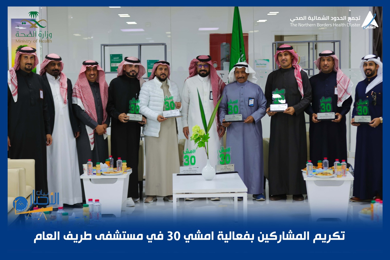 كرم سعادة مدير مستشفى طريف العام الأستاذ خالد بن مهل الرويلي عدد من الجهات المشاركة في فعالية ( امشي 30 ) والتي نظمها مستشفى طريف العام مؤخراً ،