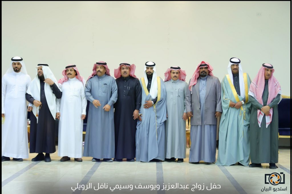 احتفل وسيمي نافل الرويلي، بزواج ابناءه “عبدالعزيز” و “يوسف” ، يوم الخميس ليلة الجمعة الموافق 16 / 5 / 1445 هـ بقصر ليالي طريف .، وذلك بحضور الأهل والأقارب والأصدقاء .