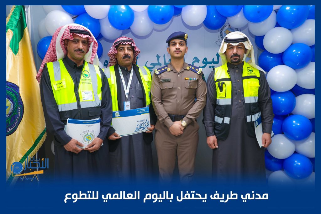 وتطرق مدير الدفاع المدني بمحافظة طريف النقيب مهندس حمود بن سعد المطيري خلال الاحتفال إلى أهمية نشر وتعزيز ثقافة العمل التطوّعي بين أفراد المجتمع، وتقدير جهود المتطوعين.