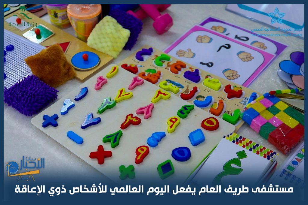 نظم مستشفى طريف العام بتجمع الحدود الشمالية الصحي، فعاليات اليوم العالمي لذوي الإعاقة بحضور مساعد مدير مستشفى طريف العام للخدمات الطبية المساعدة الأستاذ / ثامر غصاب الرويلي والذي دشن الفعاليات المقامة بمناسبة اليوم العالمي لذوي الإعاقة.