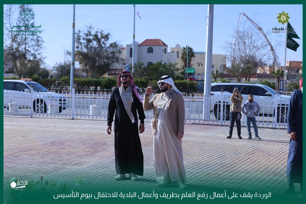 وقف رئيس بلدية محافظة طريف الدكتور محمد بن هلان الوردة ، على أعمال رفع العلم استعداداً لرفع راية المملكة في يوم التأسيس.