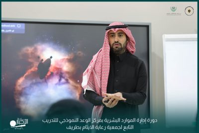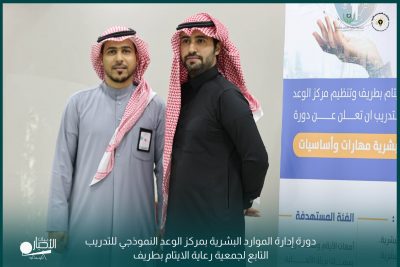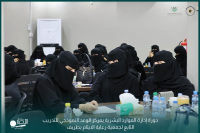 أقامت جمعية رعاية الأيتام بطريف بالتعاون مع مركز الوعد النموذجي للتدريب دورة إدارة الموارد البشرية أساسيات ومبادئ للمدرب فهيد عايد العنزي.
