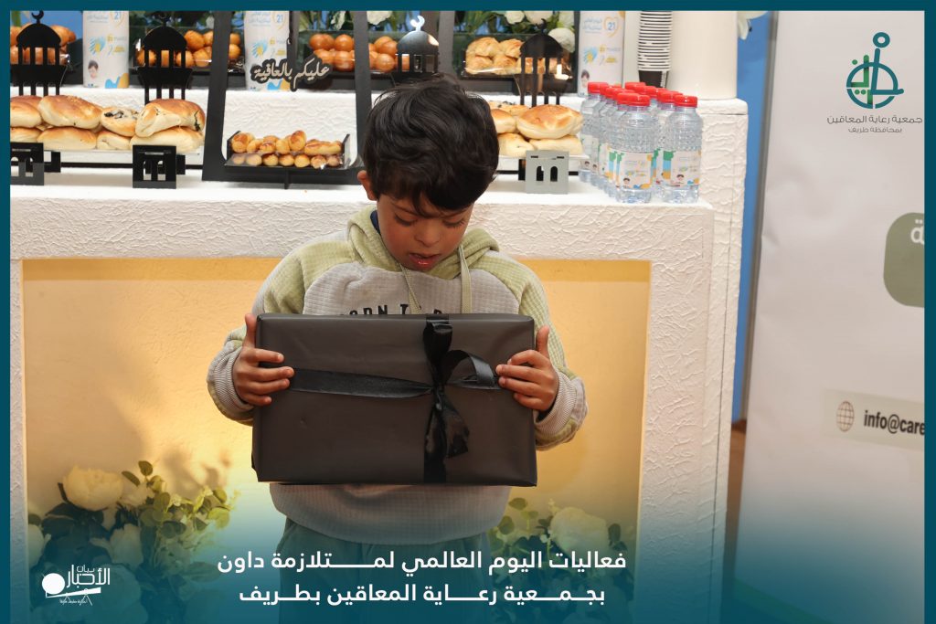 فعلت جمعية رعاية المعاقين بطريف ( اليوم العالمي لمتلازمة داون ) بحضور المدير التنفيذي الأستاذة وفاء علي الهزيمي ، وحضور بعض مستفيدي الجمعية .