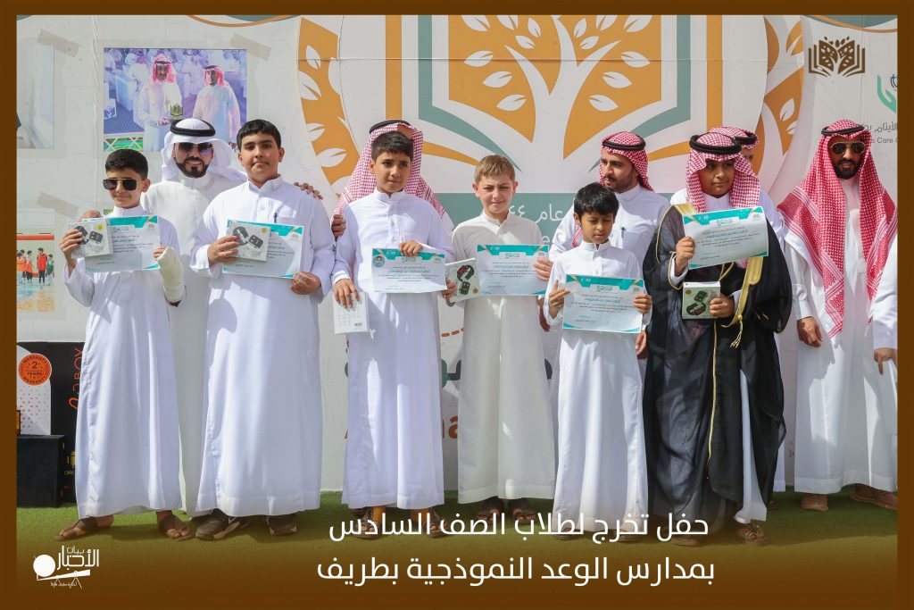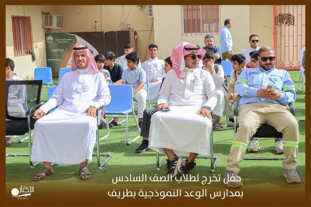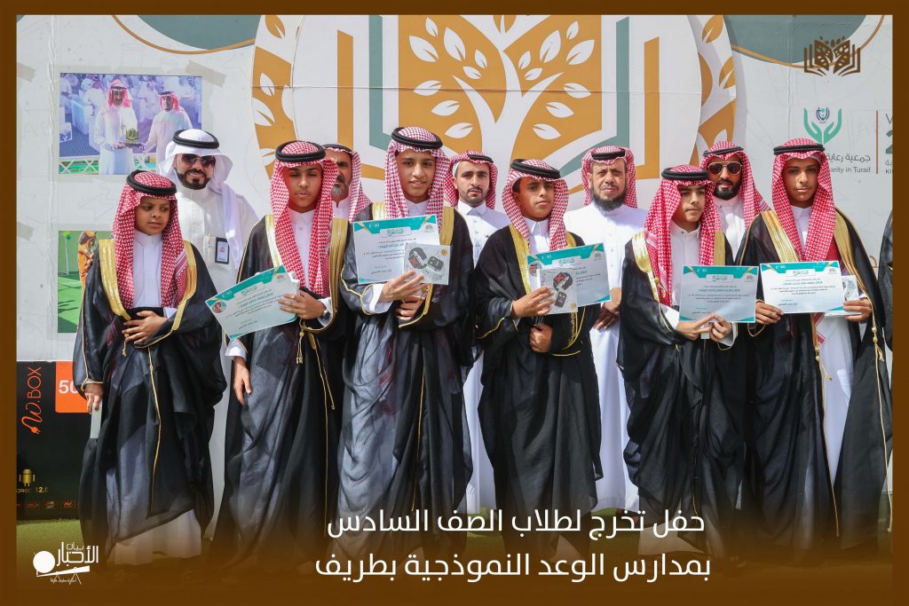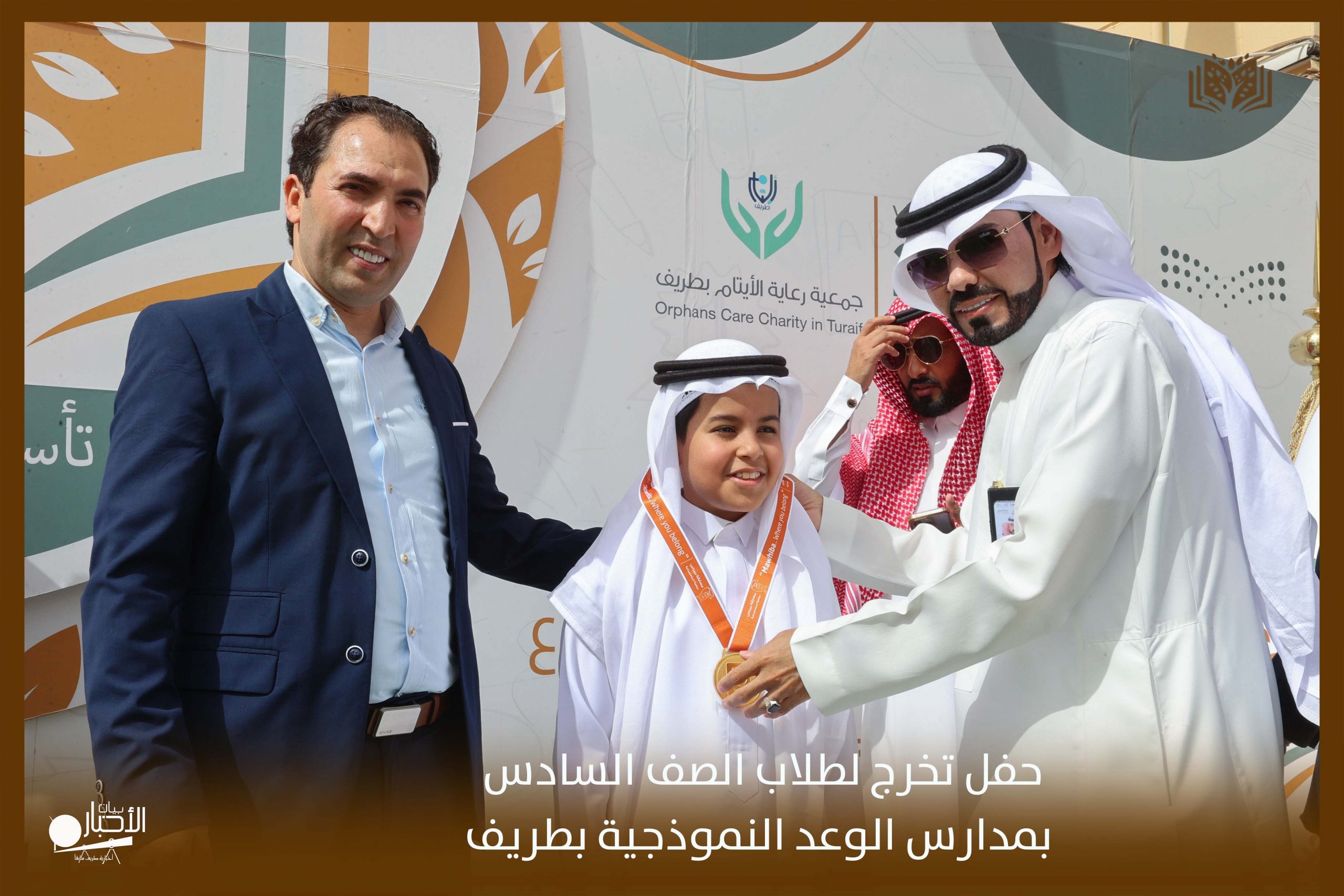 أقامت مدارس الوعد النموذجية الأهلية التابعة لجمعية رعاية الأيتام بمحافظة طريف حفل تخرج لطلاب الصف السادس بالمرحلة الإبتدائية وطلاب الصف الثالث بالمرحلة المتوسطة وذلك بحضور السادة أعضاء جمعية رعاية الأيتام الأستاذ محمد حجي الشمري والأستاذ محمد جويعد الرويلي والأستاذ طلال لهيلهم العنزي ٠