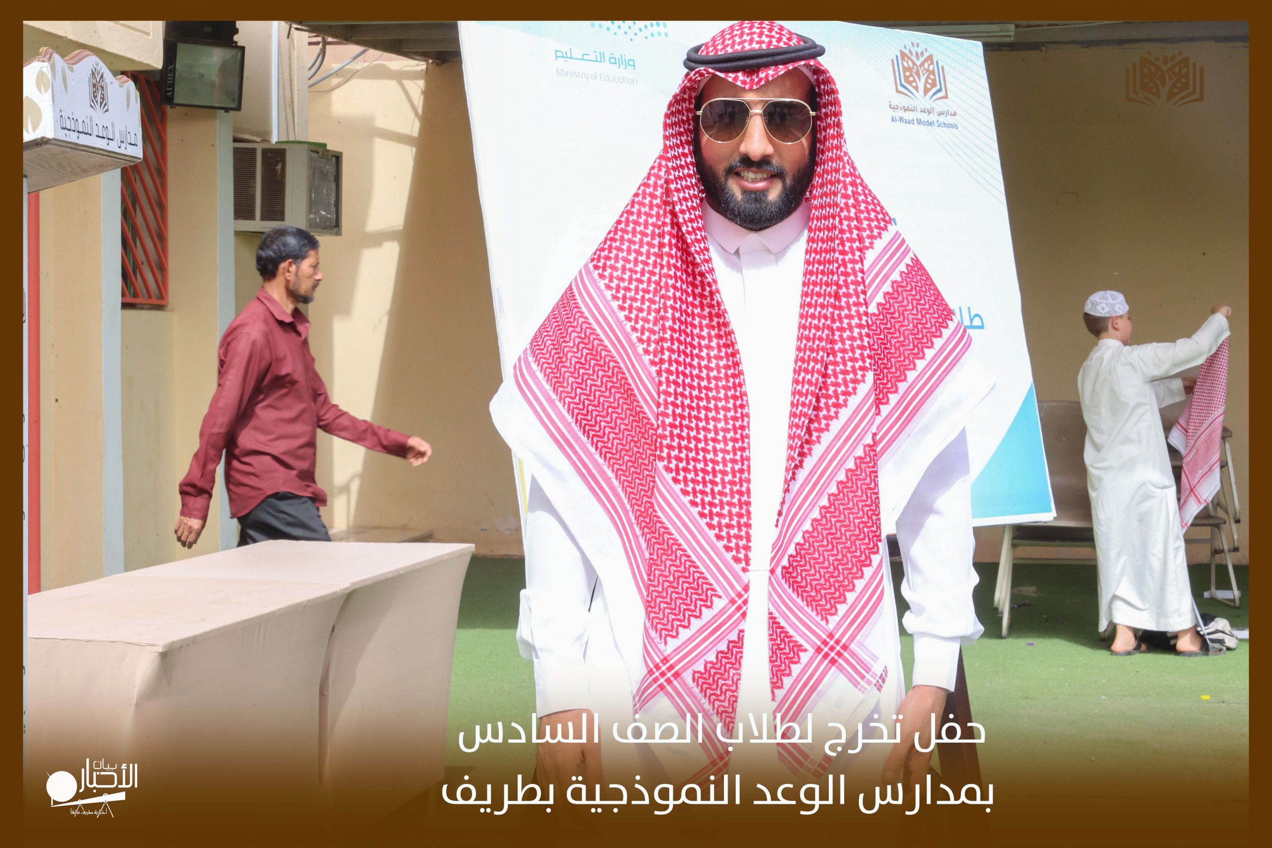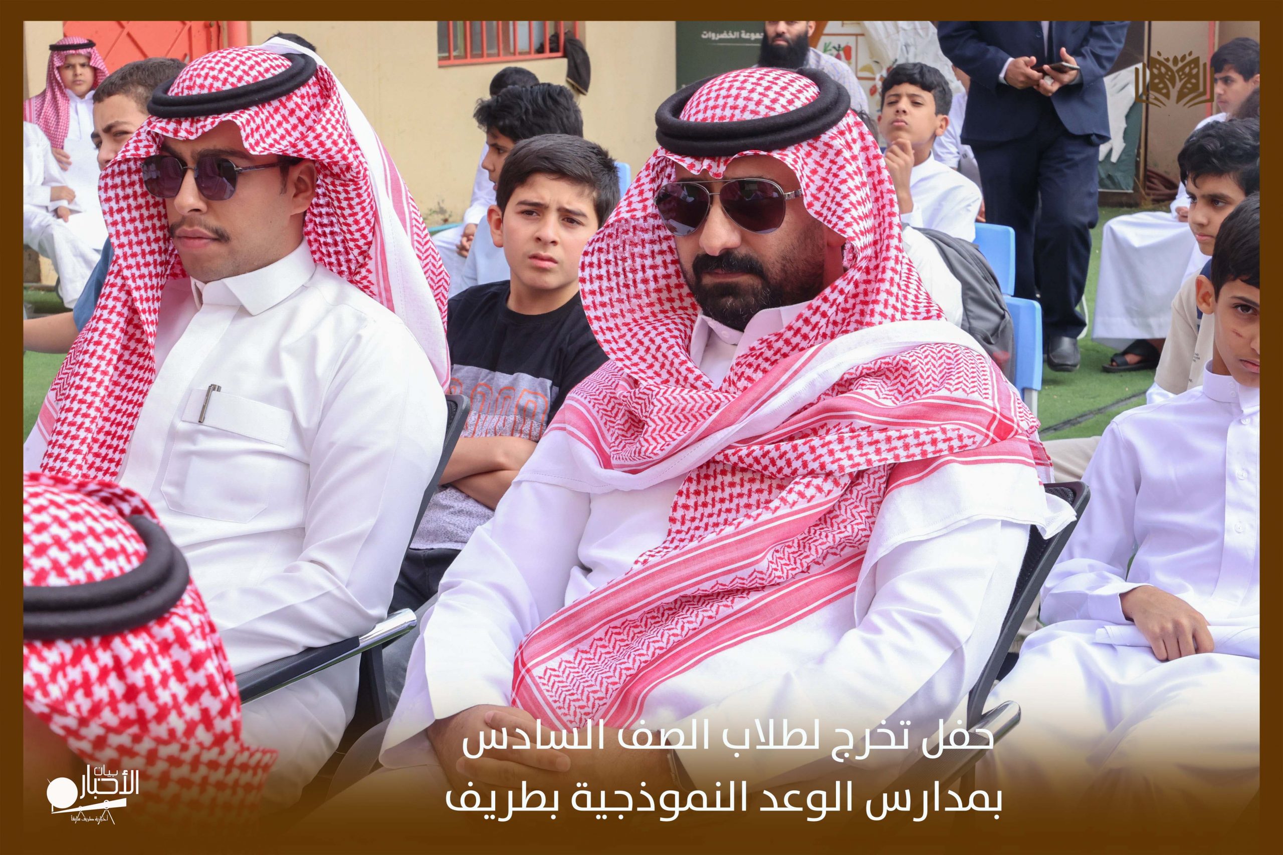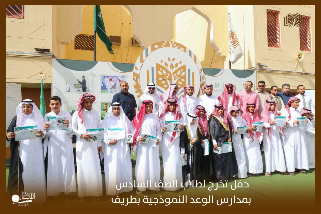 أقامت مدارس الوعد النموذجية الأهلية التابعة لجمعية رعاية الأيتام بمحافظة طريف حفل تخرج لطلاب الصف السادس بالمرحلة الإبتدائية وطلاب الصف الثالث بالمرحلة المتوسطة وذلك بحضور السادة أعضاء جمعية رعاية الأيتام الأستاذ محمد حجي الشمري والأستاذ محمد جويعد الرويلي والأستاذ طلال لهيلهم العنزي ٠
