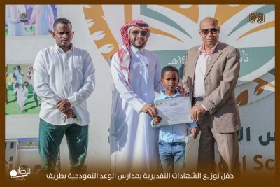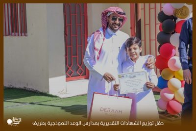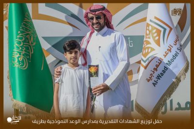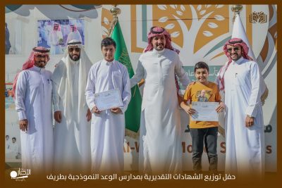 نظمت مدارس الوعد النموذجية الأهلية التابعة لجمعية رعاية الأيتام بمحافظة طريف حفلًا لطلابها وذلك بمناسبة النجاح والتفوق وحصولهم على أعلى الدرجات.