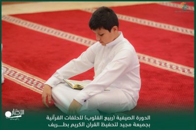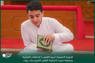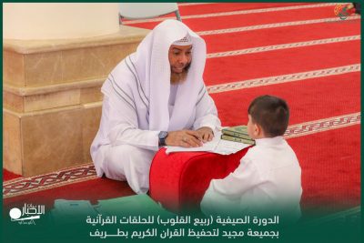 والجدير بالذكر أن الدورة الصيفية قد خصص فيها حلقة خاصة للتلقين وحلقة خاصة للمرحلة المتوسطة والثانوية لحفظ جزء عم وحلقة لتصحيح التلاوة وحلقات عامة للحفظ والمراجعة، سائلين المولى عز وجل أن ينفع الطلاب وأن ينفع بهم وأن يجعلهم من أهل القرآن الذين هم أهل الله وخاصته.