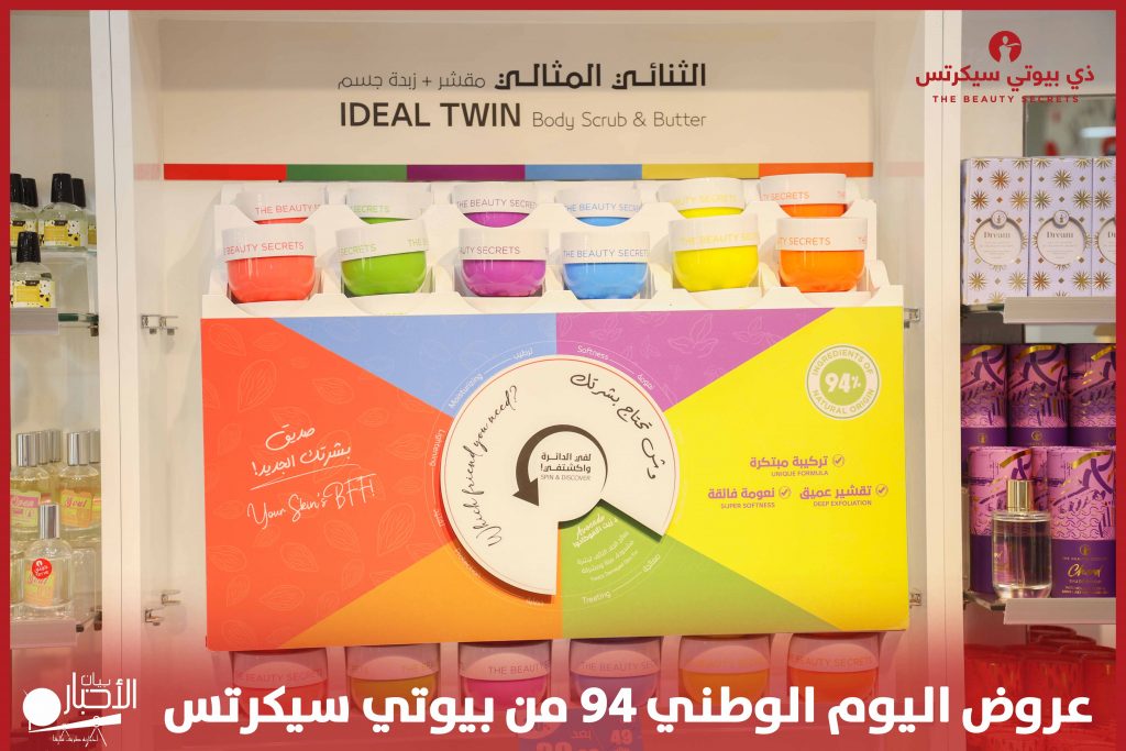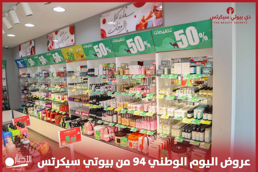 أعلن معرض ذي بيوتي سيكرتس في محافظة طريف عن عروض كبرى بتخفيضات تصل إلى 50% بمناسبة اليوم الوطني 94 الذي يوافق 23 سبتمبر من كل عام، تحت شعار “نحلم ونحقق”.