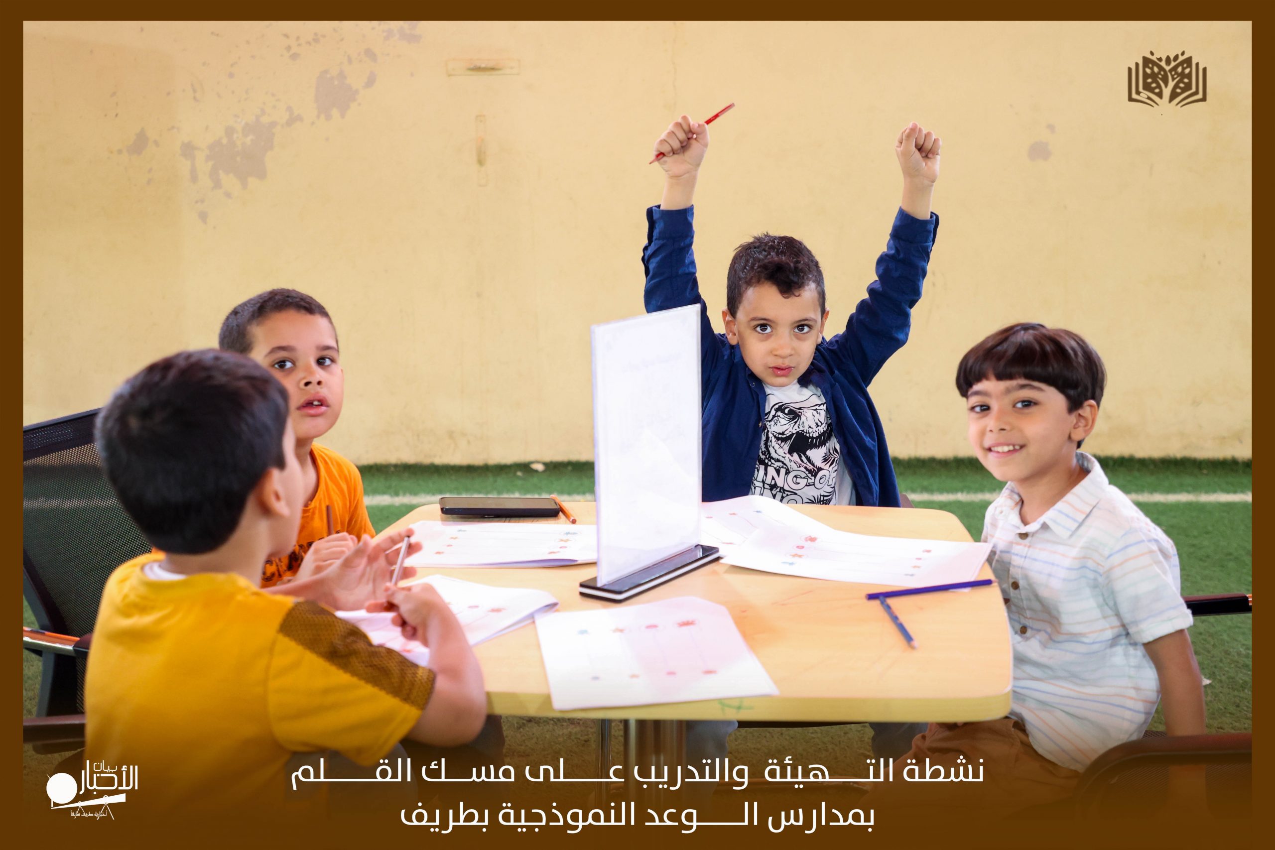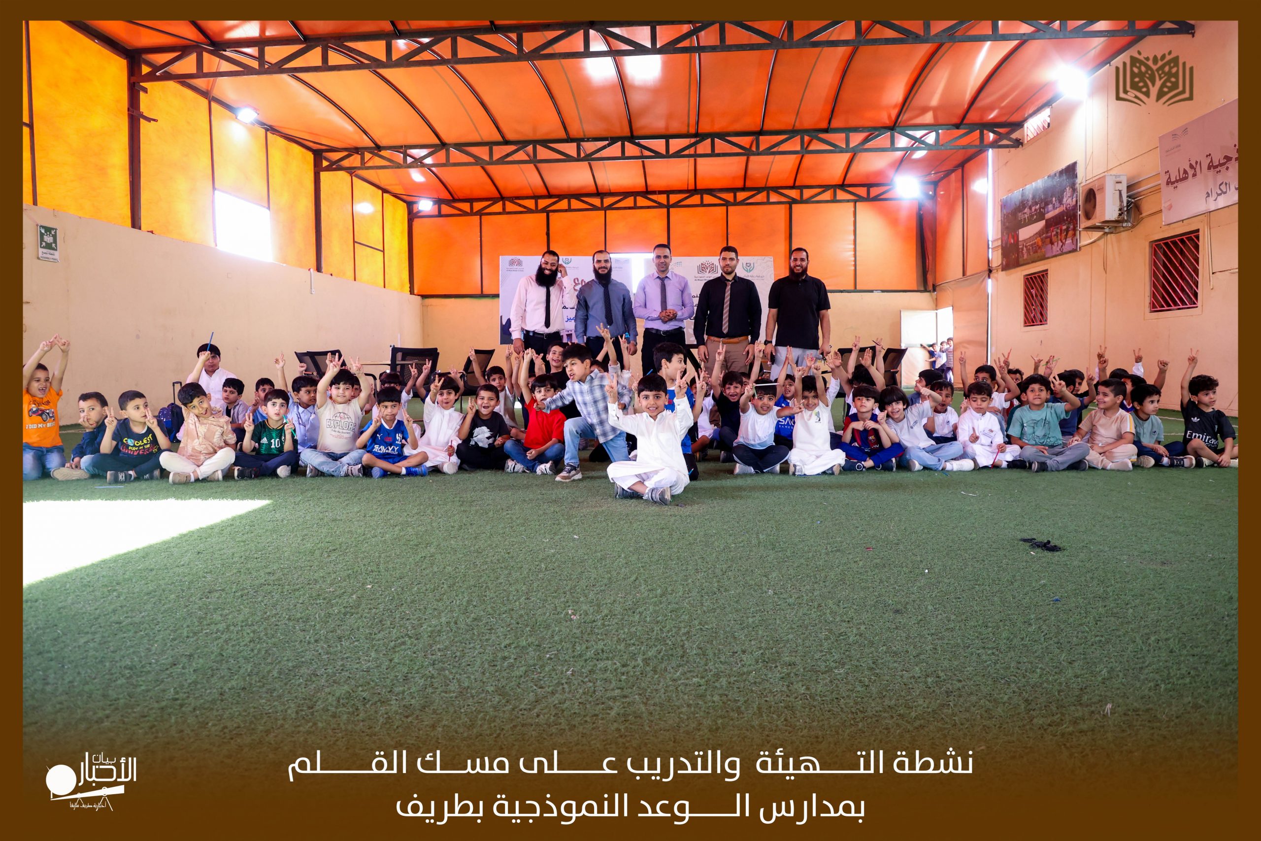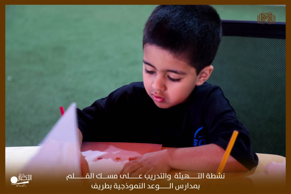 أقامت مدارس الوعد النموذجية الأهلية التابعة لجمعية رعاية الأيتام بمحافظة طريف نشاطًا لطلاب الصف الأول الابتدائي تحت عنوان ( أنشطة التهيئة والتدريب على مسك القلم ).
