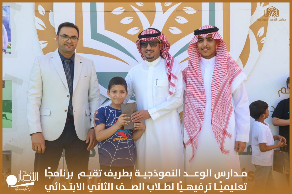 أقامت مدارس الوعد النموذجية الأهلية التابعة لجمعية رعاية الأيتام بمحافظة طريف برنامجًا تعليميًا ترفيهيًا لطلاب الصف الثاني الابتدائي، وذلك بهدف الوقوف على مدى إتقان الطلاب للمهارات وكذلك إثارة الدافعية والتنافس بين الطلاب و إثراء روح التعاون والمحبة بين الطلاب.