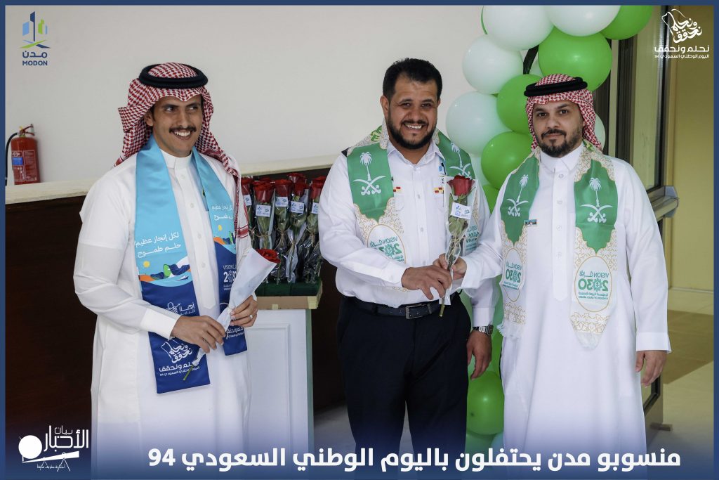 احتفل فرع الهيئة السعودية للمدن الصناعية ومناطق التقنية “مدن” بمحافظة طريف، ، اليوم الأربعاء 25- 9- 2024 م، بذكرى اليوم الوطني السعودي الـ 94 تحت شعار “نحلم ونحقق” وذلك بمقر الفرع، وبحضور مدير المدن الصناعية بالشمال المهندس خالد محمد الشهراني وجميع منسوبي الفرع.
