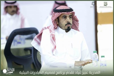 قدمت المدربة عبير عياد برنامج تصميم المبادرات البيئية في مكتب الضمان الاجتماعي بهيئة تطوير محمية الملك سلمان بن عبدالعزيز الملكية بالتعاون مع رابطة طريف الخضراء .
