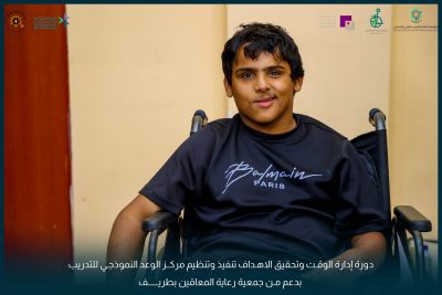 وهذه الدورة ضمن سلسلة دورات تدريبية سوف تنفذ لجميع الفئات بدعم حصري من جمعية رعاية المعاقين بطريف.