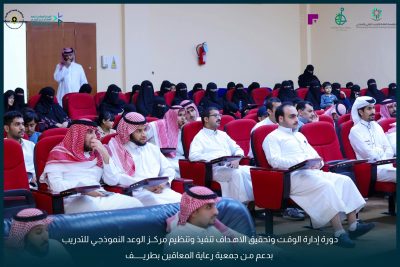 انطلقت اليوم الثلاثاء الموافق ٢٠٢٤/١٠/١٥ دورة إدارة الوقت وتحقيق الاهداف تنفيذ وتنظيم مركز الوعد النموذجي للتدريب بدعم حصري من جمعية رعاية المعاقين بطريف.