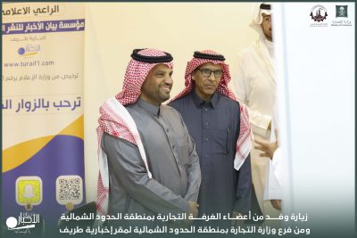 زار وفد من أعضاء الغرفة التجارية بمنطقة الحدود الشمالية مقر مؤسسة بيان الأخبار ( إخبارية طريف سابقا)، وكان في استقبالهم إدارة الموقع ممثلة بالأستاذ فهد الدغماني .