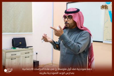 أقامت مدارس الوعد النموذجية الأهلية بمحافظة طريف حصة نموذجية للصف الأول المتوسط( ج) في مادة الدراسات الاجتماعية درس شبه الجزيرة العربية قبل ظهور الإسلام .