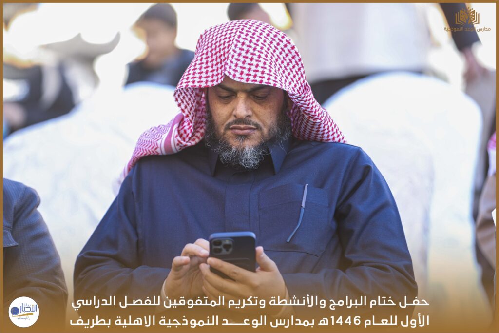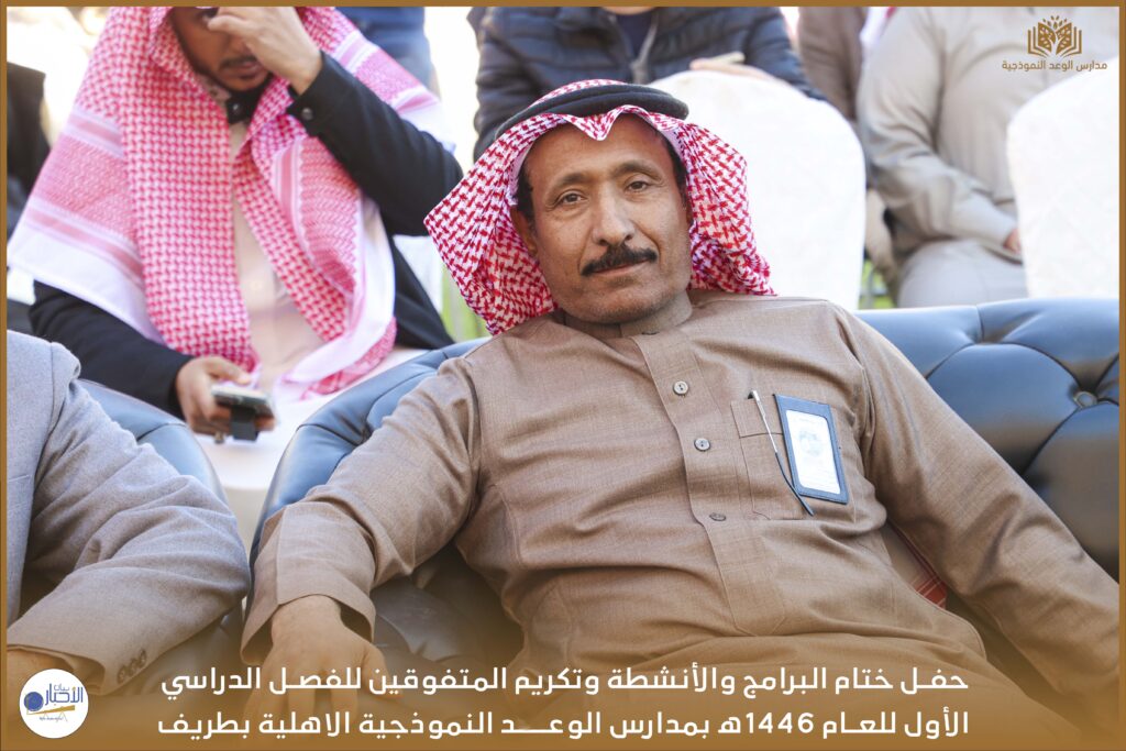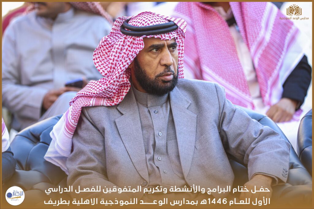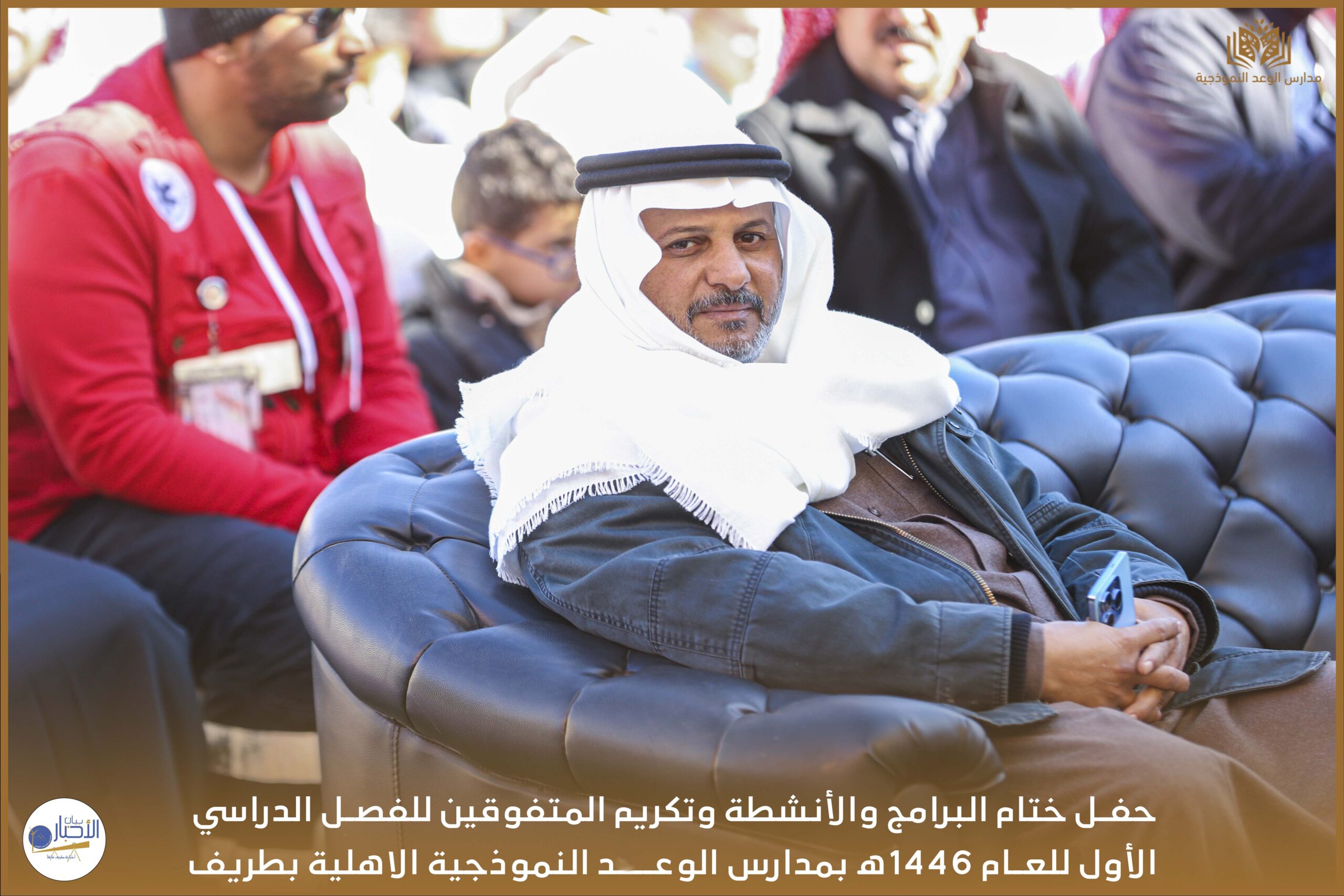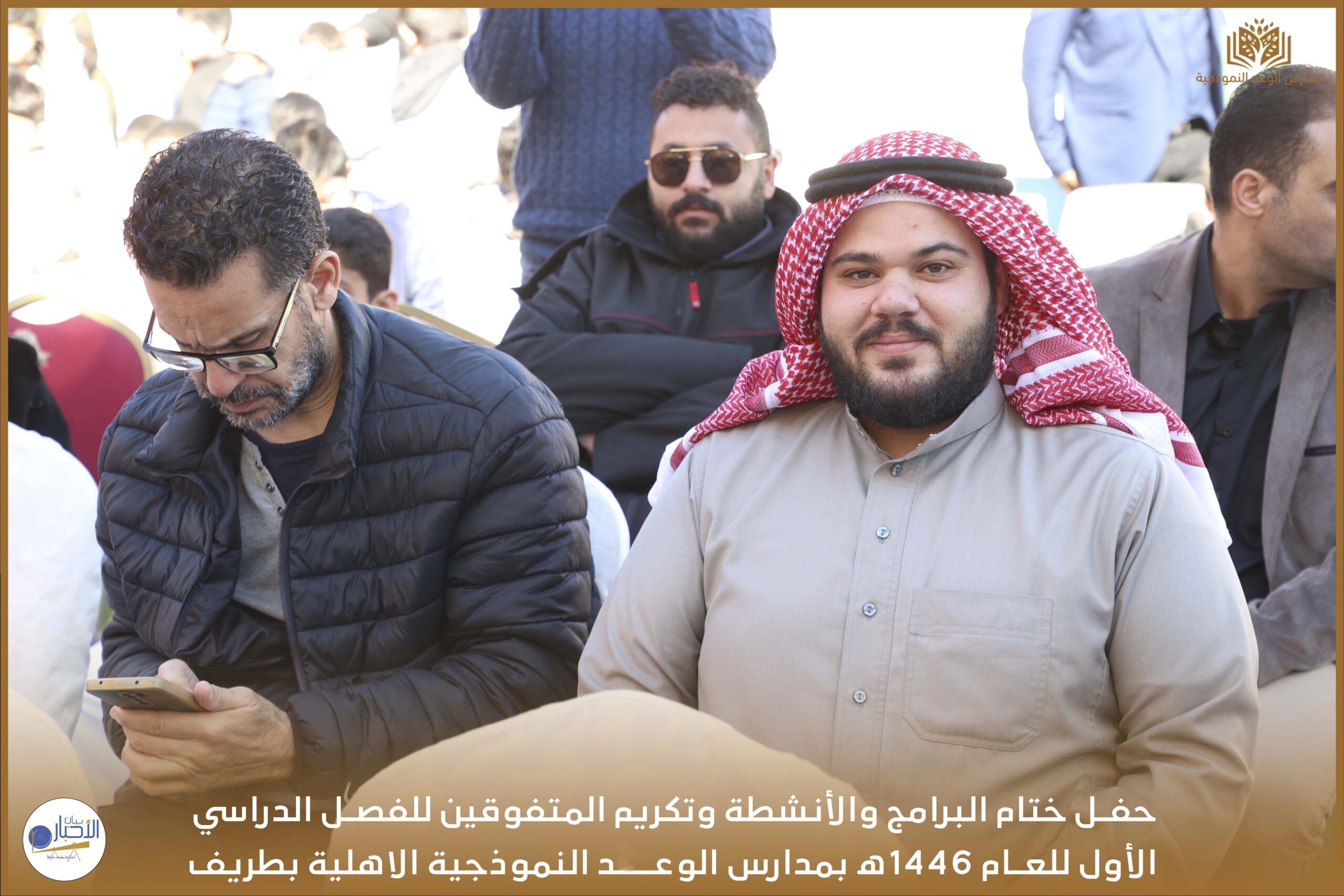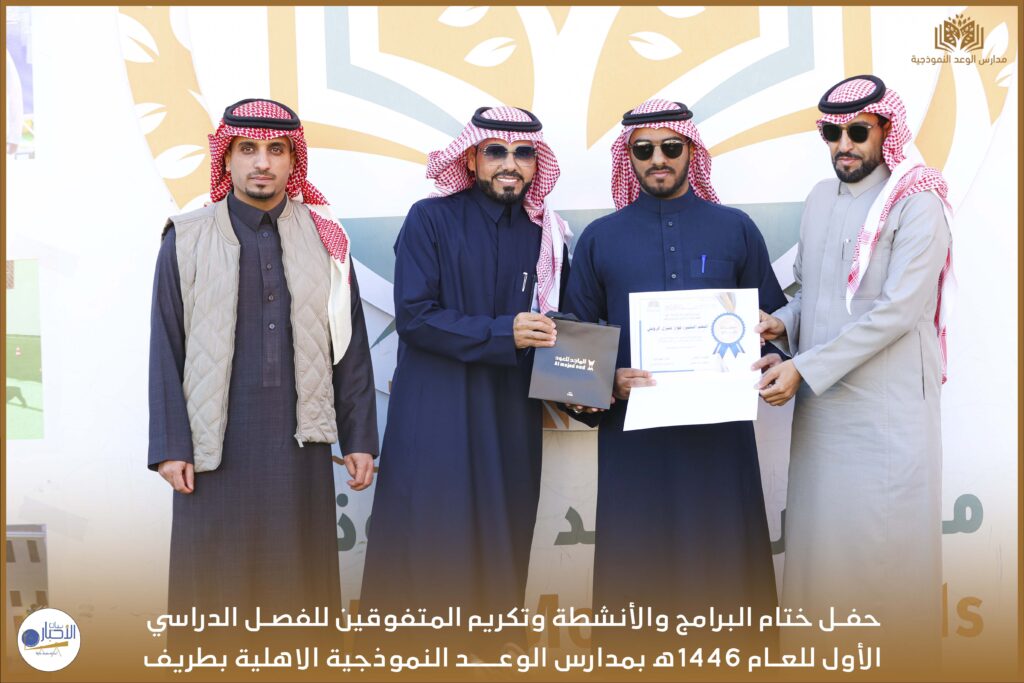 أقامت مدارس الوعد النموذجية الأهلية التابعة لجمعية رعاية الأيتام بمحافظة طريف ( القسم الابتدائي ) حفلًا ختاميًا للبرامج والأنشطة والفعاليات المقامة طيلة الفصل الدراسي الأول وذلك بحضور نائب رئيس مجلس إدارة جمعية رعاية الأيتام الأستاذ محمد سالم الرويلي والأستاذ طلال لهيلم العنزي ممثلًا عن مكتب تعليم طريف والسادة أولياء أمور الطلاب.