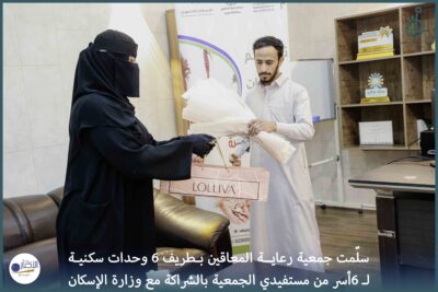 سلّمت جمعية رعاية المعاقين بـمحافظة طريف 6 وحدات سكنية لـ 6 أسر من مستفيدي الجمعية بالشراكة مع وزارة الإسكان عبر برنامج الإسكان التنموي “سكني”.