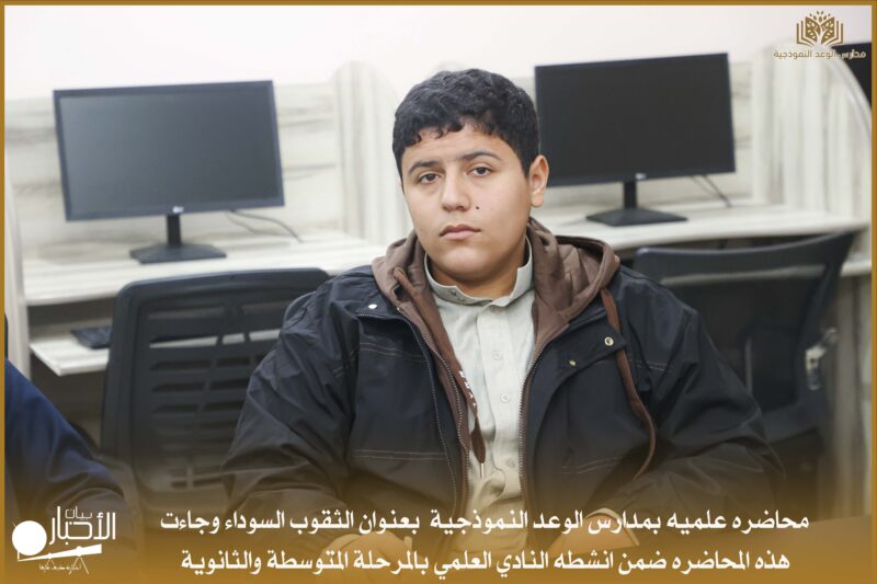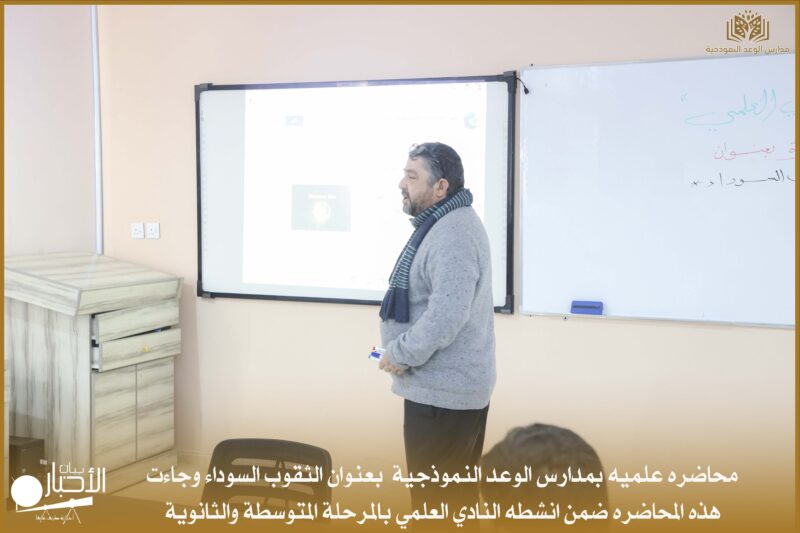 أقامت اليوم مدارس الوعد النموذجية محاضرة علمية بعنوان الثقوب السوداء وجاءت هذه المحاضرة ضمن أنشطة النادي العلمي بالمرحلة المتوسطة والثانوية.