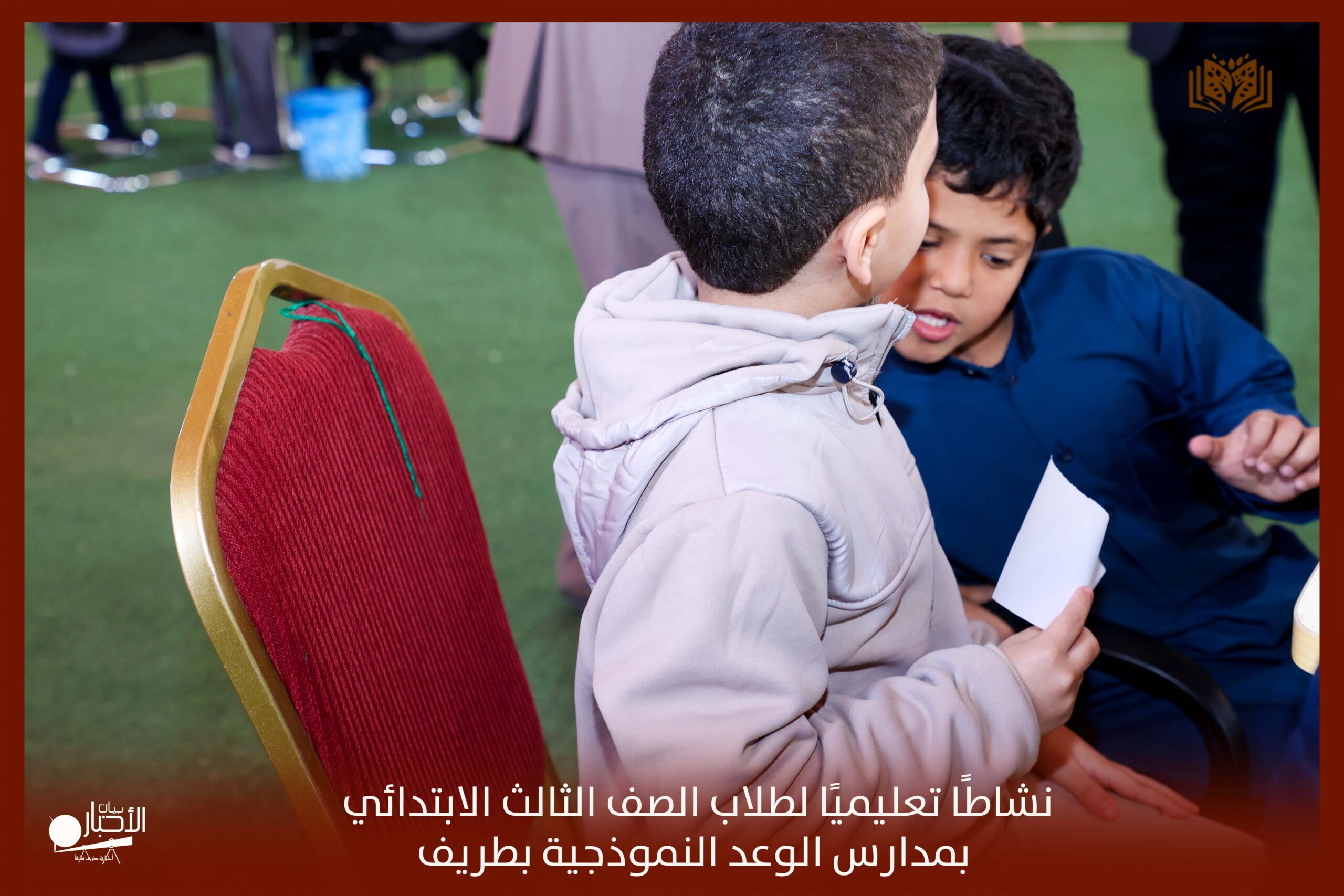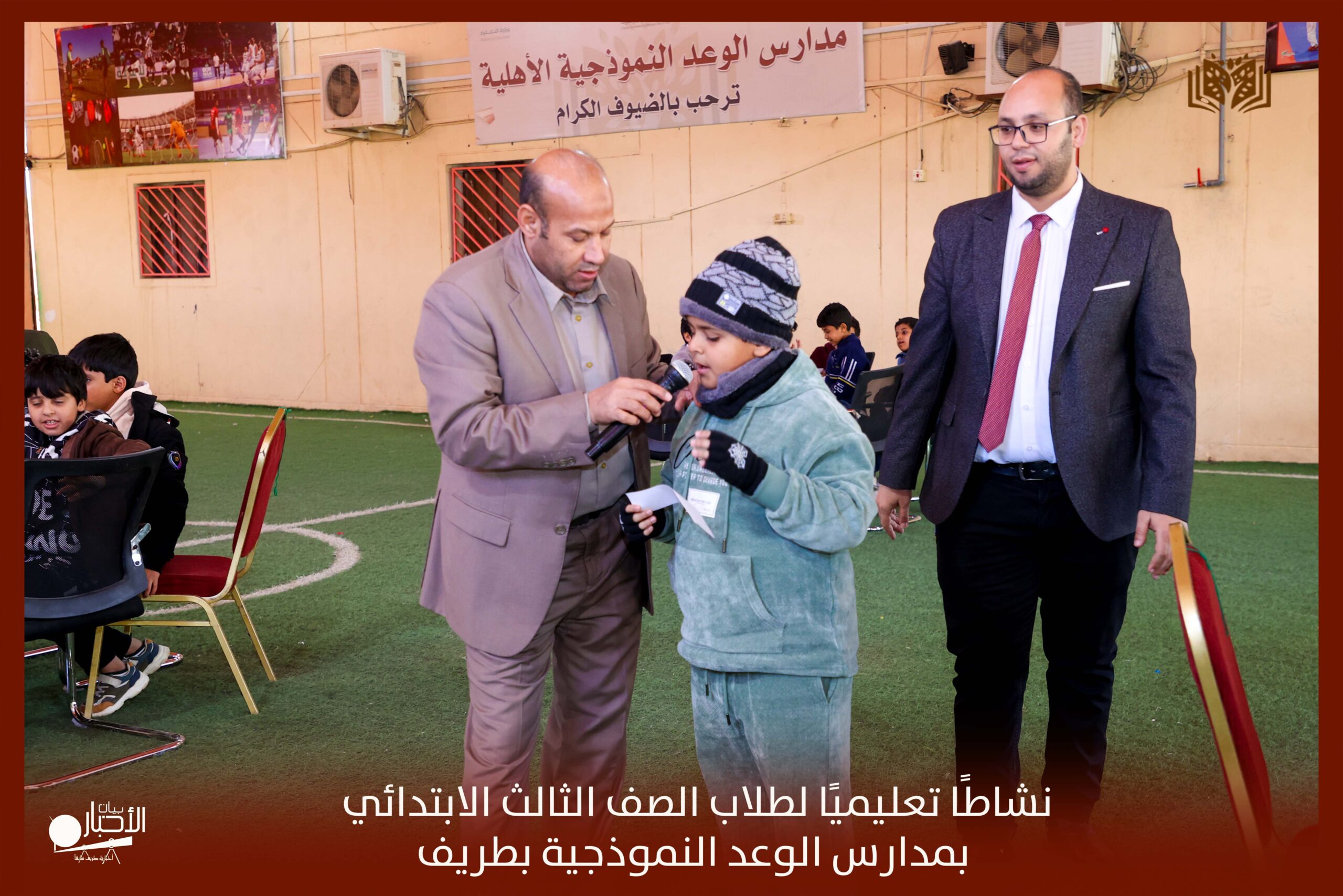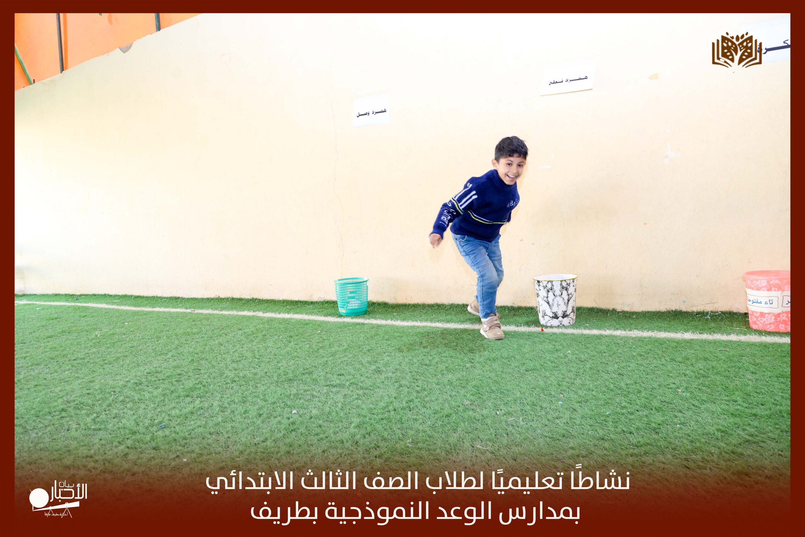 أقامت مدارس الوعد النموذجية الأهلية بمحافظة طريف نشاطًا تعليميًا لطلاب الصف الثالث الابتدائي تحت عنوان ( ألعب و أتعلم ) للمعلم المتميز الأستاذ حمدي جابر .