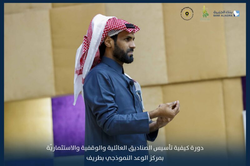 جاءت هذه الدورة ضمن سلسلة دورات تدريبية سوف تنفذ لجميع الفئات بدعم حصري من بنك الجزيرة بالتعاون مع جمعية نماء للخدمات الوقفية بمنطقة الحدود الشمالية ( أوقافُنا).