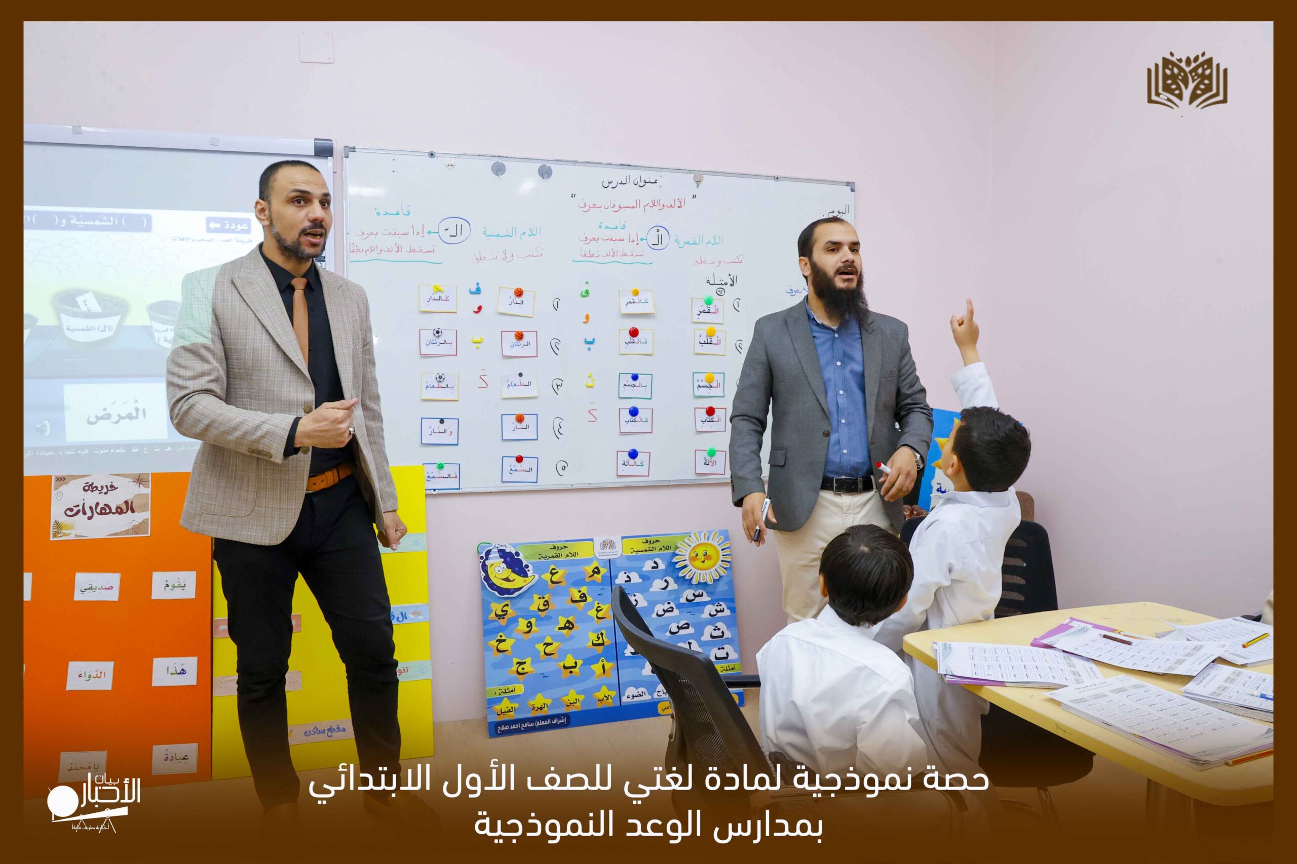 أقامت مدارس الوعد النموذجية الأهلية بمحافظة طريف حصة نموذجية لمادة لغتي للصف الأول الابتدائي تحت عنوان ( تنوع أساليب التدريس وتبادل الخبرات ) للزميلين المتميزين أ / عصام النجار و أ / سامح أحمد، وشرح مهارة ( اللام القمرية واللام الشمسية المسبوقتان بحرف).