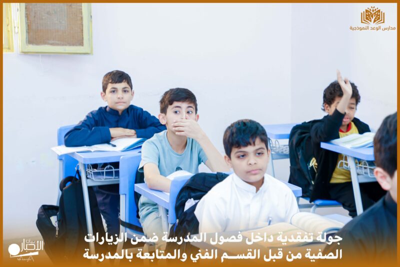 أخبار طريف > بالفيديو والصور .. مدارس الوعد النموذجية ( المرحلة الابتدائية ) تنفذ جولة تفقدية داخل فصول المدرسة
