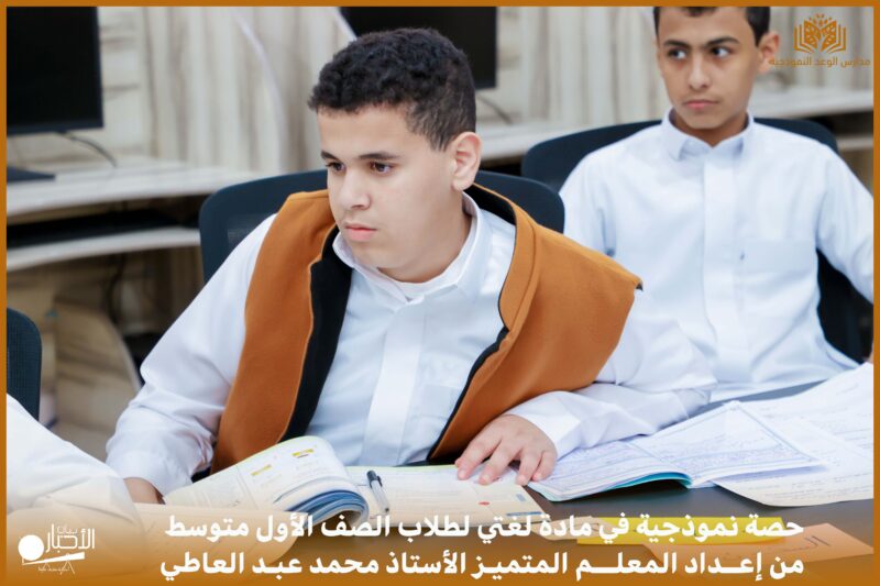 أقامت مدارس الوعد النموذجية الأهلية حصة نموذجية في مادة لغتي لطلاب الصف الأول متوسط من إعداد المعلم المتميز الأستاذ محمد عبد العاطي.