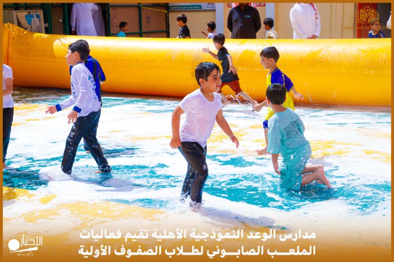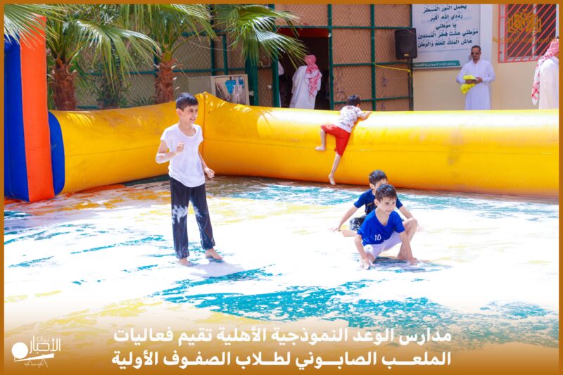 أقامت مدارس الوعد النموذجية الأهلية ( المرحلة الابتدائية ) بمحافظة طريف فعاليات الملعب الصابوني لطلاب الصفوف الأولية وذلك بهدف الترفيه والترويح عن الطلاب وكسر الروتين اليومي للدراسة.
