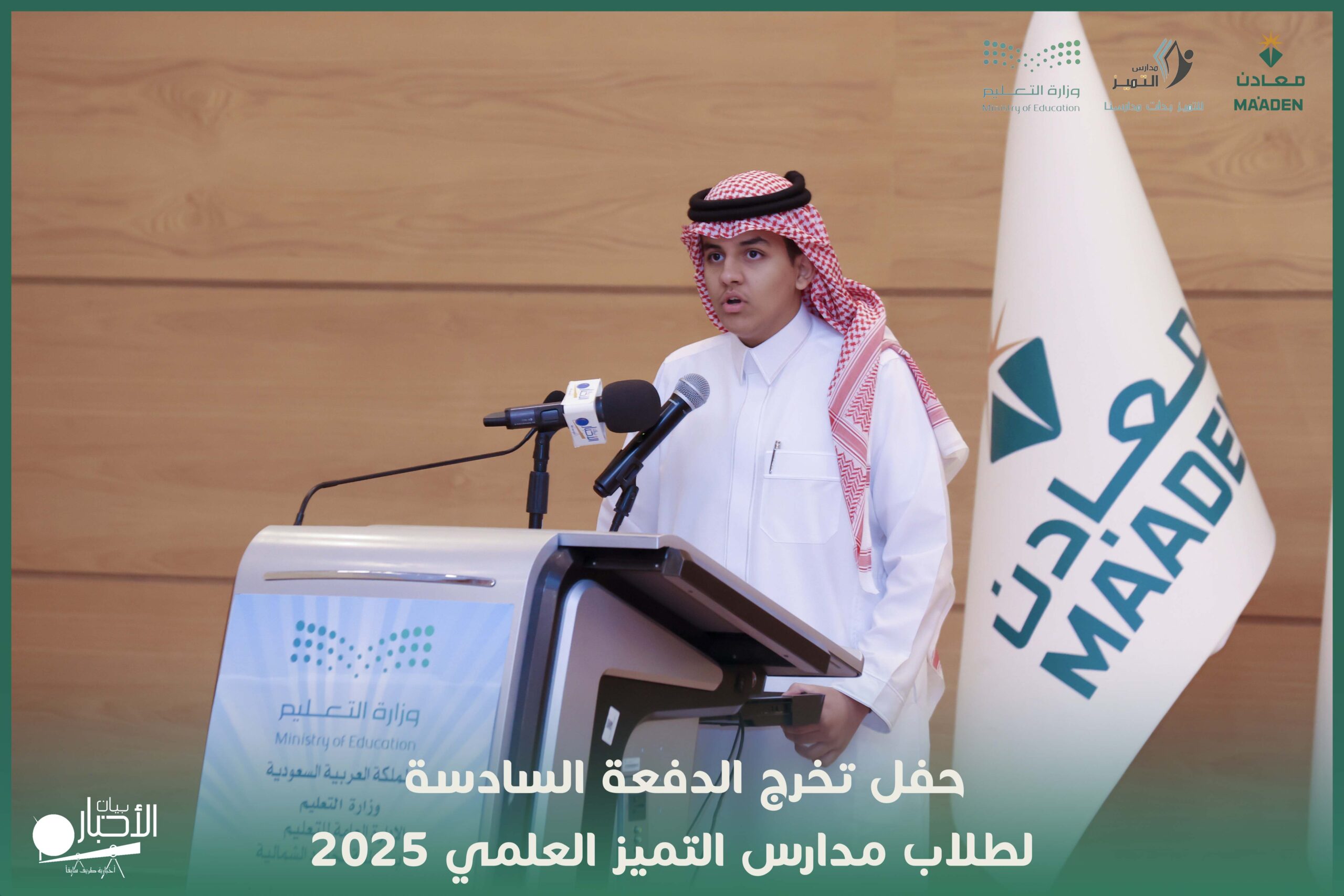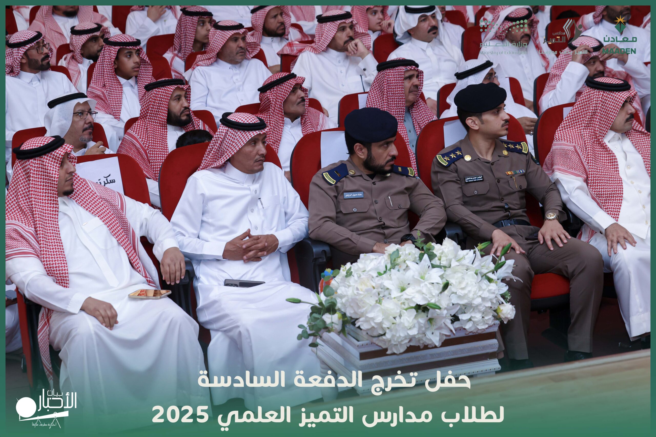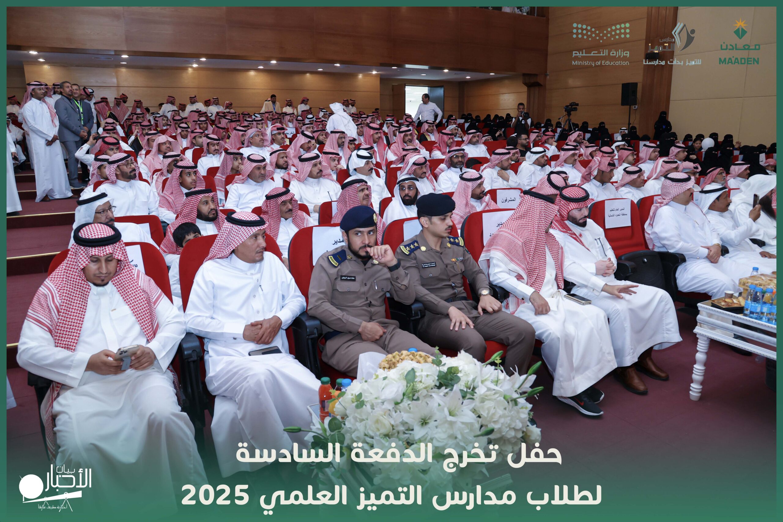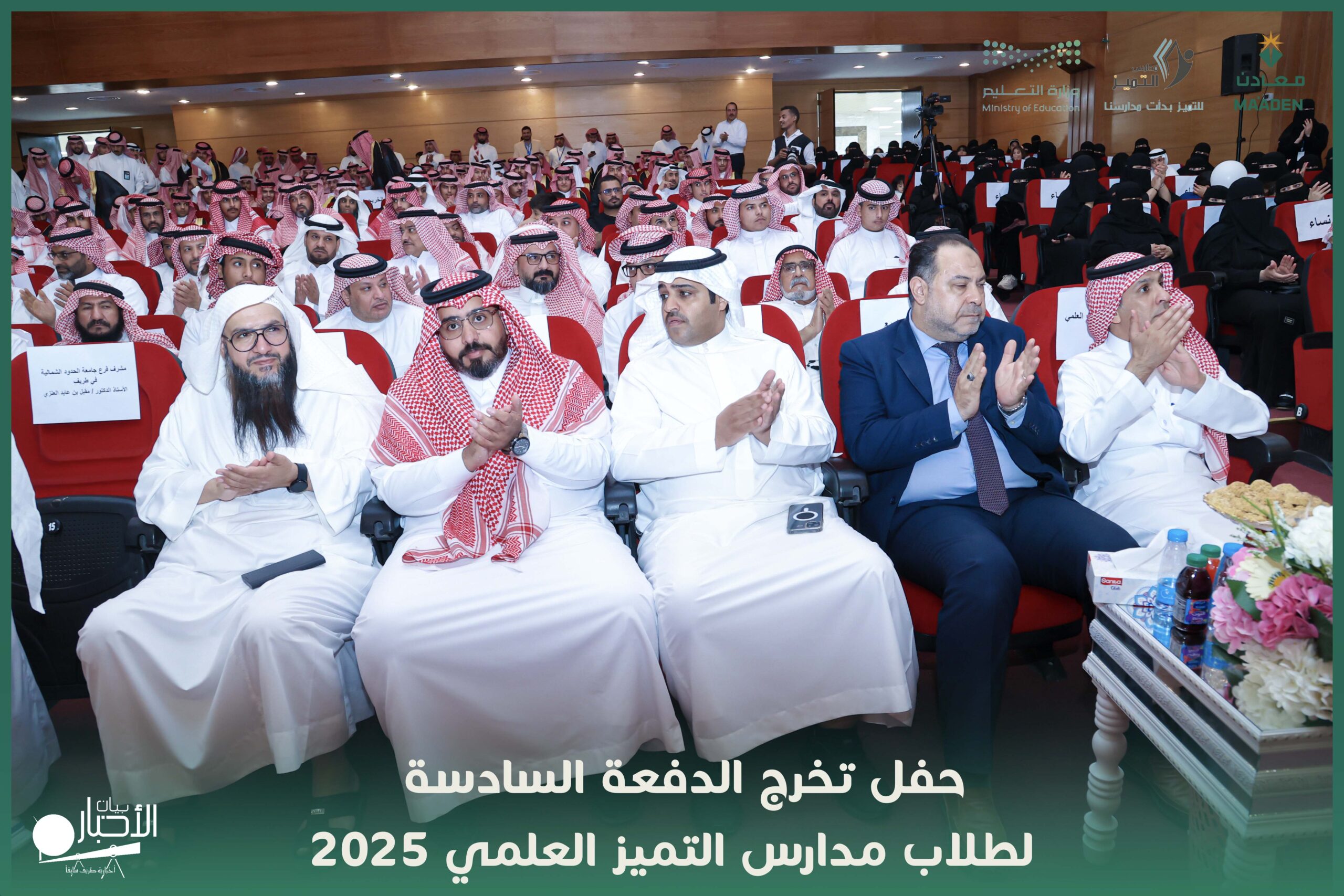 رعى مدير تعليم منطقة الحدود الشمالية، الأستاذ سعيد بن مساعد بن سعيد الزهراني، حفل تخرج طلاب الدفعة السادسة لعام 2025 بمدارس التميز العلمي بمحافظة طريف، وذلك بحضور مدير مكتب التعليم بطريف، الأستاذ ماجد بن حمود الرويلي، وممثل الشريك الاستراتيجي شركة “معادن”، وعدد من مدراء الدوائر الحكومية، والشخصيات العامة، وأولياء أمور الطلاب.