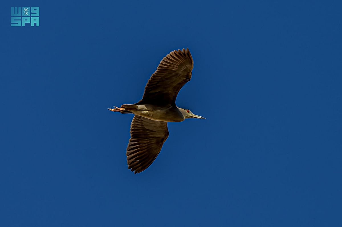 ومن بين الأنواع التي رصدت خلال الموسم الحالي، برز طائر بلشون الليل أسود التاج (Nycticorax nycticorax)، وهو من فصيلة البلشونيات، يتميز بجسم قوي وريش رمادي وتاج أسود يزين رأسه وأعلى ظهره، ويُعد من الطيور الليلية التي تنشط في الصيد مع حلول الغروب، معتمدة على الأسماك والبرمائيات غذاءً رئيسيًا لها.