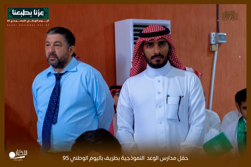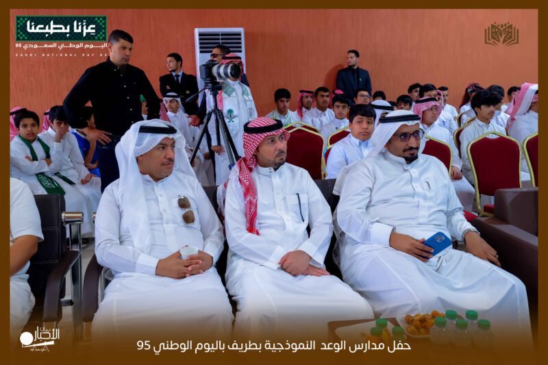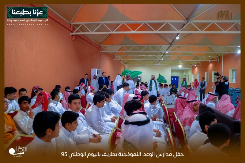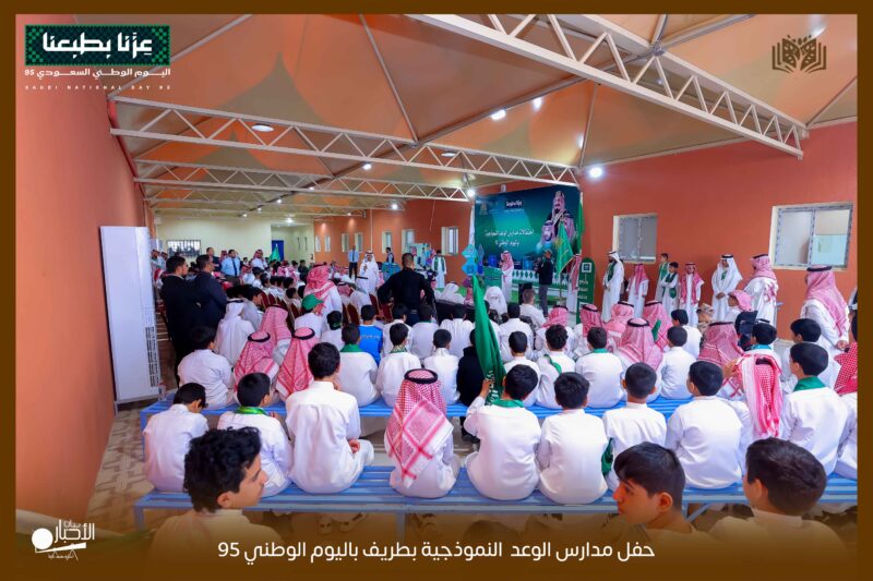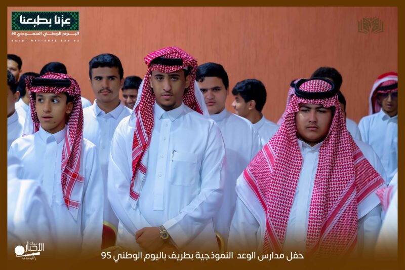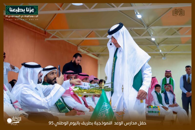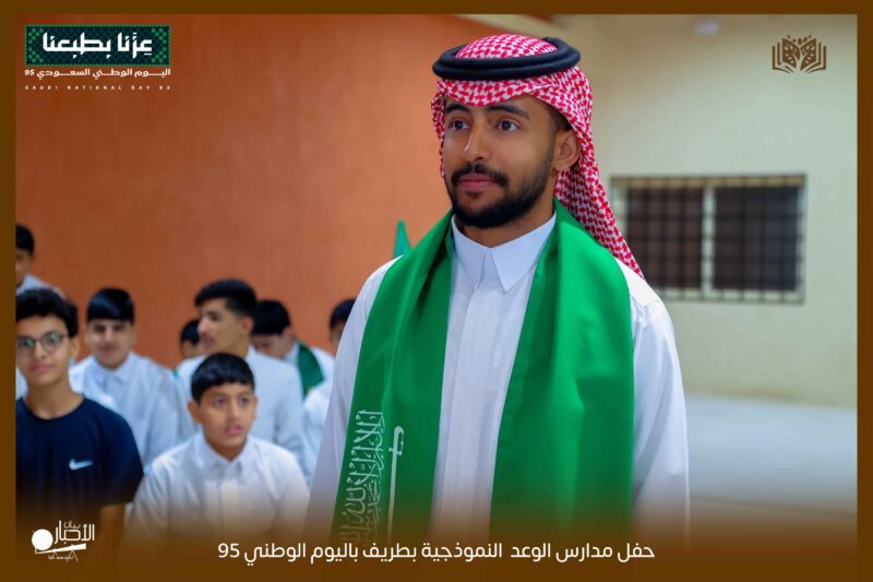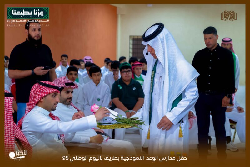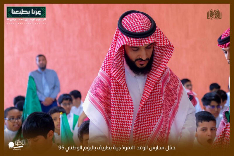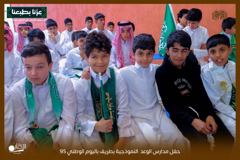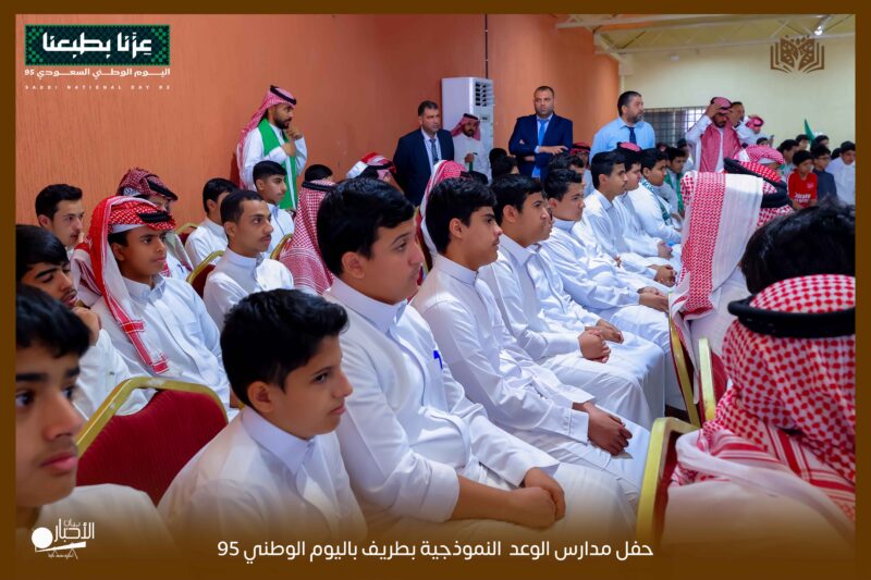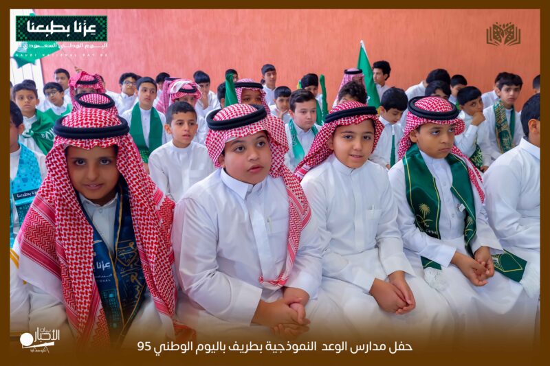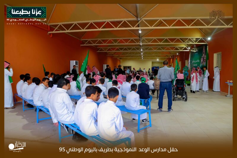 أقامت مدارس الوعد النموذجية للمرحلة الثانوية و المتوسطة حفل اليوم الوطني ال ٩٥ في يوم الاربعاء الموافق ١٤٤٧/٤/٩ برعاية كريمة من رئيس اللجنة التنفيذية الاستاذ عيد قيضي الرويلي ونائب رئيس جمعية رعاية الايتام الاستاذ محمد سالم الرويلي وبحضور الاستاذ طلال الهليم العنزي وأعضاء جمعية رعاية الايتام.