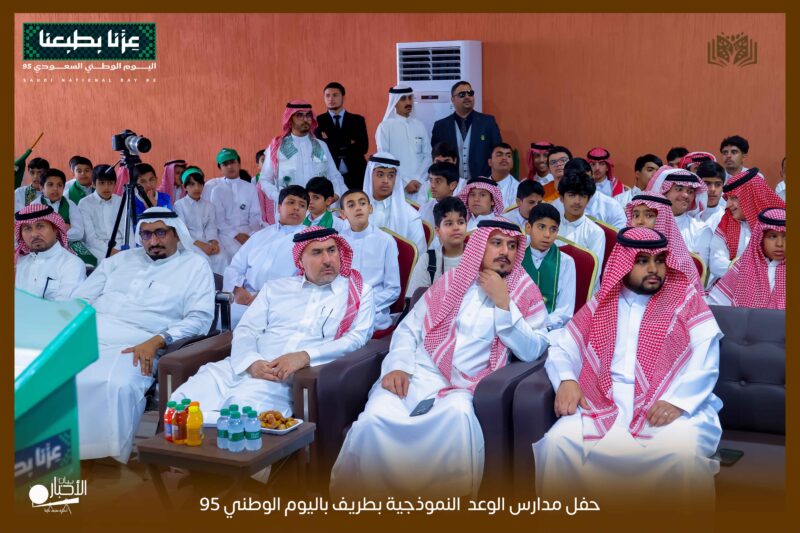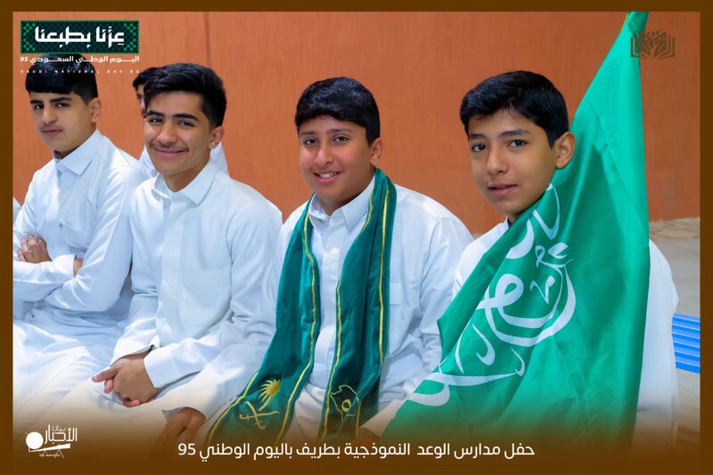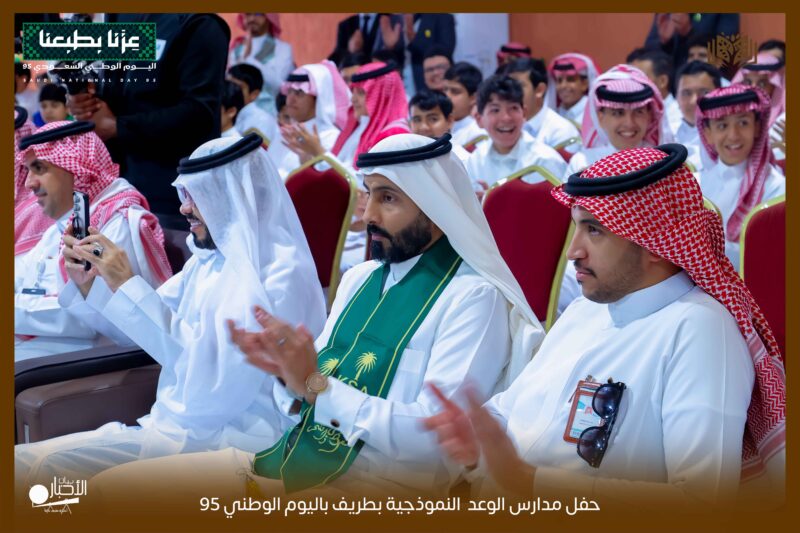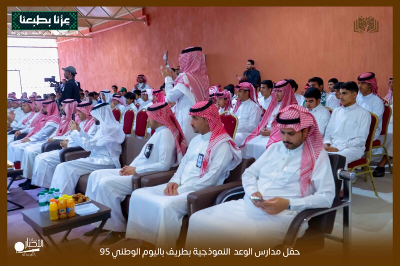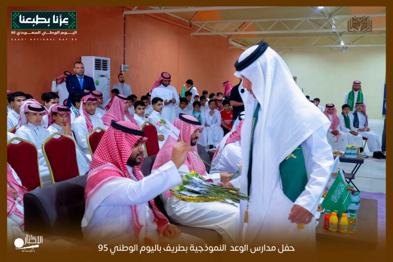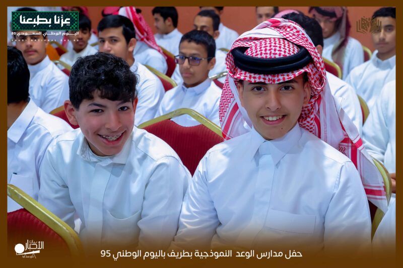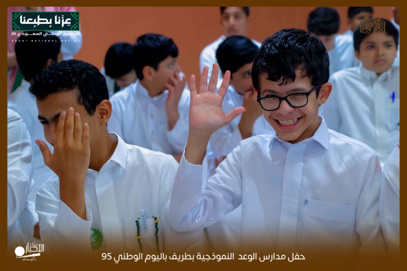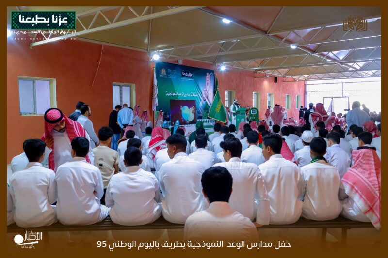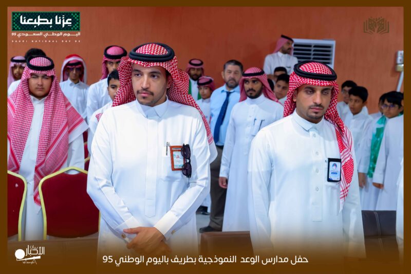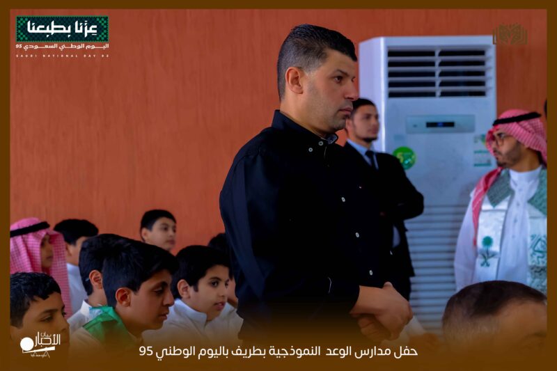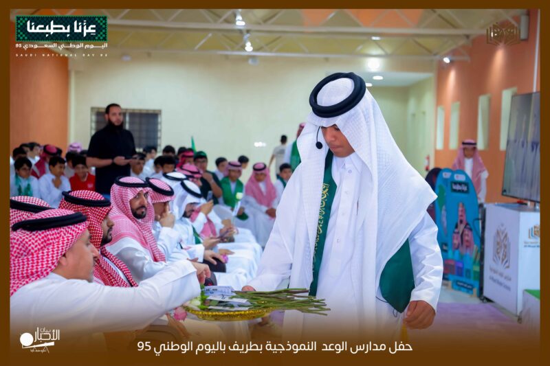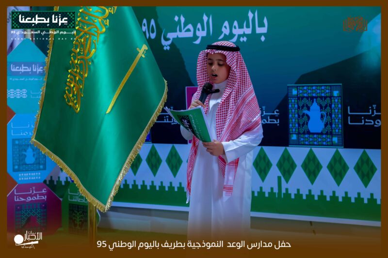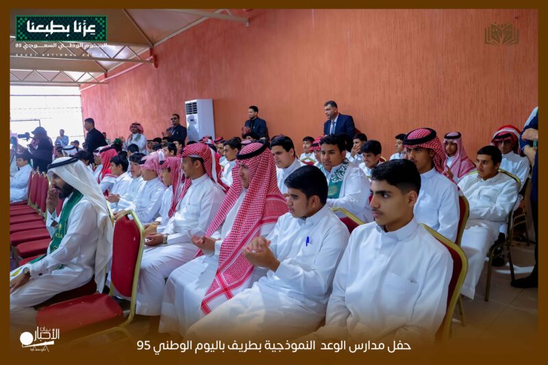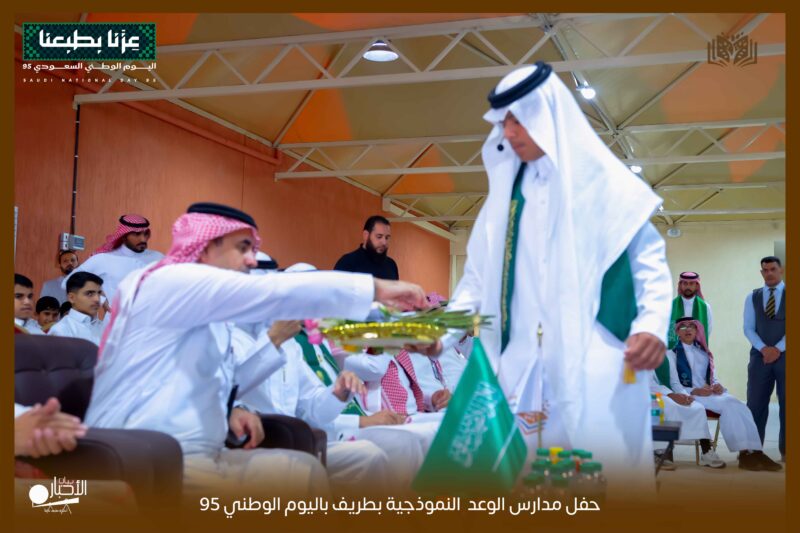 أقامت مدارس الوعد النموذجية للمرحلة الثانوية و المتوسطة حفل اليوم الوطني ال ٩٥ في يوم الاربعاء الموافق ١٤٤٧/٤/٩ برعاية كريمة من رئيس اللجنة التنفيذية الاستاذ عيد قيضي الرويلي ونائب رئيس جمعية رعاية الايتام الاستاذ محمد سالم الرويلي وبحضور الاستاذ طلال الهليم العنزي وأعضاء جمعية رعاية الايتام.