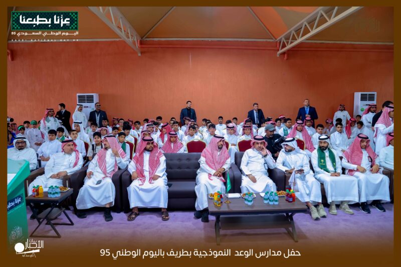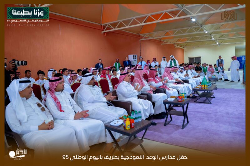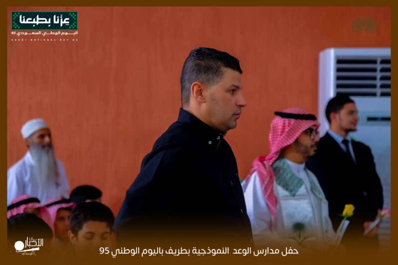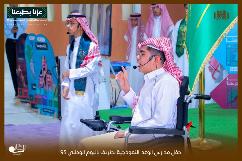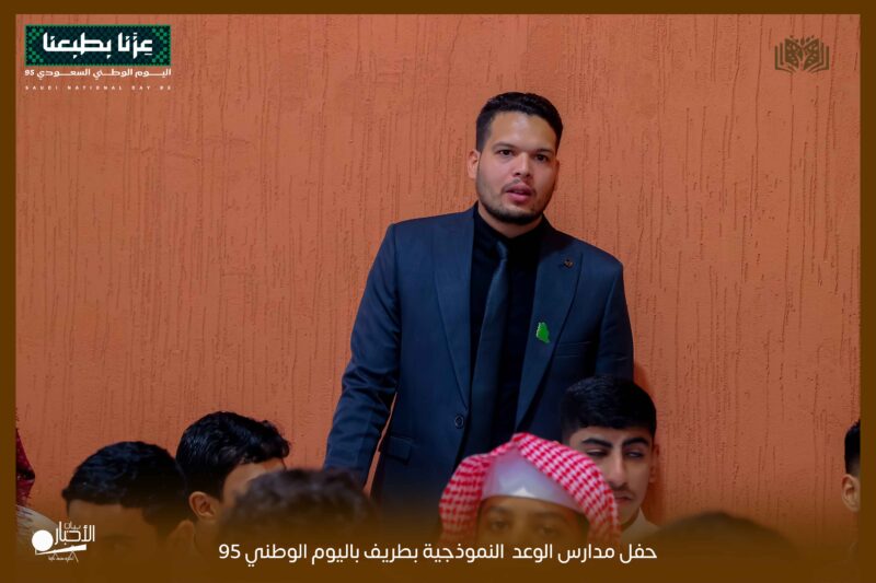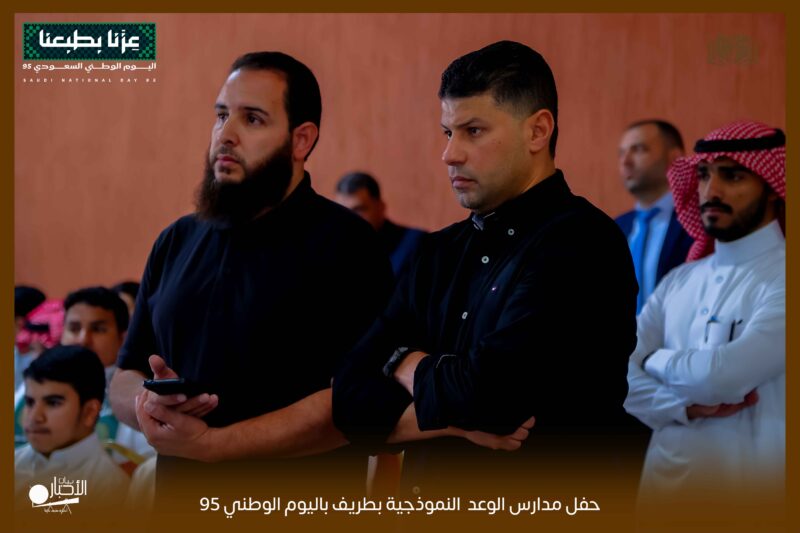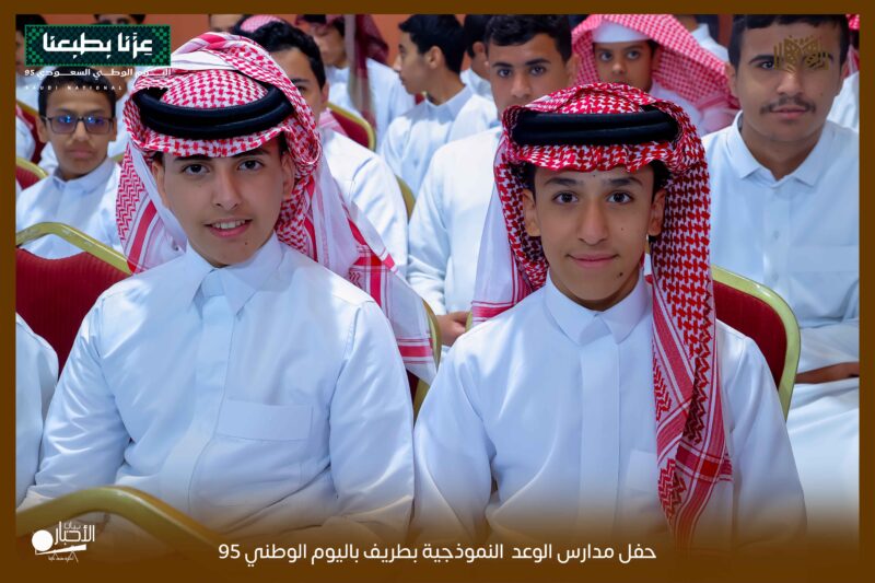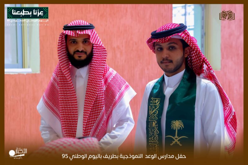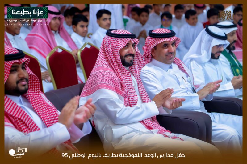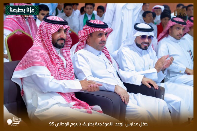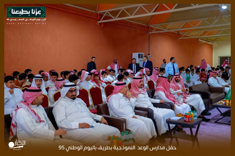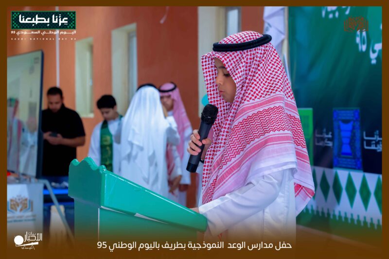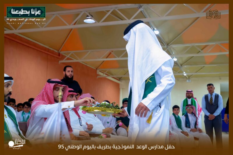 أقامت مدارس الوعد النموذجية للمرحلة الثانوية و المتوسطة حفل اليوم الوطني ال ٩٥ في يوم الاربعاء الموافق ١٤٤٧/٤/٩ برعاية كريمة من رئيس اللجنة التنفيذية الاستاذ عيد قيضي الرويلي ونائب رئيس جمعية رعاية الايتام الاستاذ محمد سالم الرويلي وبحضور الاستاذ طلال الهليم العنزي وأعضاء جمعية رعاية الايتام.