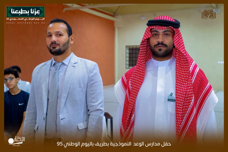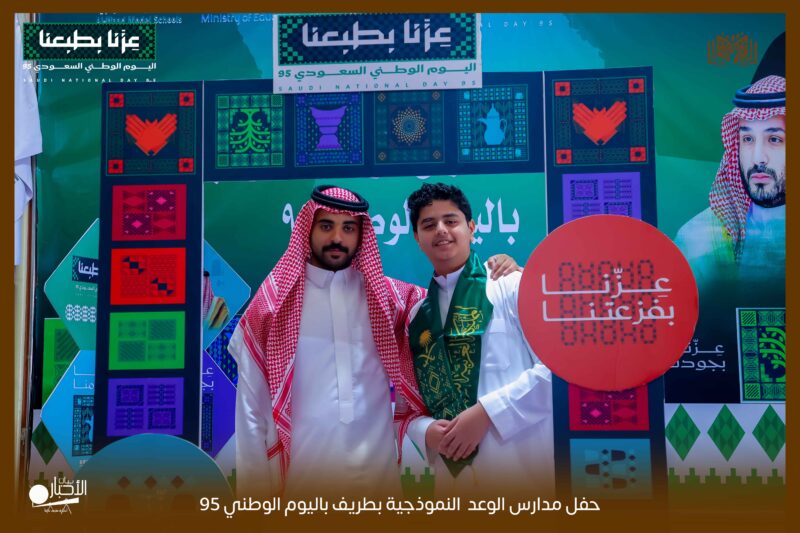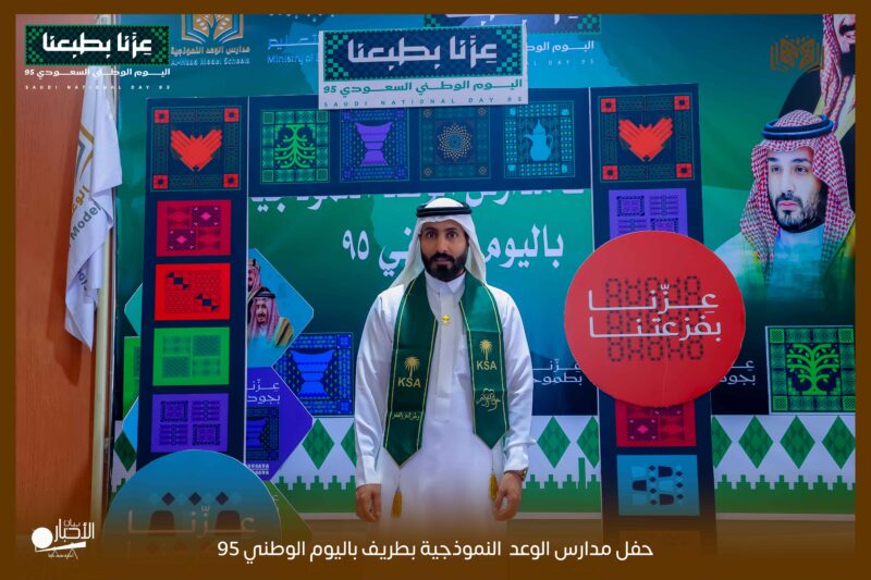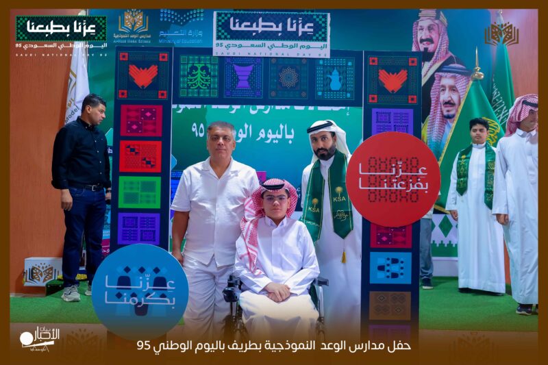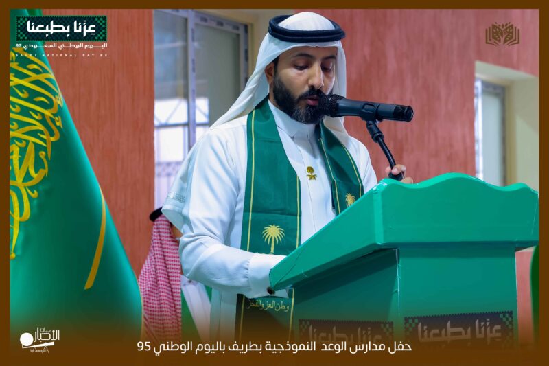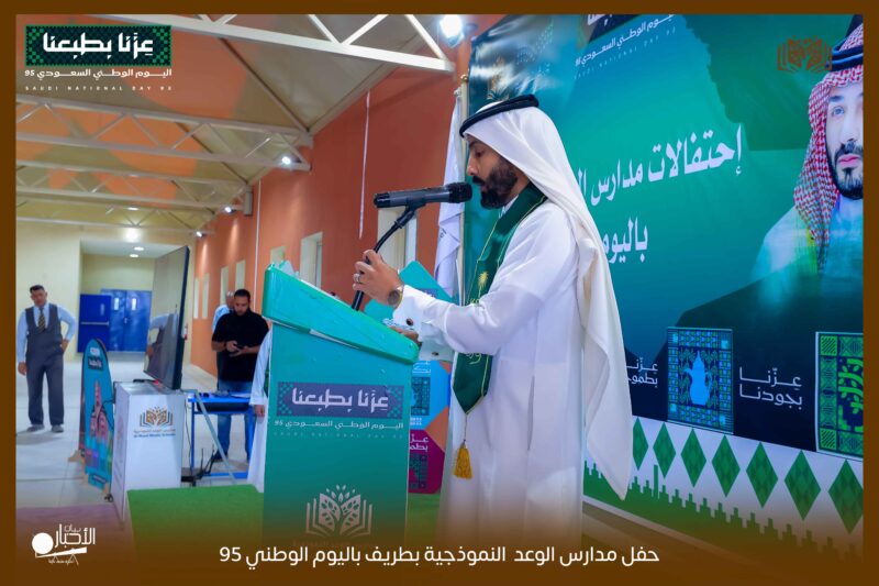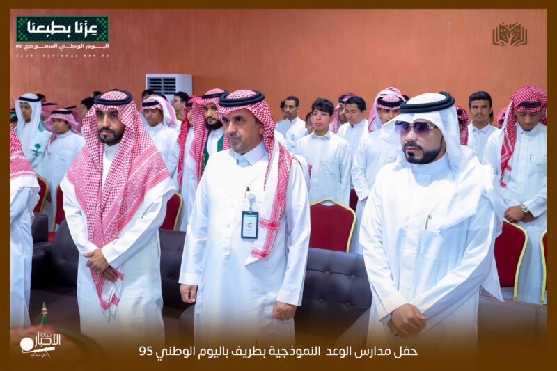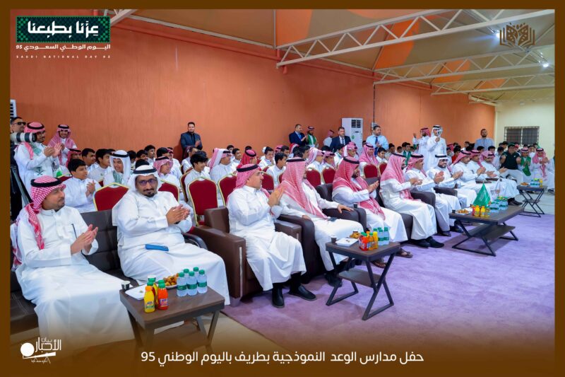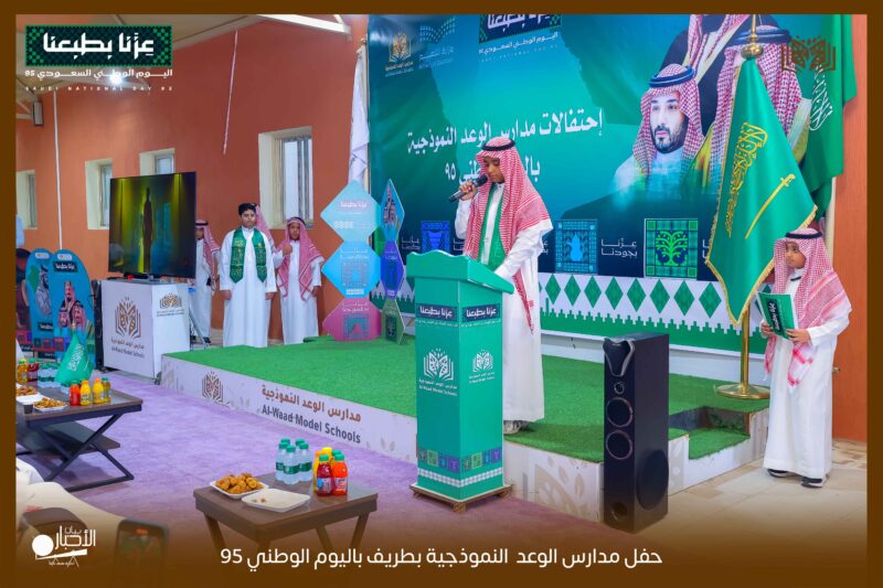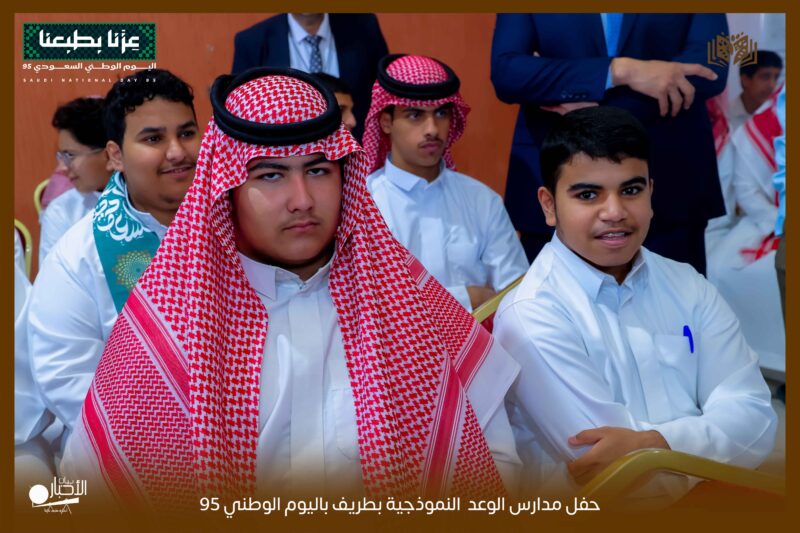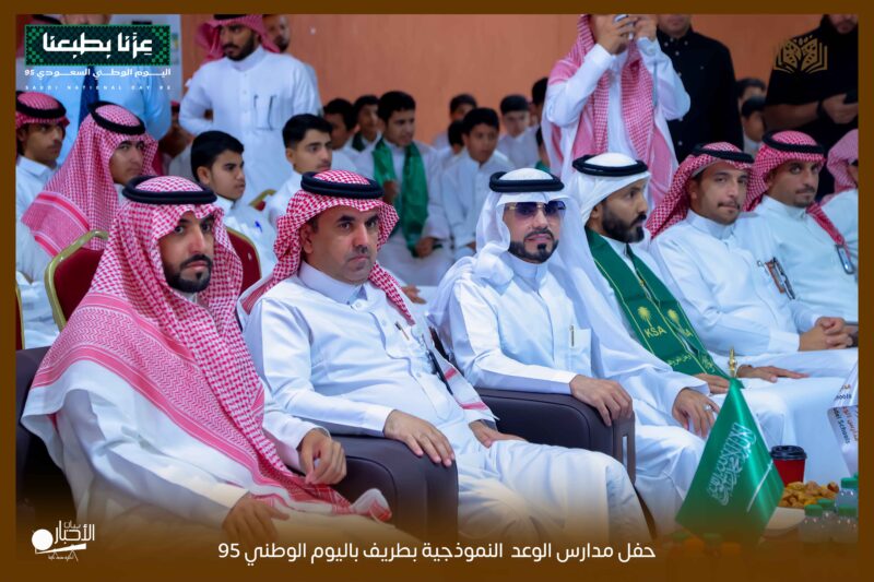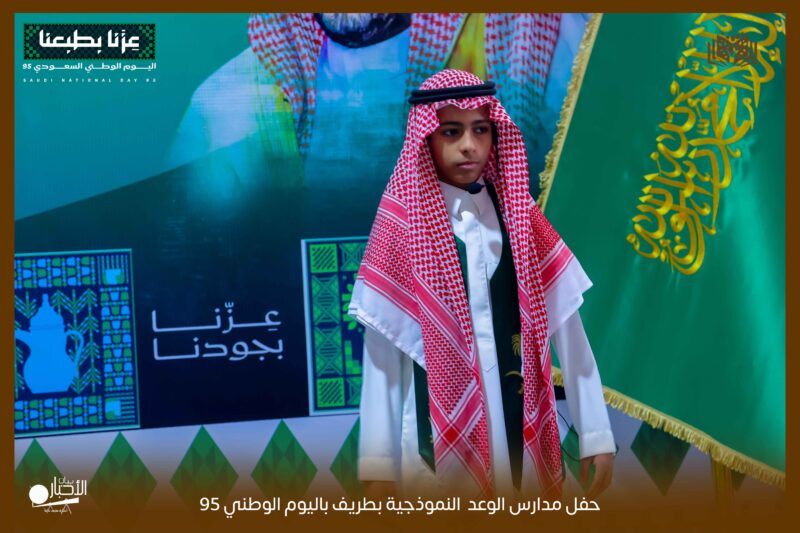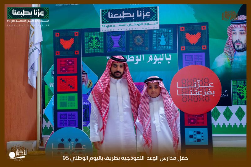 أقامت مدارس الوعد النموذجية للمرحلة الثانوية و المتوسطة حفل اليوم الوطني ال ٩٥ في يوم الاربعاء الموافق ١٤٤٧/٤/٩ برعاية كريمة من رئيس اللجنة التنفيذية الاستاذ عيد قيضي الرويلي ونائب رئيس جمعية رعاية الايتام الاستاذ محمد سالم الرويلي وبحضور الاستاذ طلال الهليم العنزي وأعضاء جمعية رعاية الايتام.