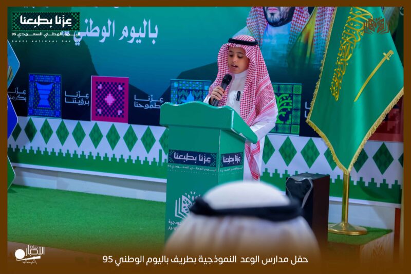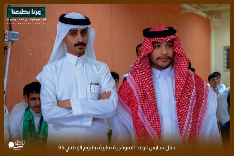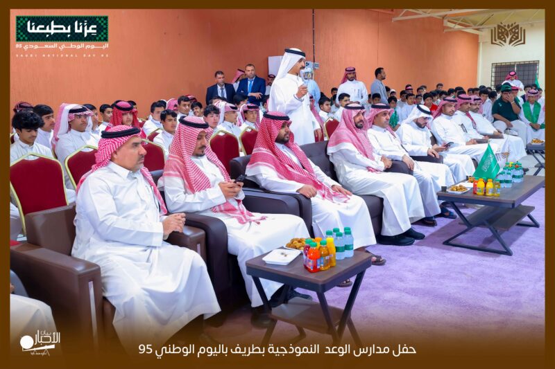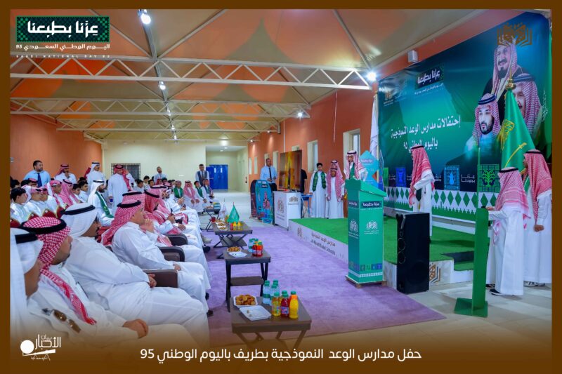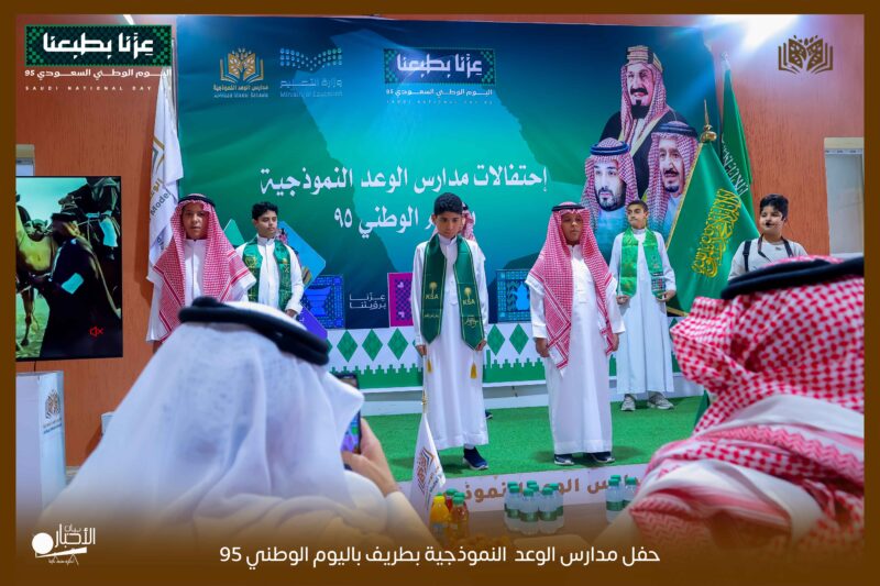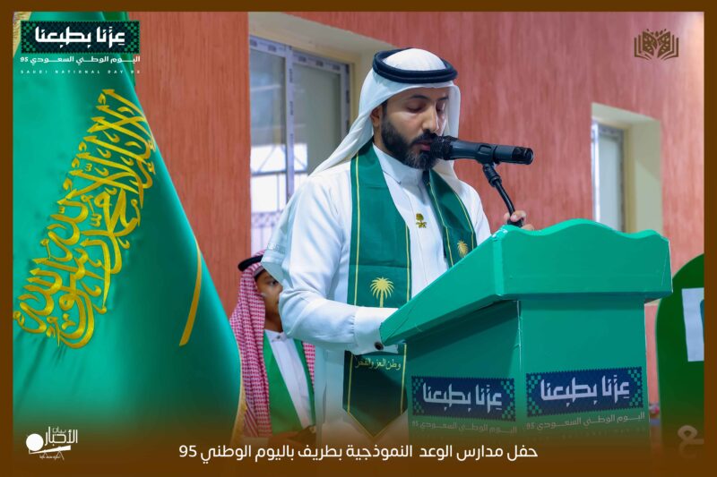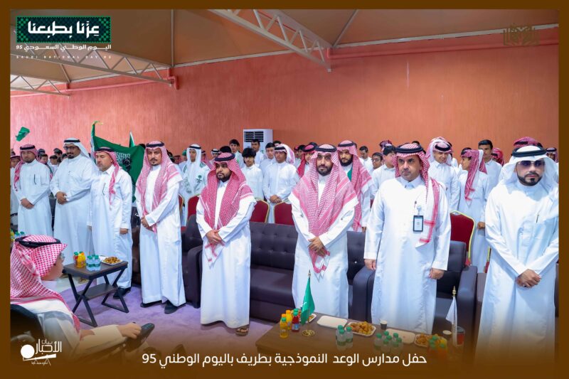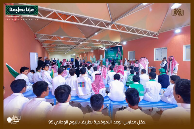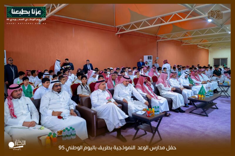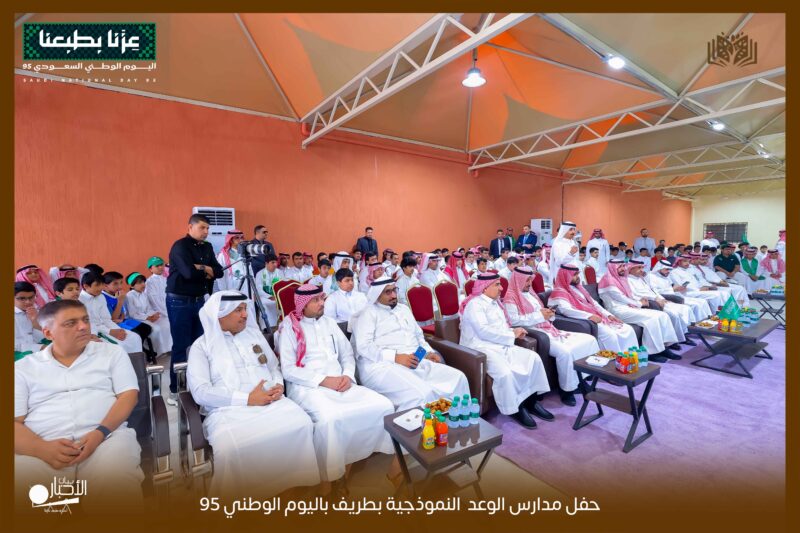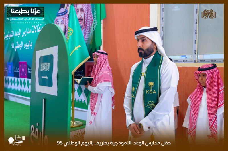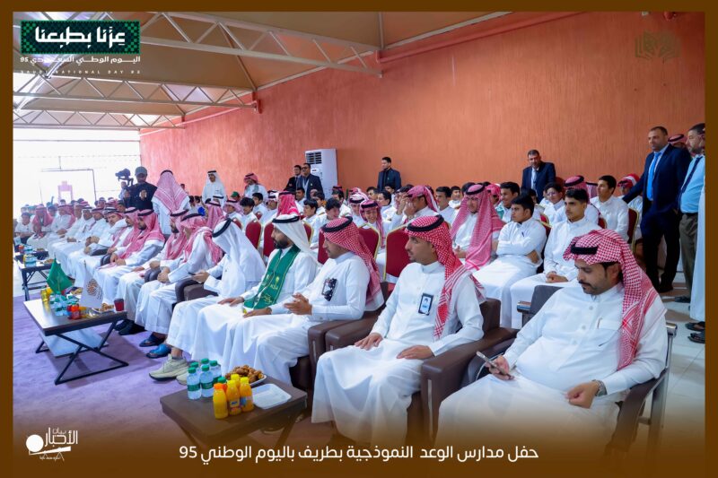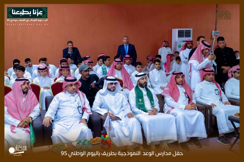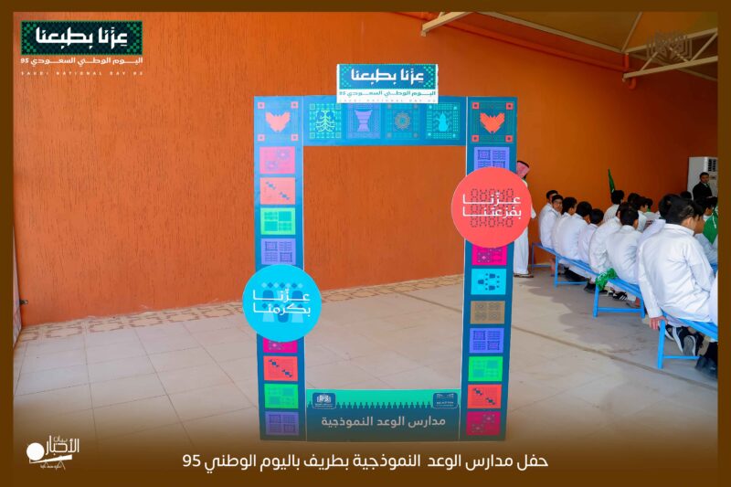 أقامت مدارس الوعد النموذجية للمرحلة الثانوية و المتوسطة حفل اليوم الوطني ال ٩٥ في يوم الاربعاء الموافق ١٤٤٧/٤/٩ برعاية كريمة من رئيس اللجنة التنفيذية الاستاذ عيد قيضي الرويلي ونائب رئيس جمعية رعاية الايتام الاستاذ محمد سالم الرويلي وبحضور الاستاذ طلال الهليم العنزي وأعضاء جمعية رعاية الايتام.