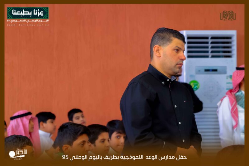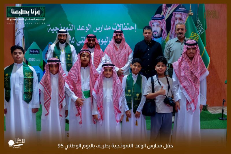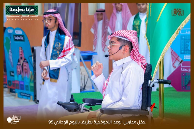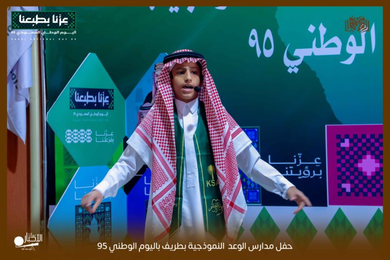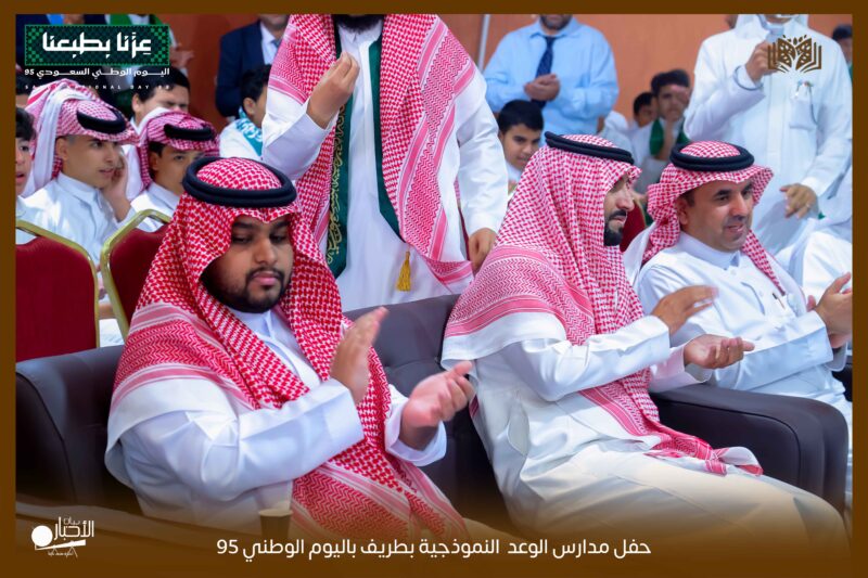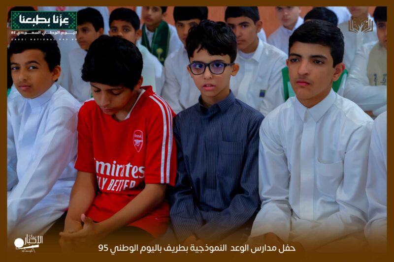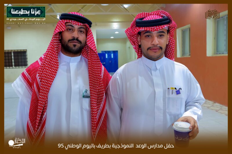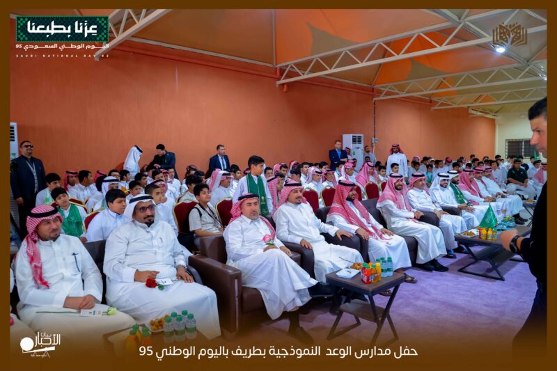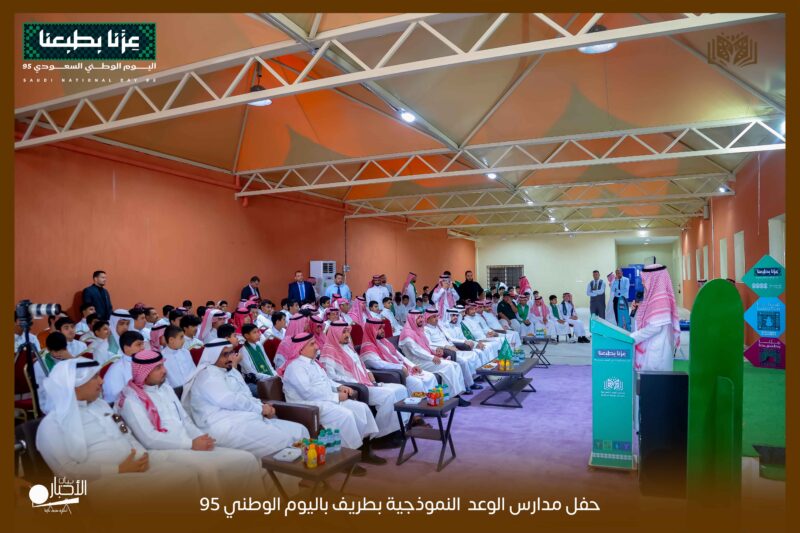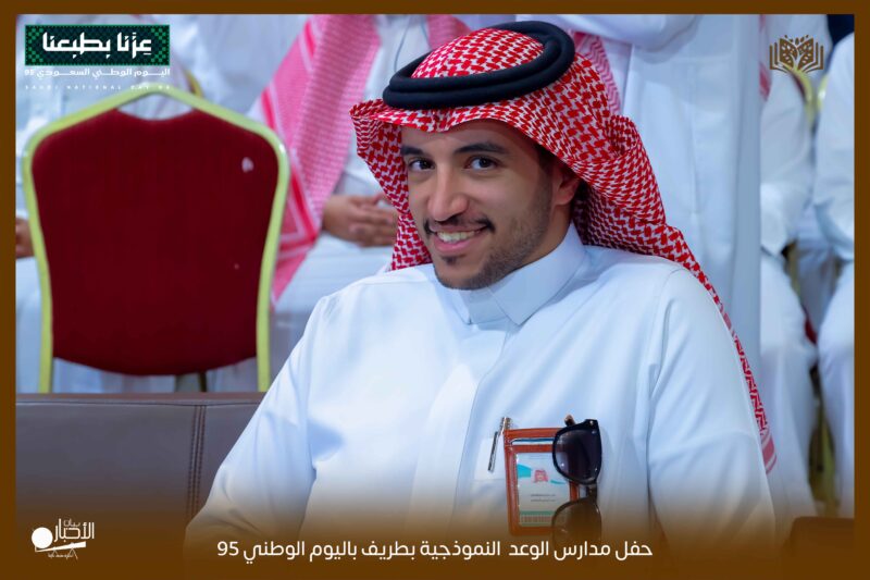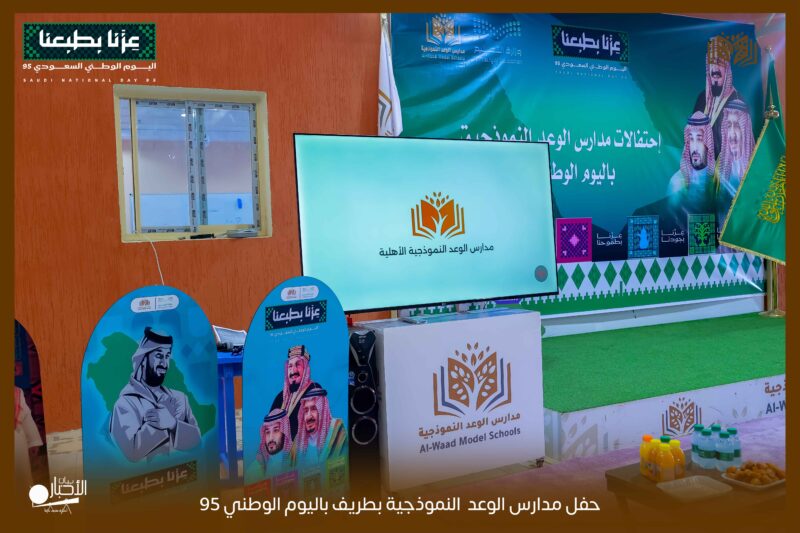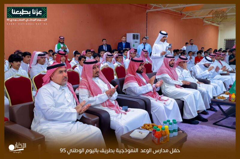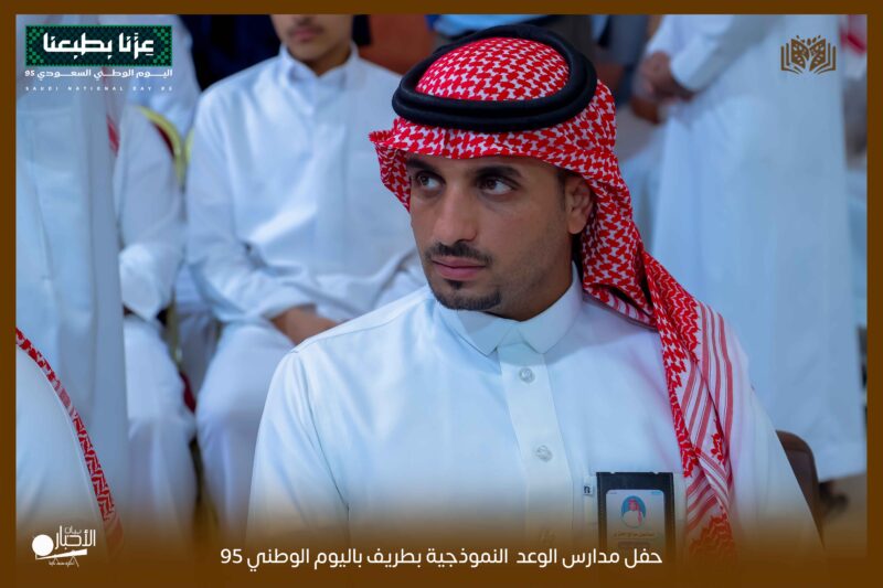 أقامت مدارس الوعد النموذجية للمرحلة الثانوية و المتوسطة حفل اليوم الوطني ال ٩٥ في يوم الاربعاء الموافق ١٤٤٧/٤/٩ برعاية كريمة من رئيس اللجنة التنفيذية الاستاذ عيد قيضي الرويلي ونائب رئيس جمعية رعاية الايتام الاستاذ محمد سالم الرويلي وبحضور الاستاذ طلال الهليم العنزي وأعضاء جمعية رعاية الايتام.