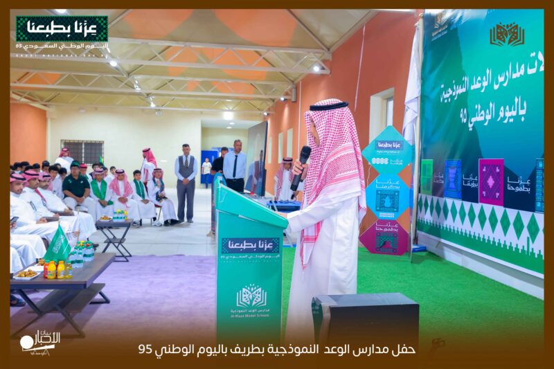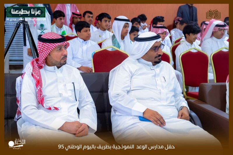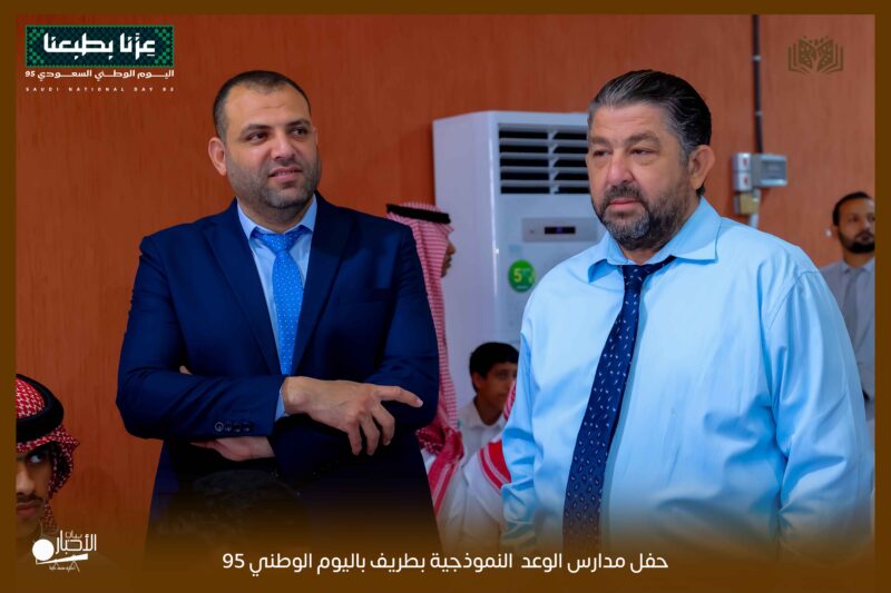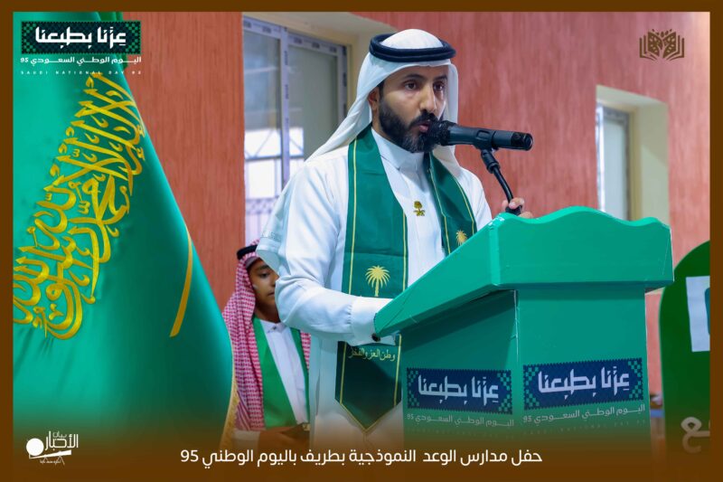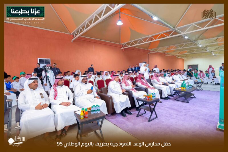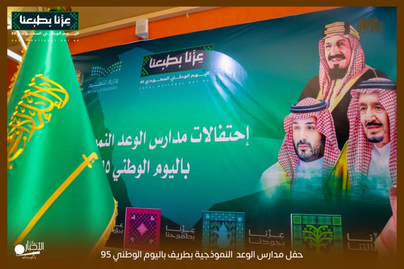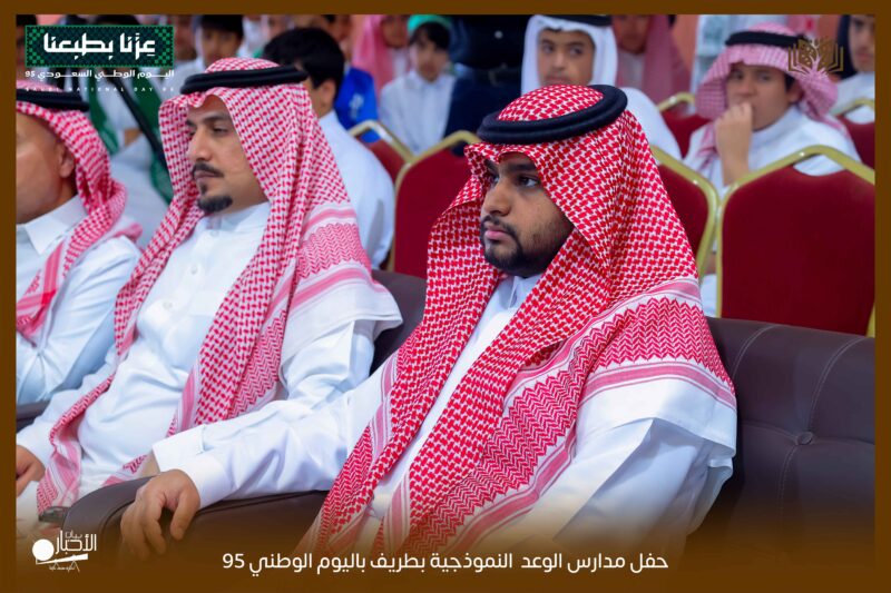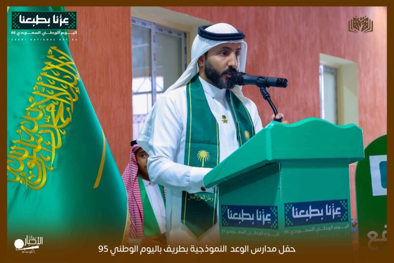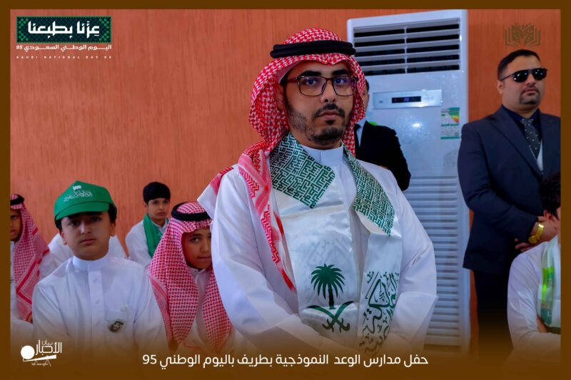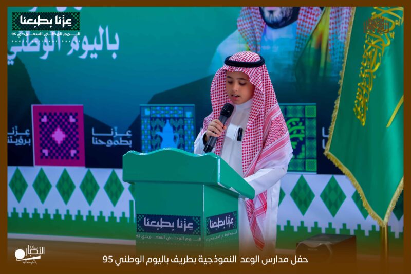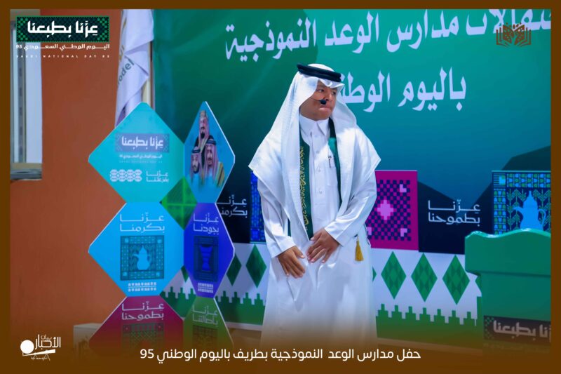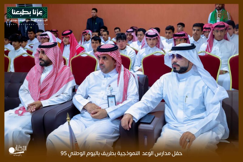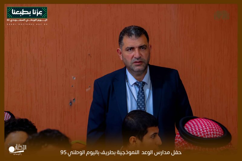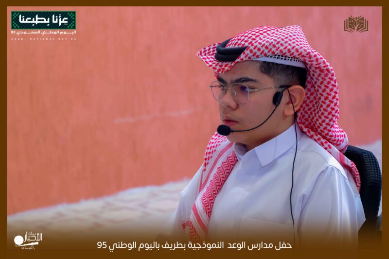 أقامت مدارس الوعد النموذجية للمرحلة الثانوية و المتوسطة حفل اليوم الوطني ال ٩٥ في يوم الاربعاء الموافق ١٤٤٧/٤/٩ برعاية كريمة من رئيس اللجنة التنفيذية الاستاذ عيد قيضي الرويلي ونائب رئيس جمعية رعاية الايتام الاستاذ محمد سالم الرويلي وبحضور الاستاذ طلال الهليم العنزي وأعضاء جمعية رعاية الايتام.