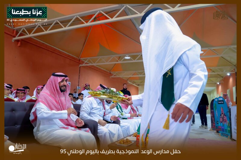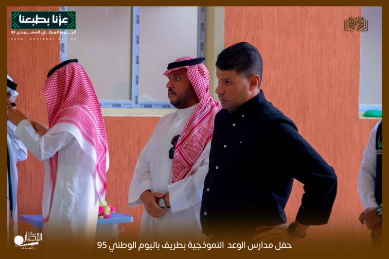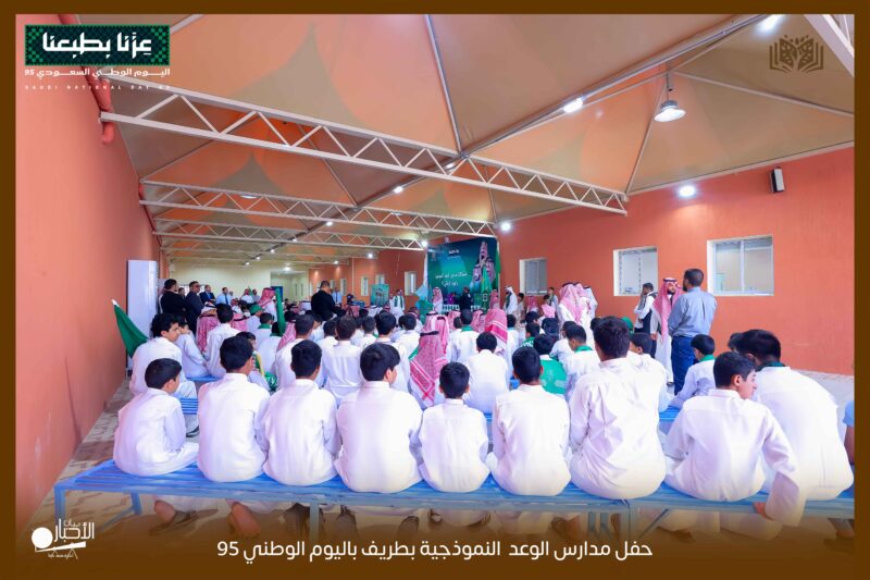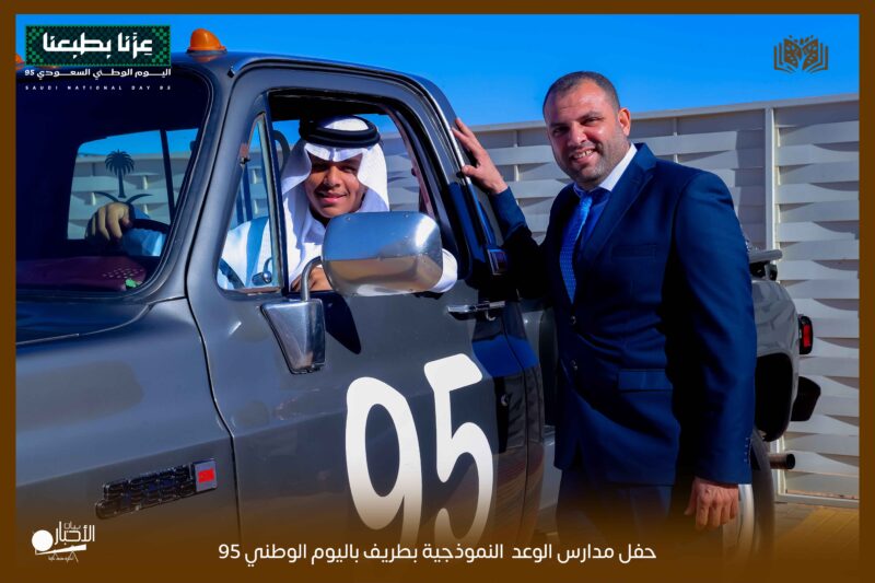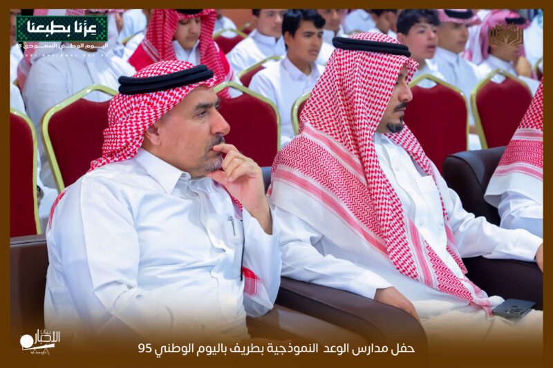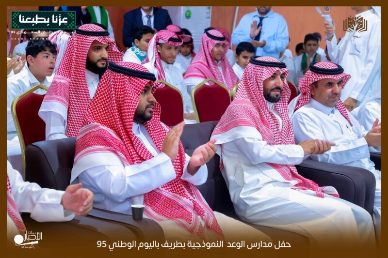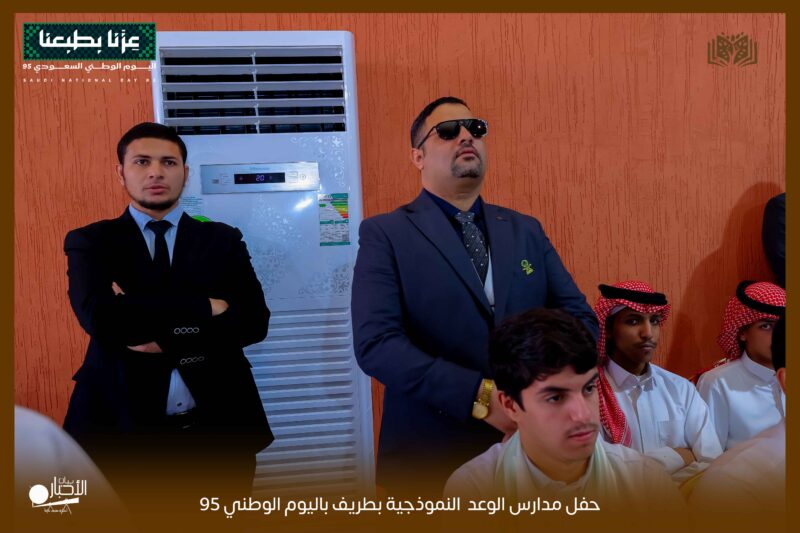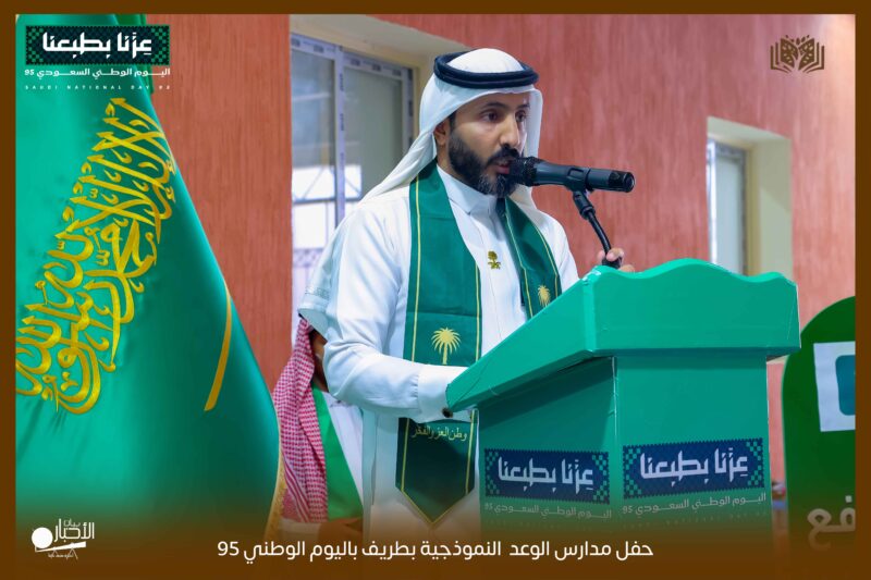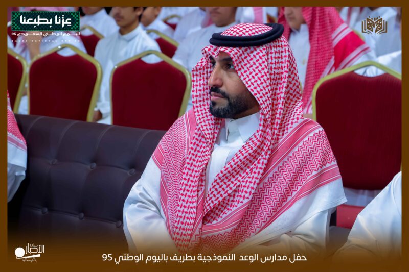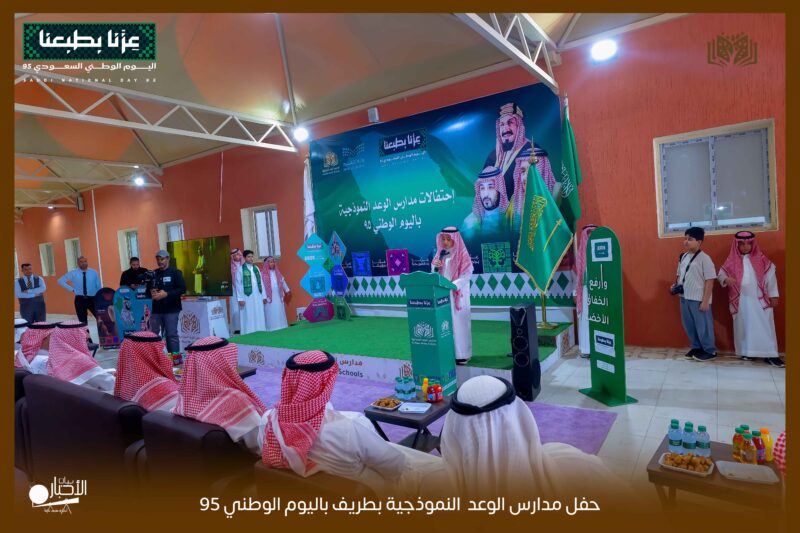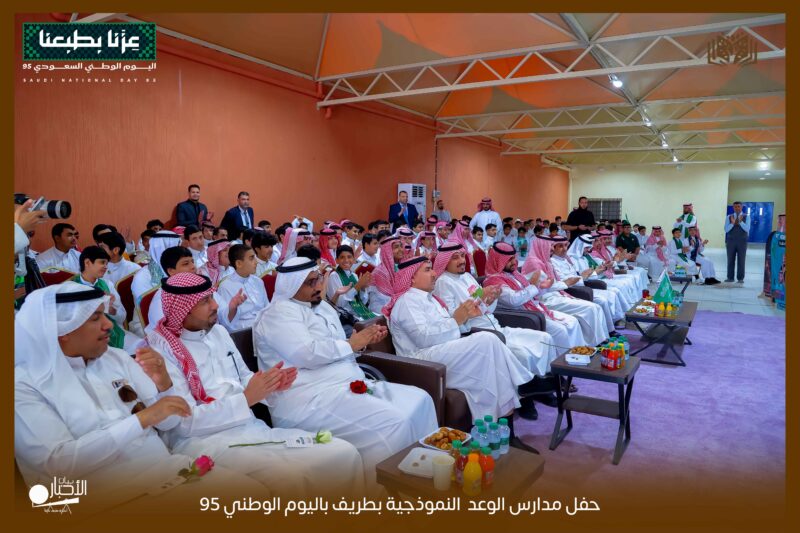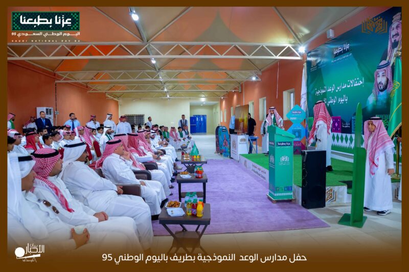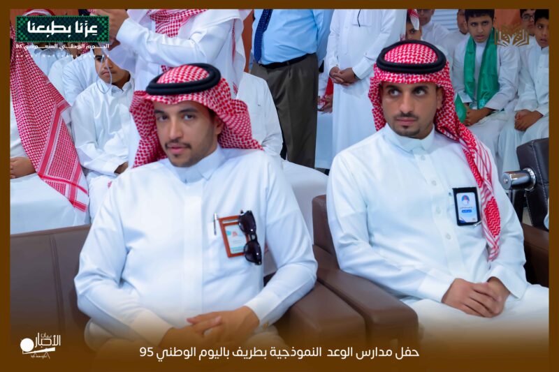 أقامت مدارس الوعد النموذجية للمرحلة الثانوية و المتوسطة حفل اليوم الوطني ال ٩٥ في يوم الاربعاء الموافق ١٤٤٧/٤/٩ برعاية كريمة من رئيس اللجنة التنفيذية الاستاذ عيد قيضي الرويلي ونائب رئيس جمعية رعاية الايتام الاستاذ محمد سالم الرويلي وبحضور الاستاذ طلال الهليم العنزي وأعضاء جمعية رعاية الايتام.