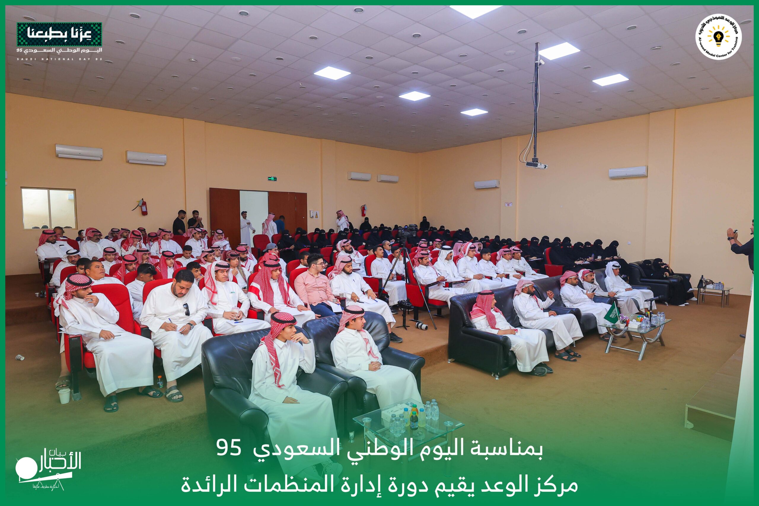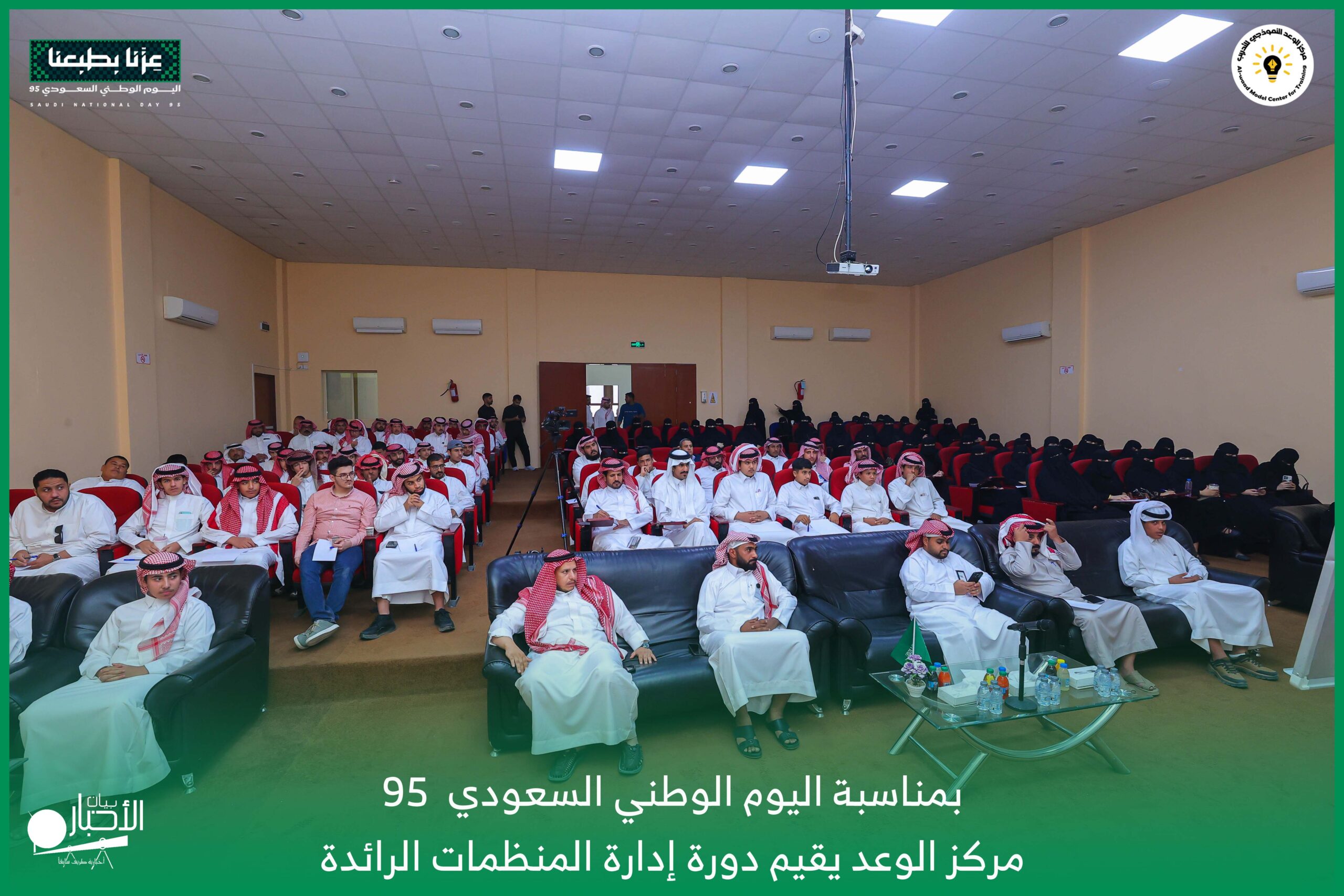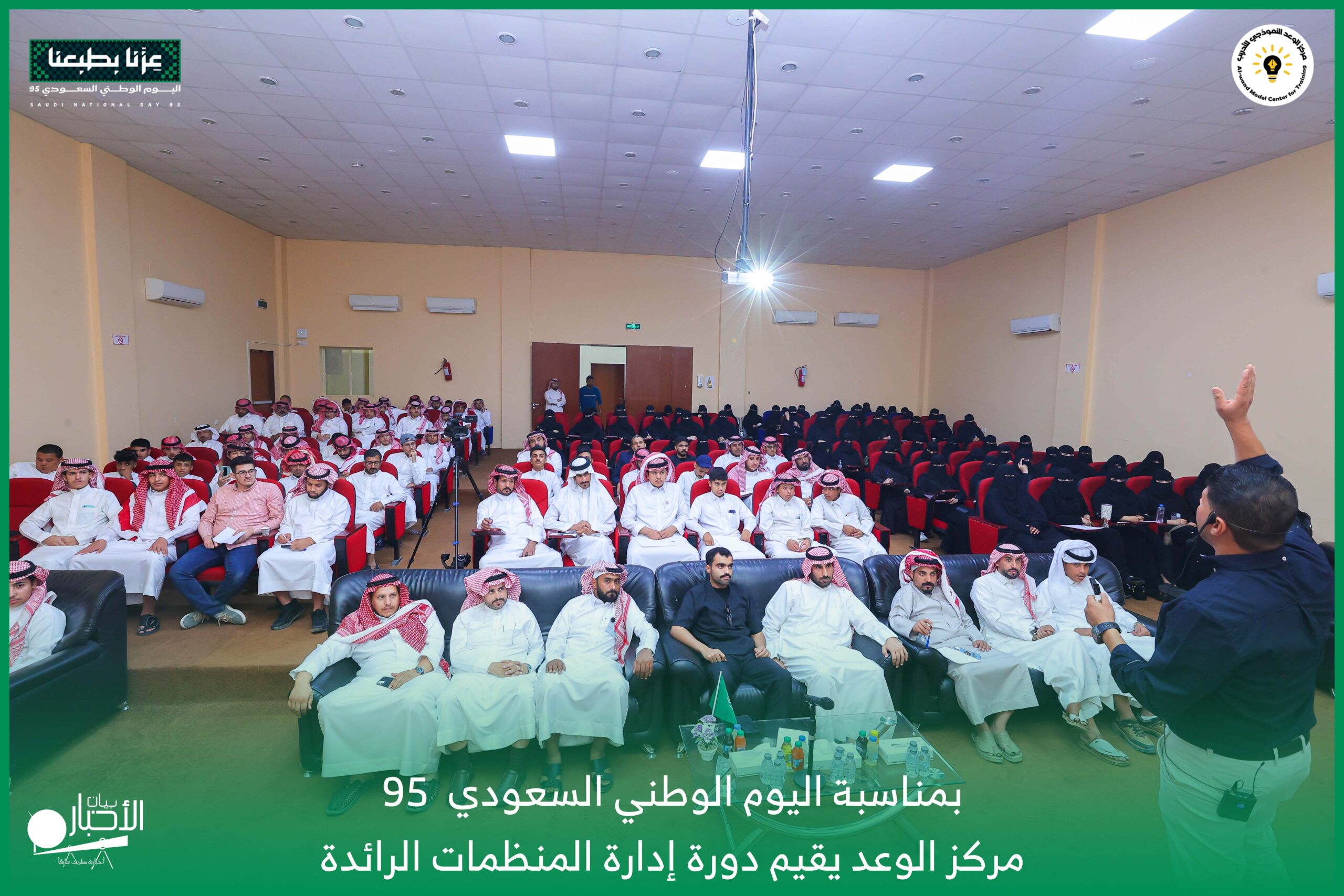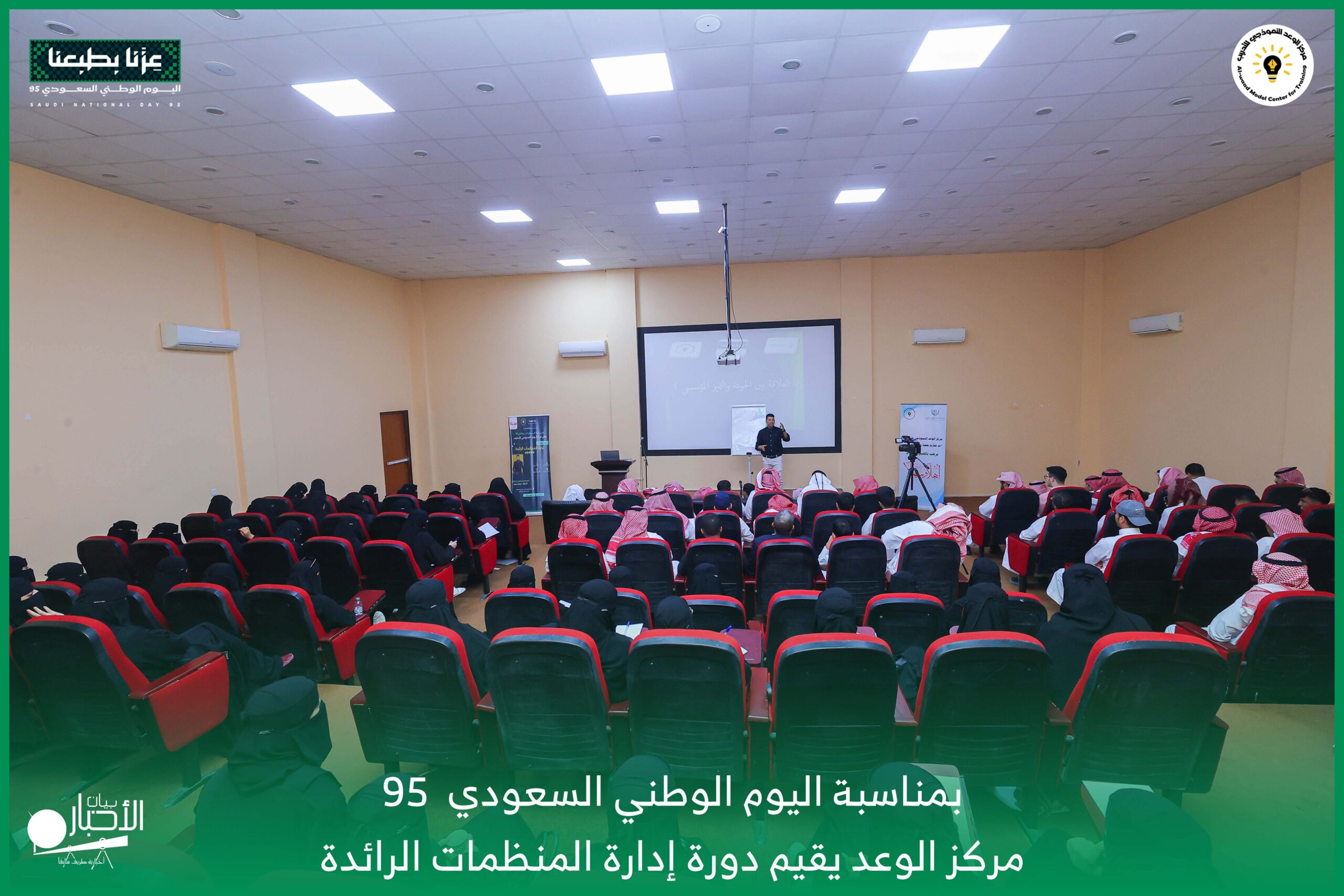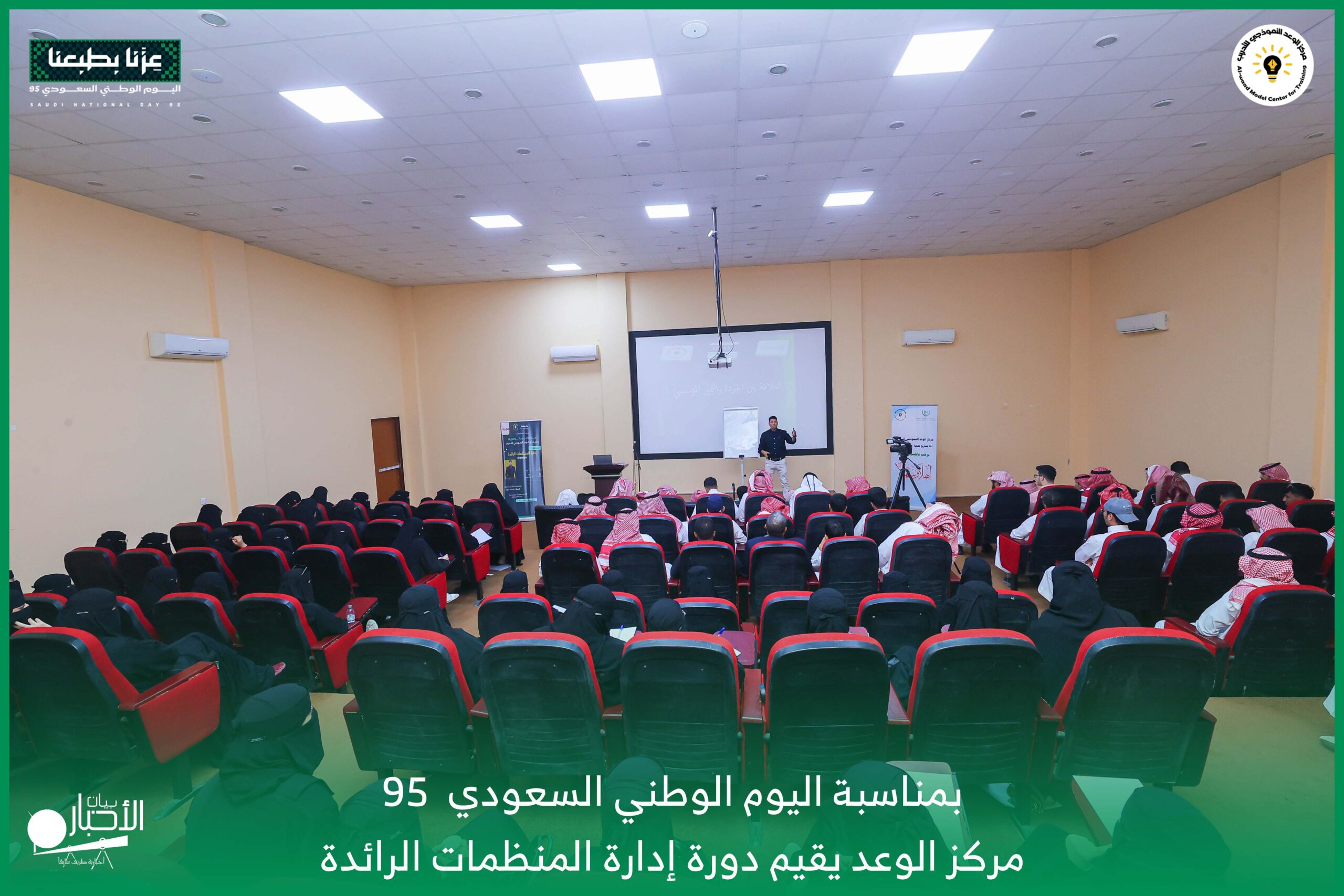 نظم مركز الوعد النموذجي للتدريب دورة تدريبية بعنوان “إدارة المنظمات الرائدة”، وذلك بمناسبة اليوم الوطني السعودي الـ95 ، وفي إطار مساهمته في تنمية المهارات وبناء القدرات المجتمعية.