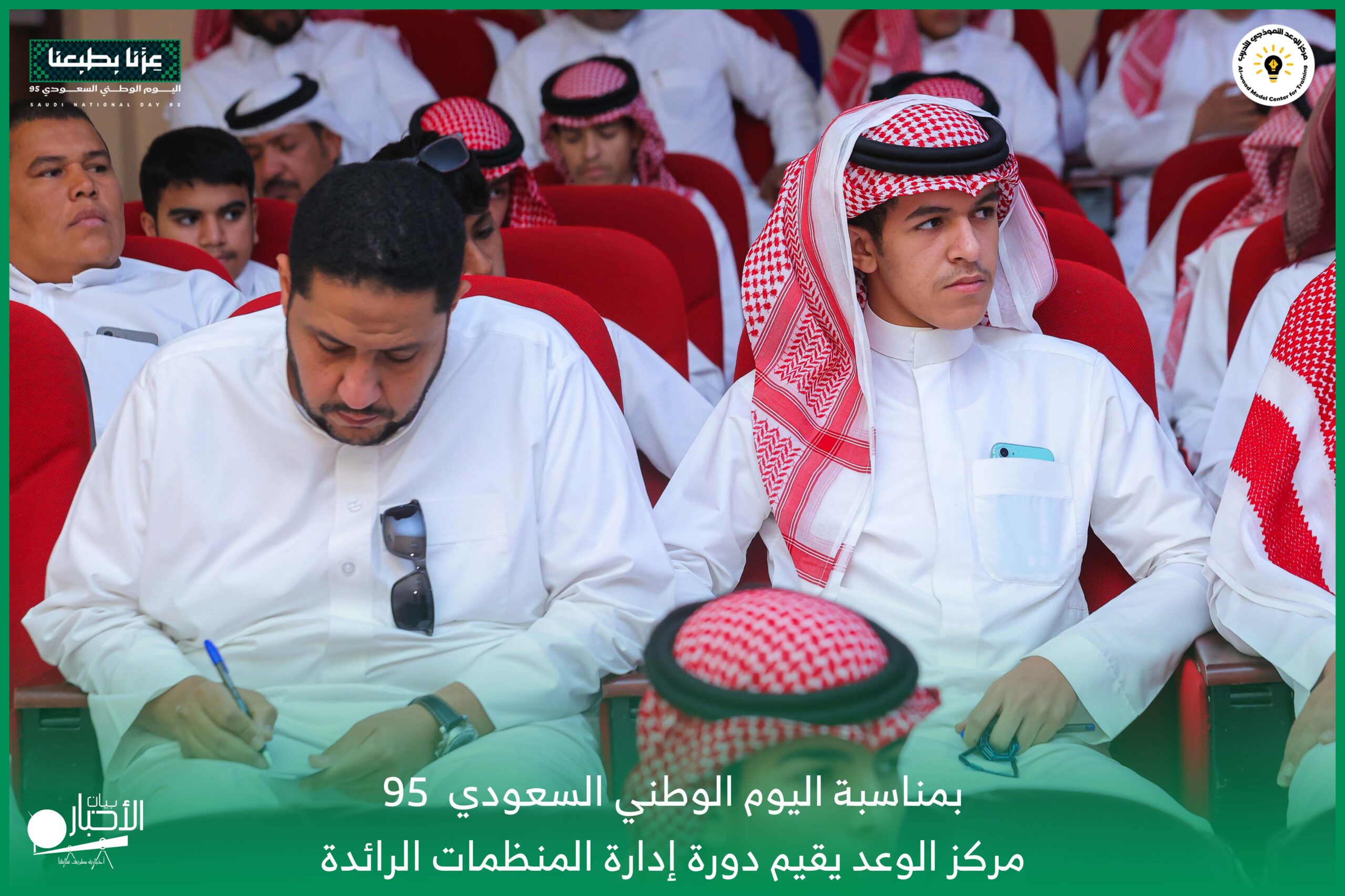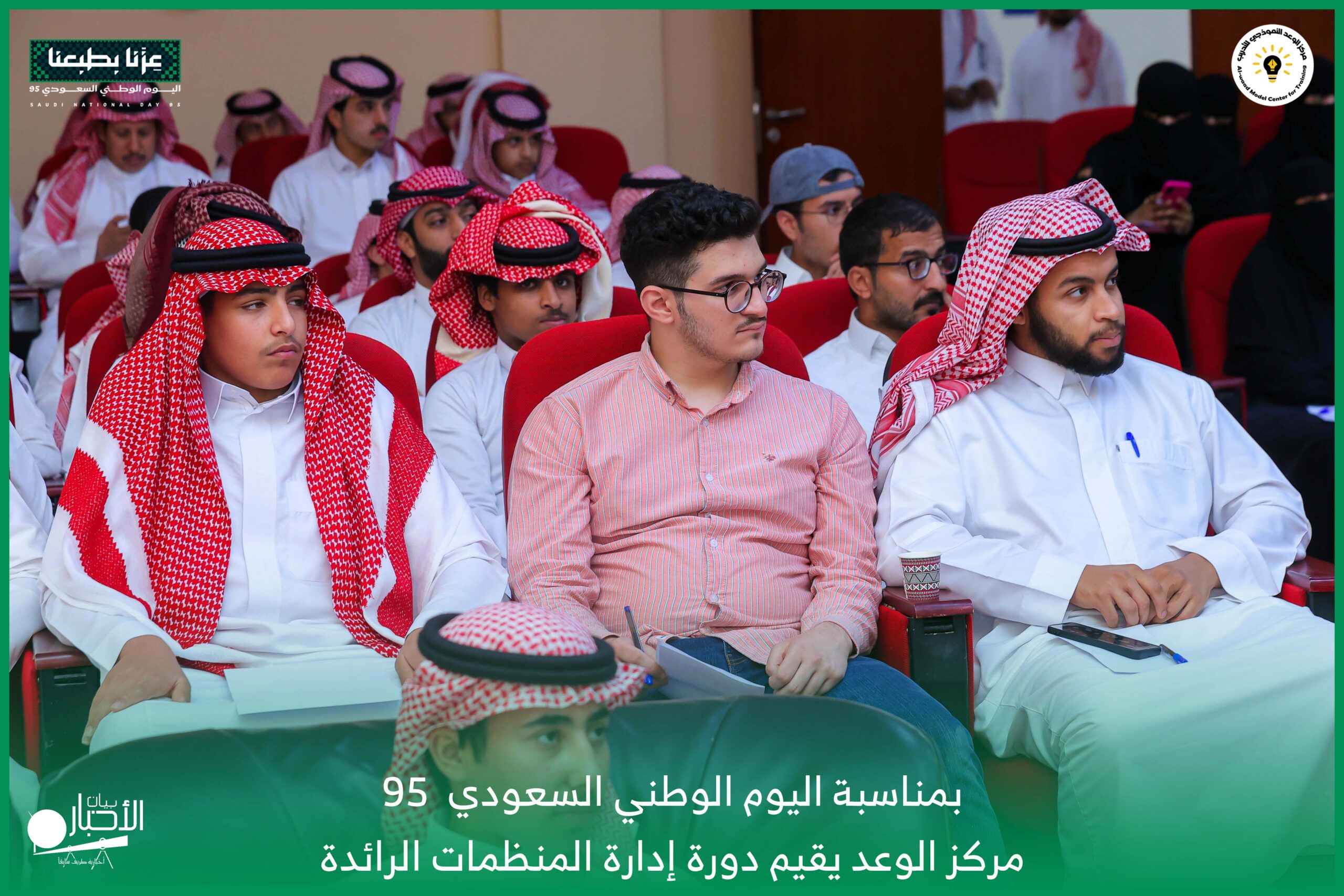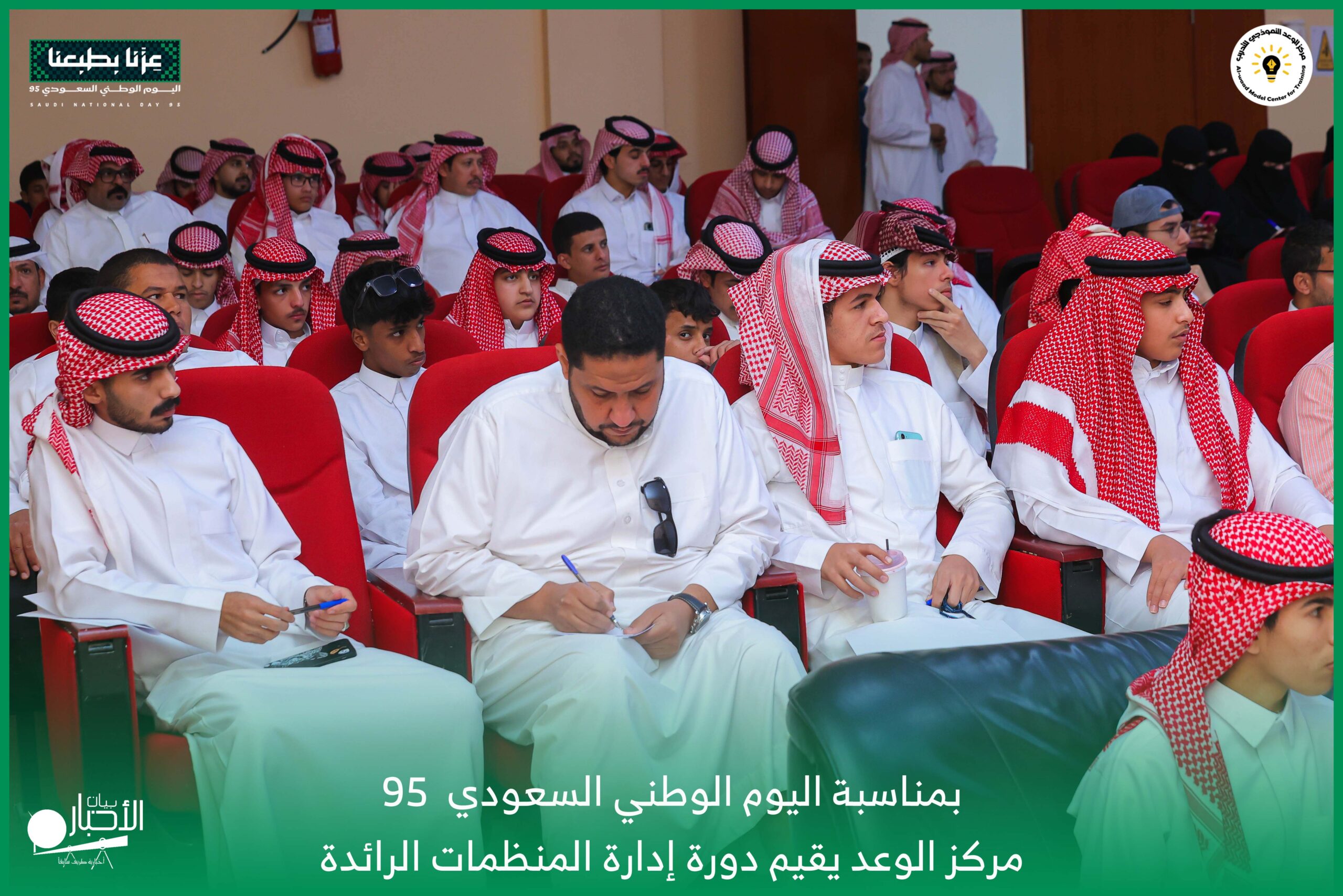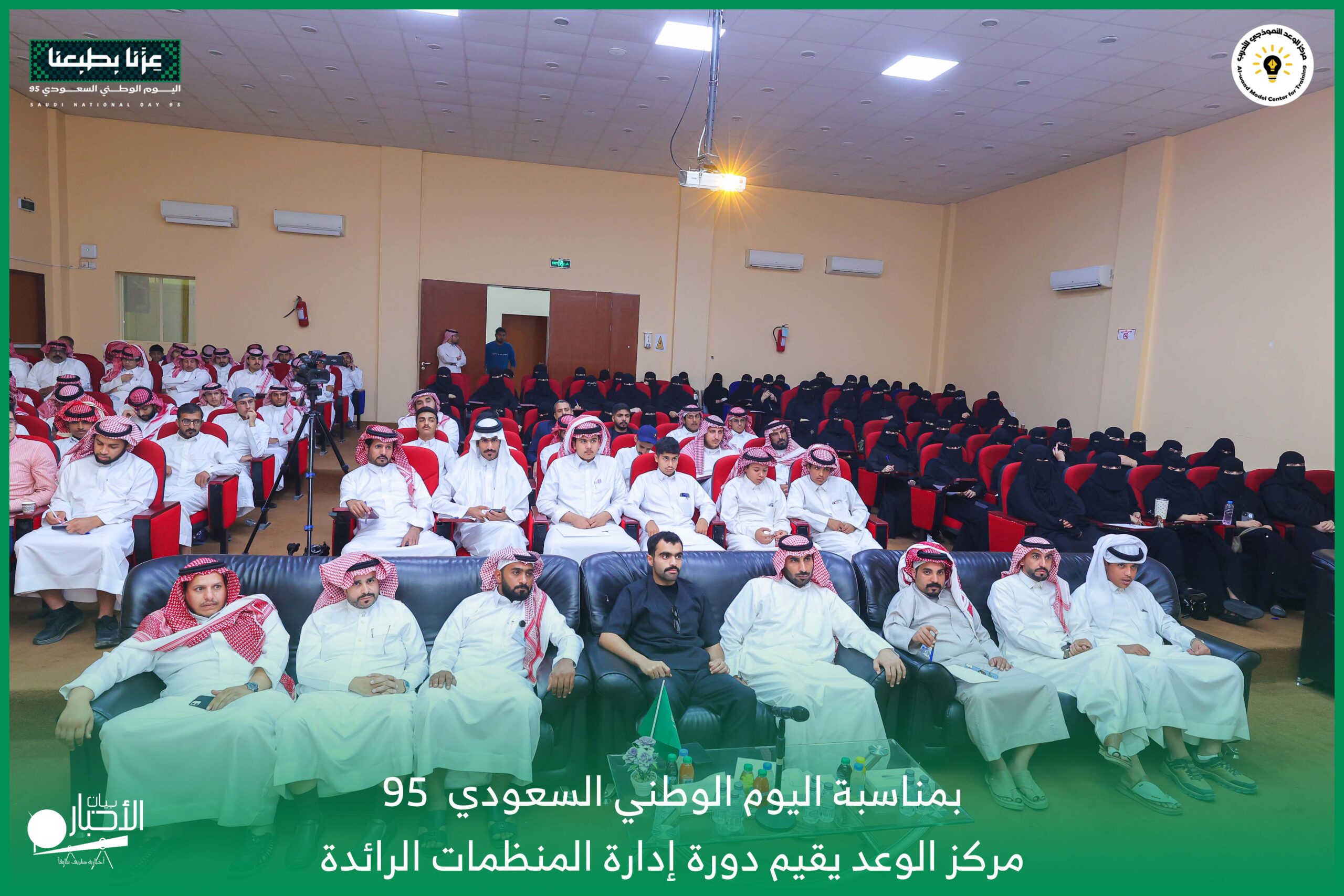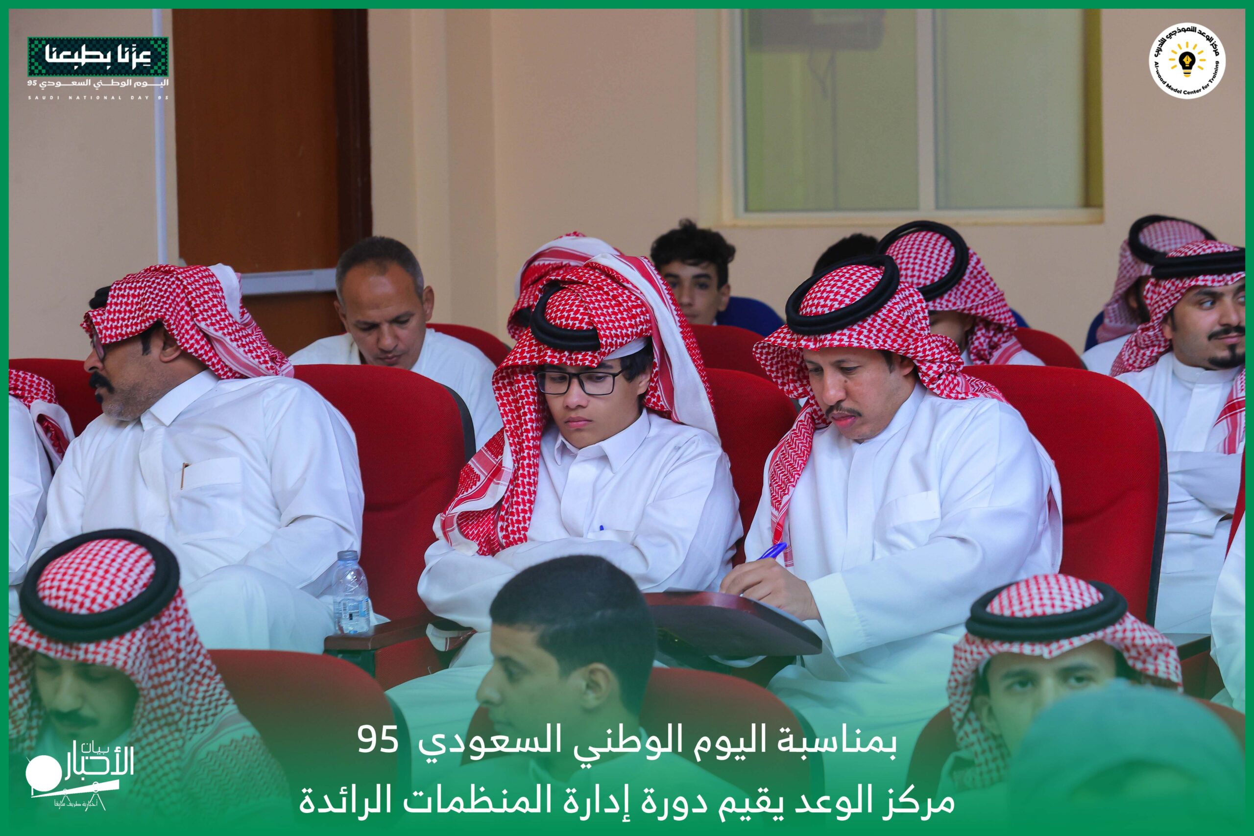 نظم مركز الوعد النموذجي للتدريب دورة تدريبية بعنوان “إدارة المنظمات الرائدة”، وذلك بمناسبة اليوم الوطني السعودي الـ95 ، وفي إطار مساهمته في تنمية المهارات وبناء القدرات المجتمعية.
