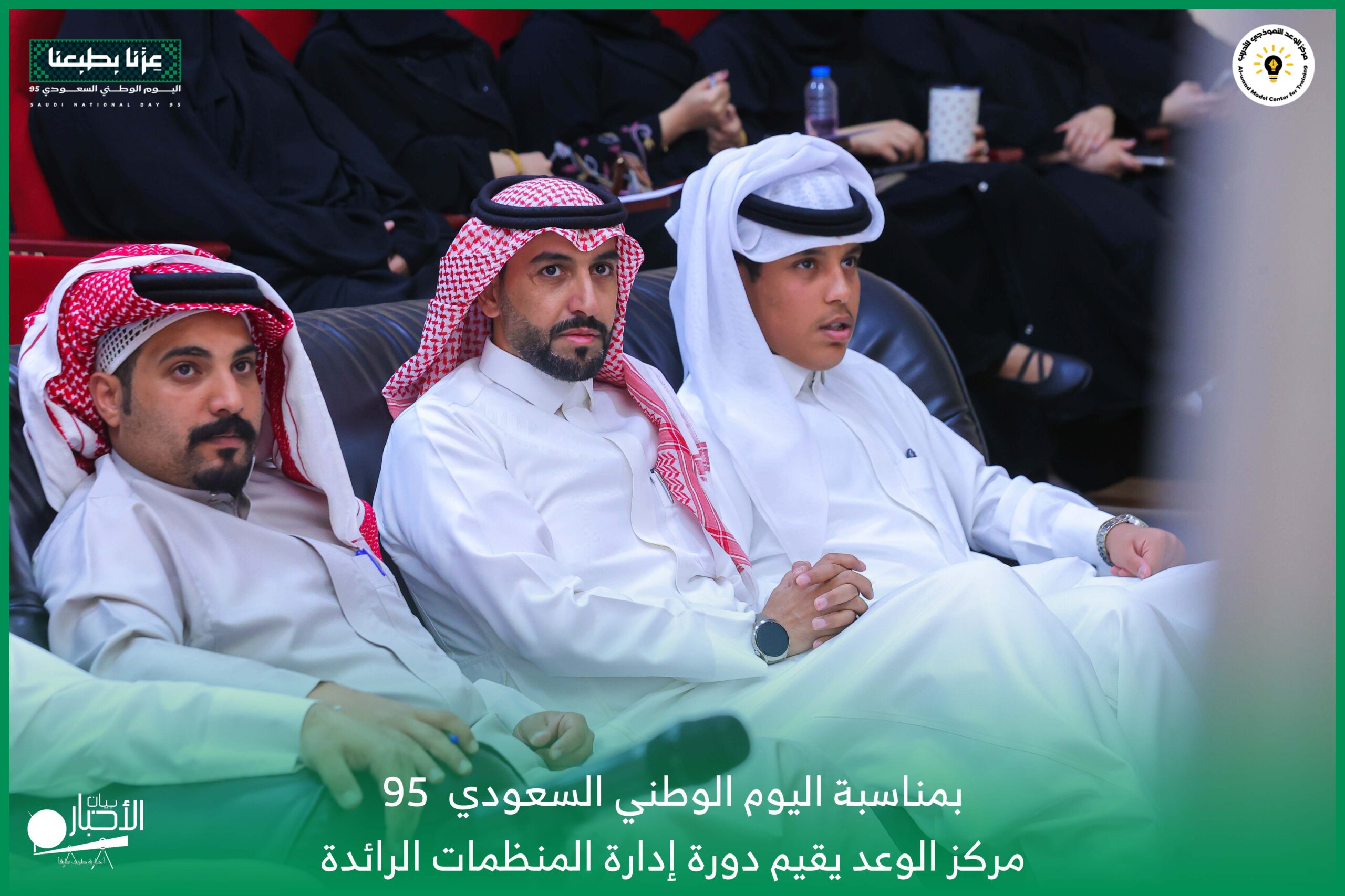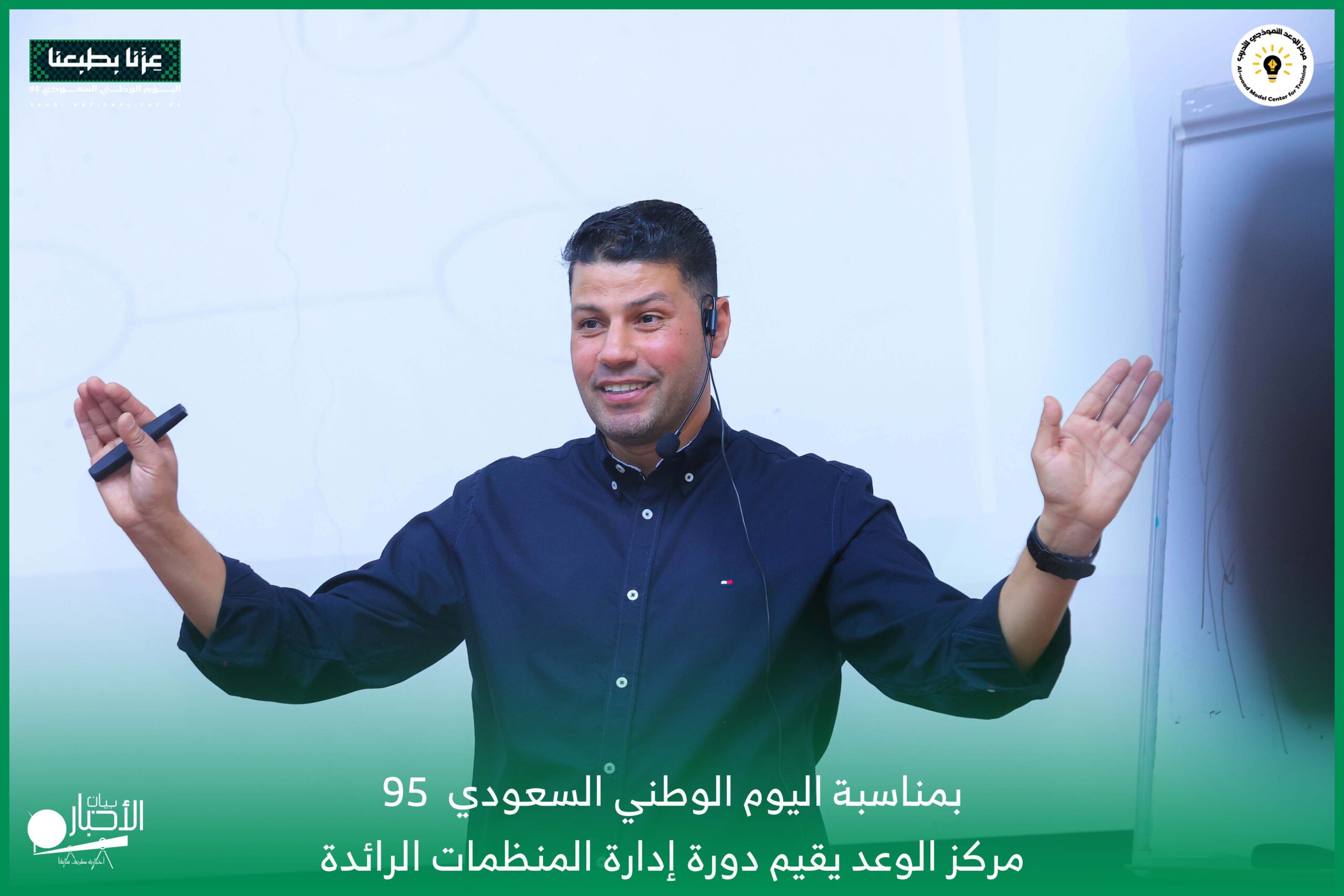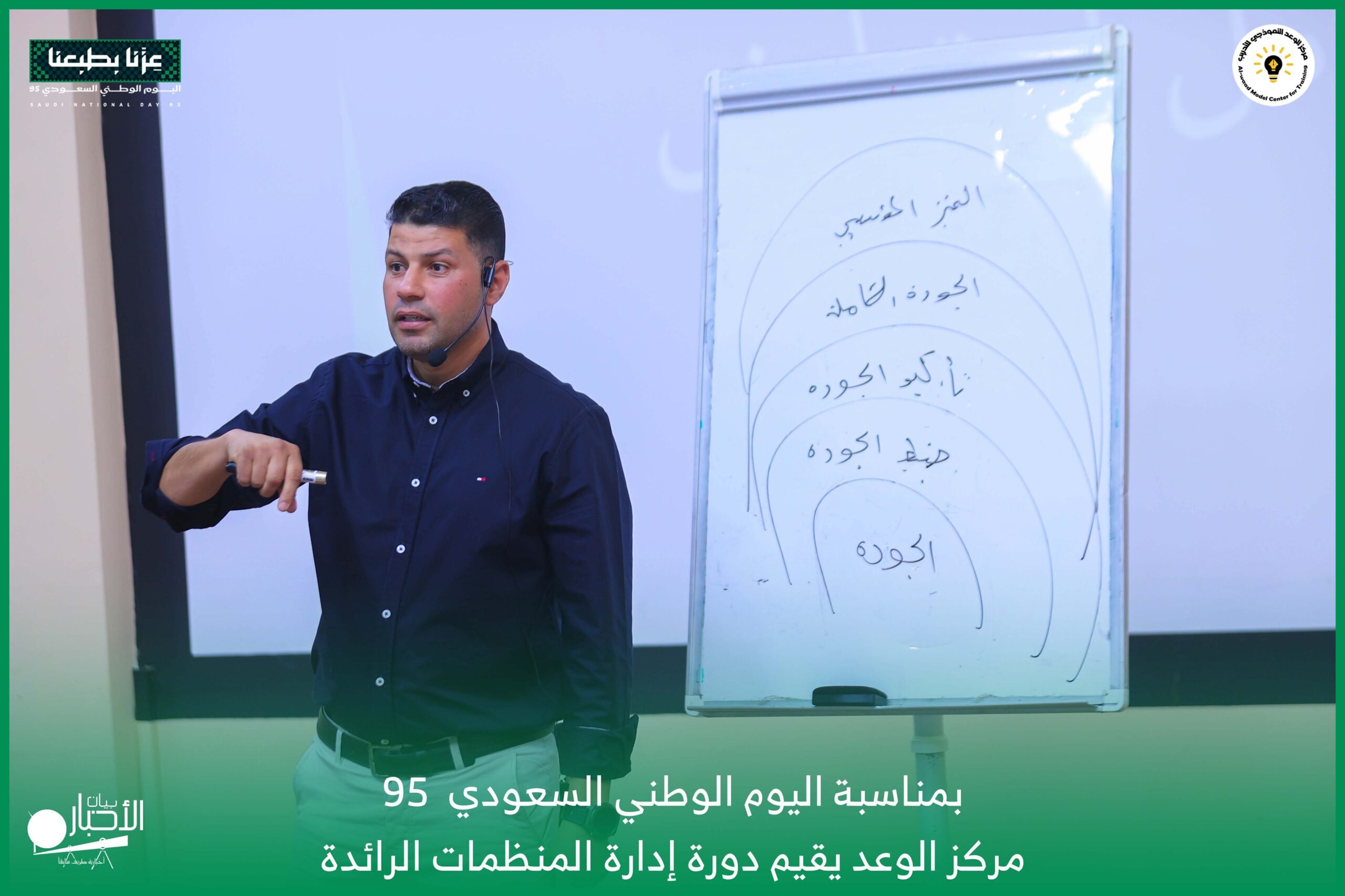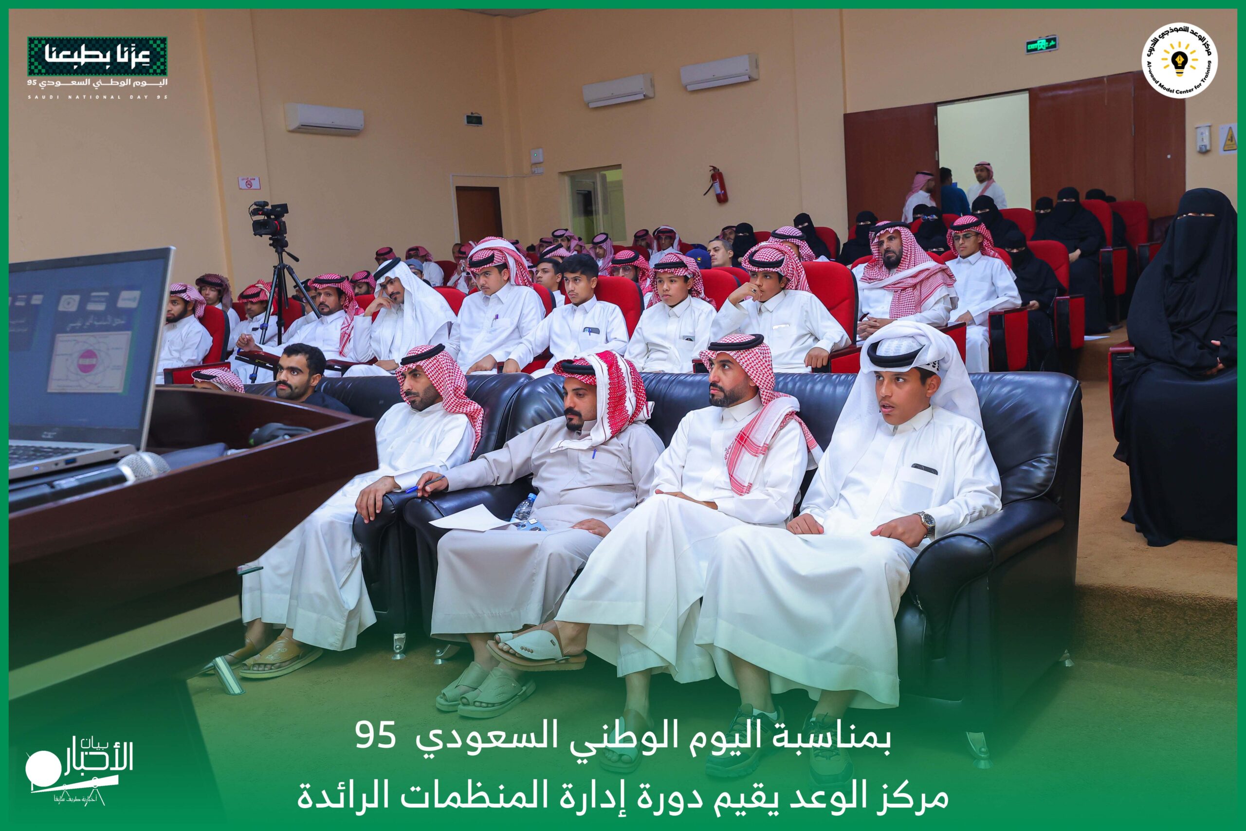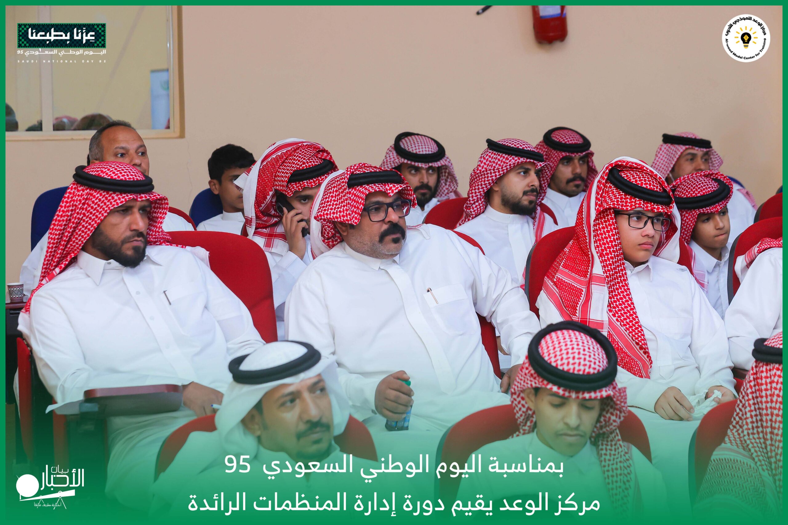 نظم مركز الوعد النموذجي للتدريب دورة تدريبية بعنوان “إدارة المنظمات الرائدة”، وذلك بمناسبة اليوم الوطني السعودي الـ95 ، وفي إطار مساهمته في تنمية المهارات وبناء القدرات المجتمعية.