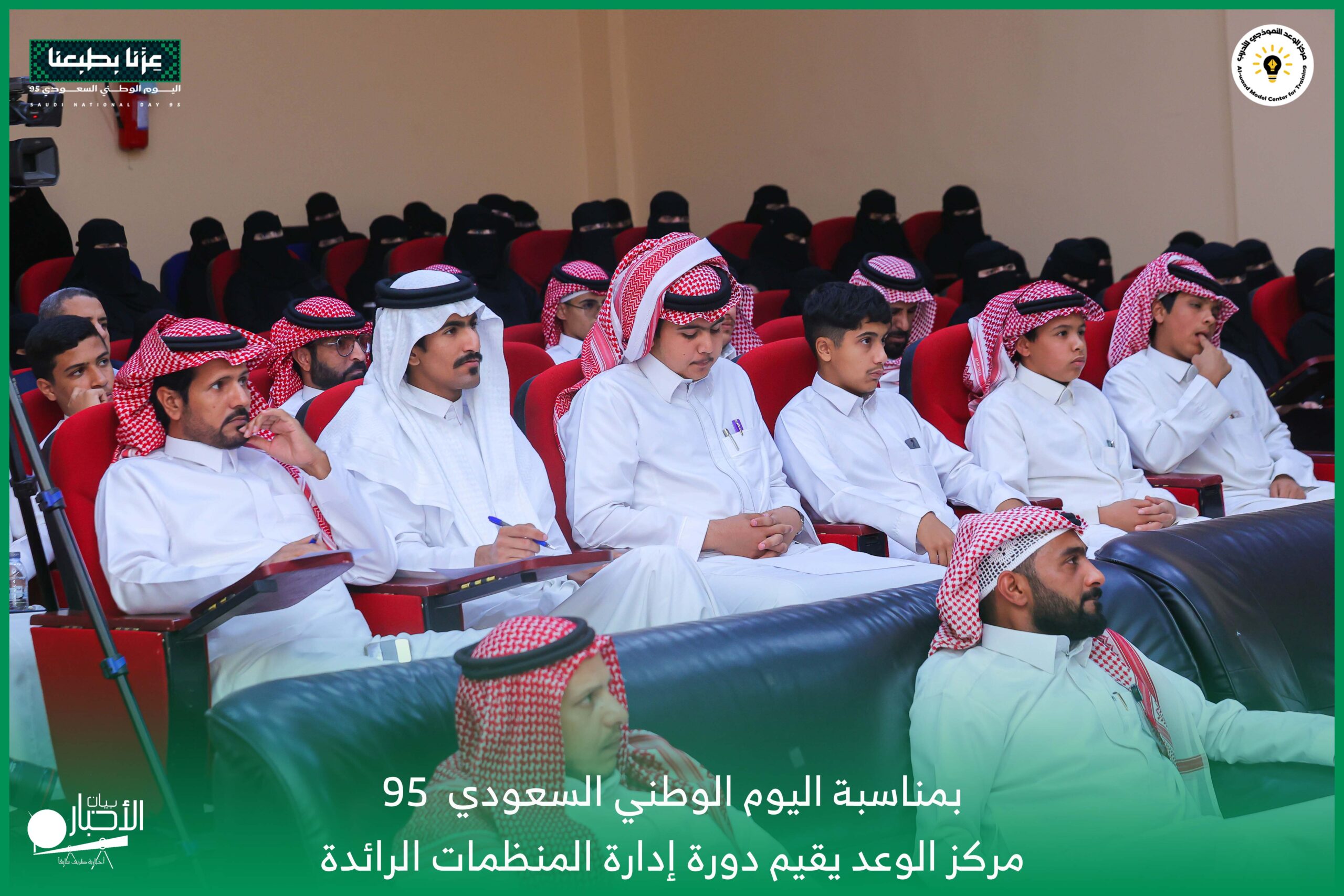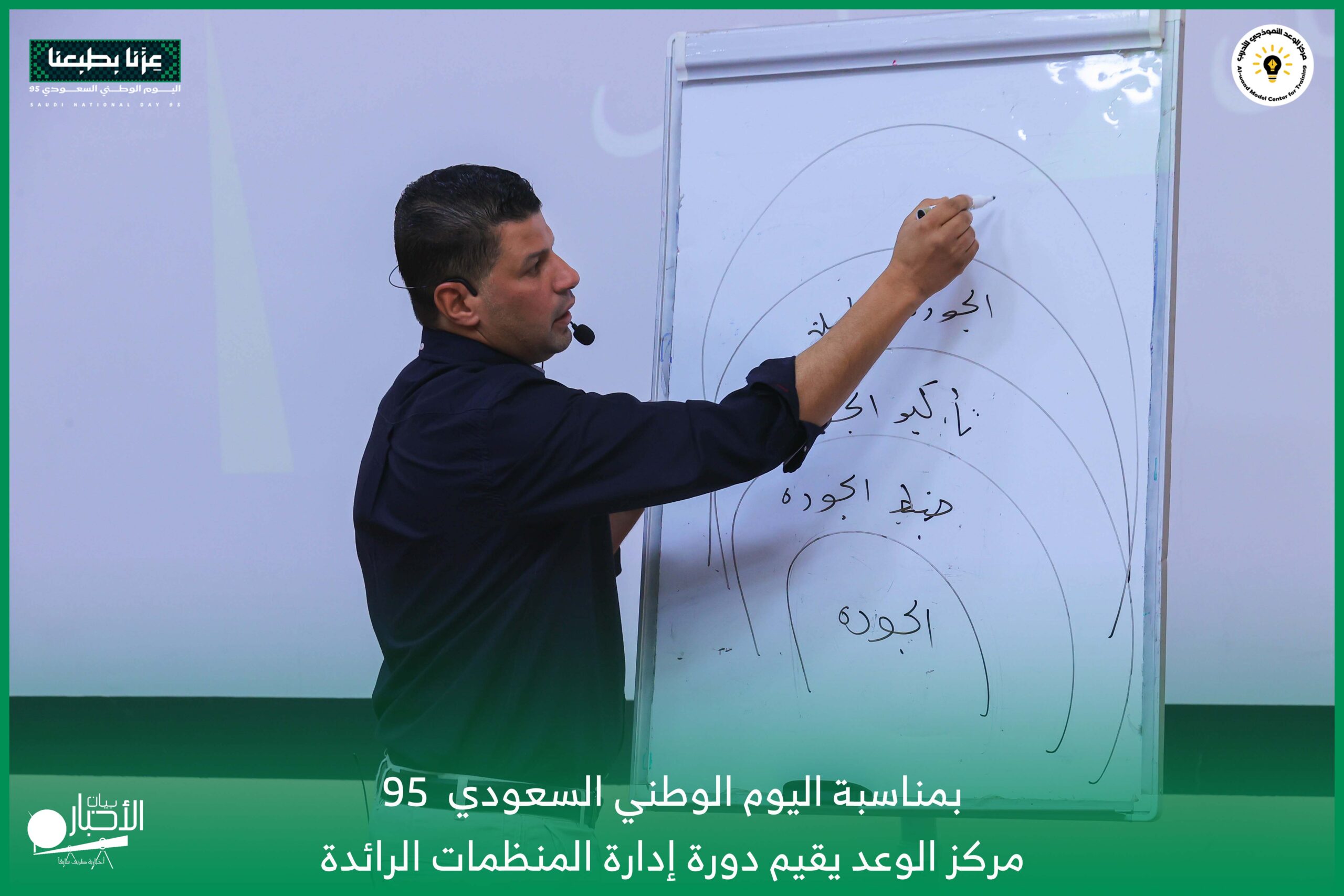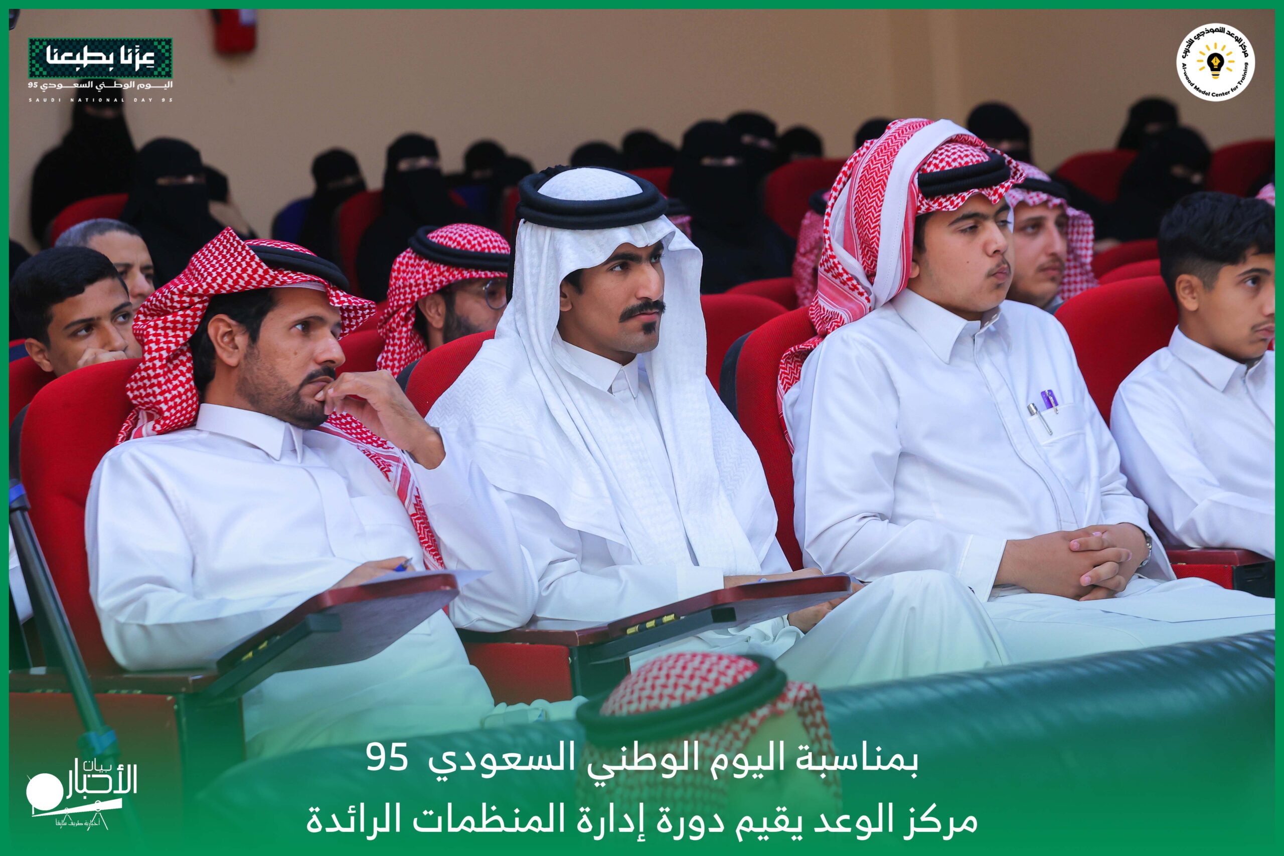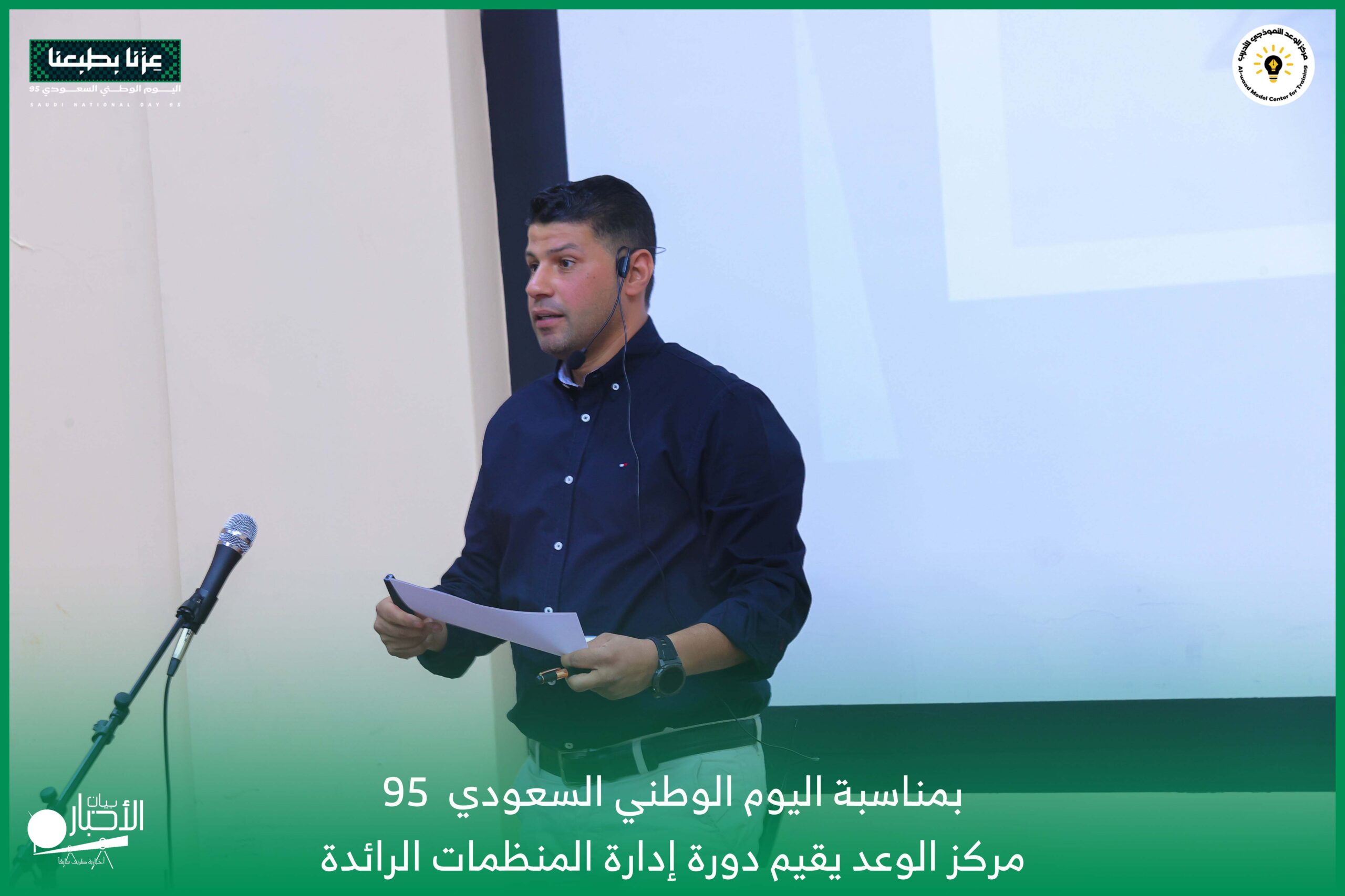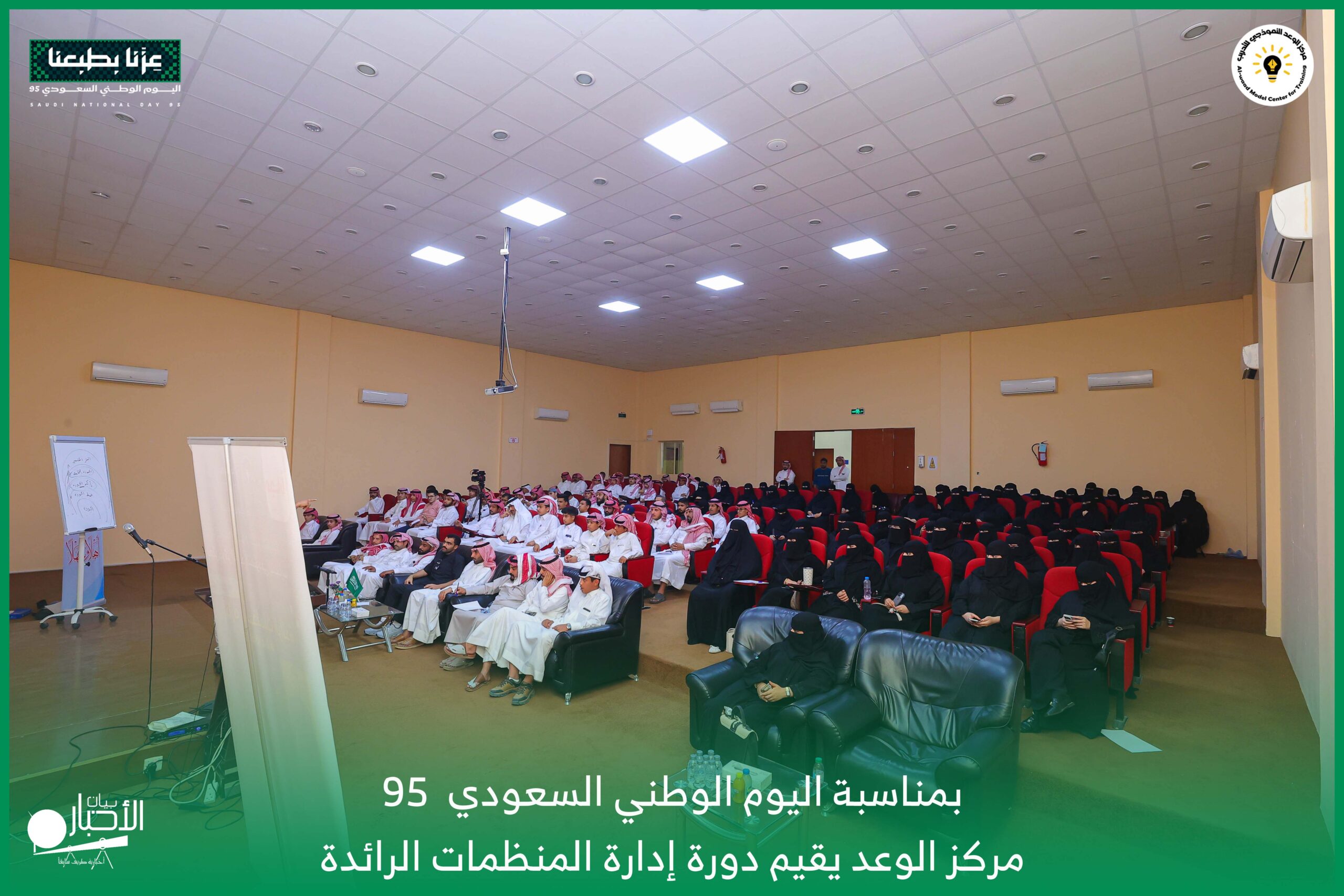 نظم مركز الوعد النموذجي للتدريب دورة تدريبية بعنوان “إدارة المنظمات الرائدة”، وذلك بمناسبة اليوم الوطني السعودي الـ95 ، وفي إطار مساهمته في تنمية المهارات وبناء القدرات المجتمعية.