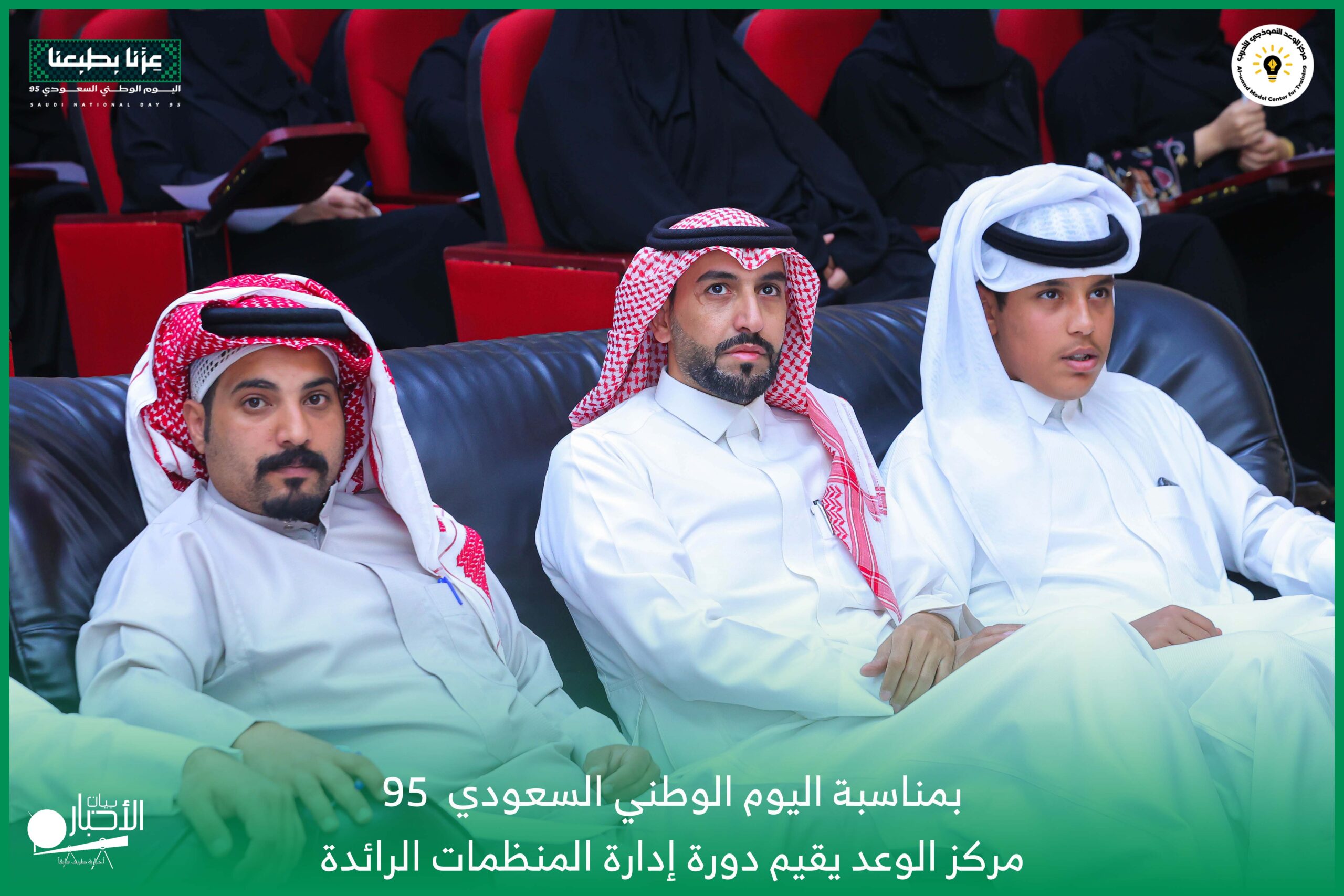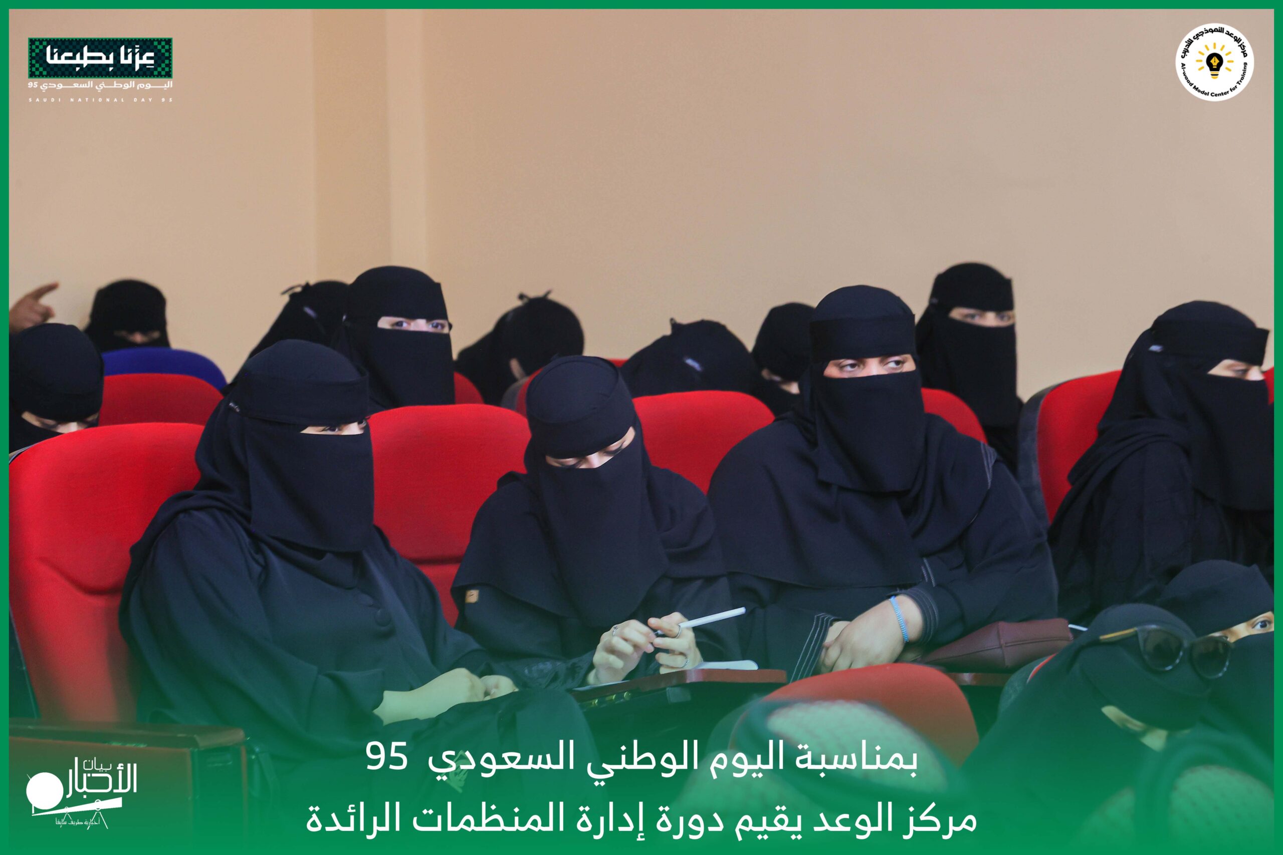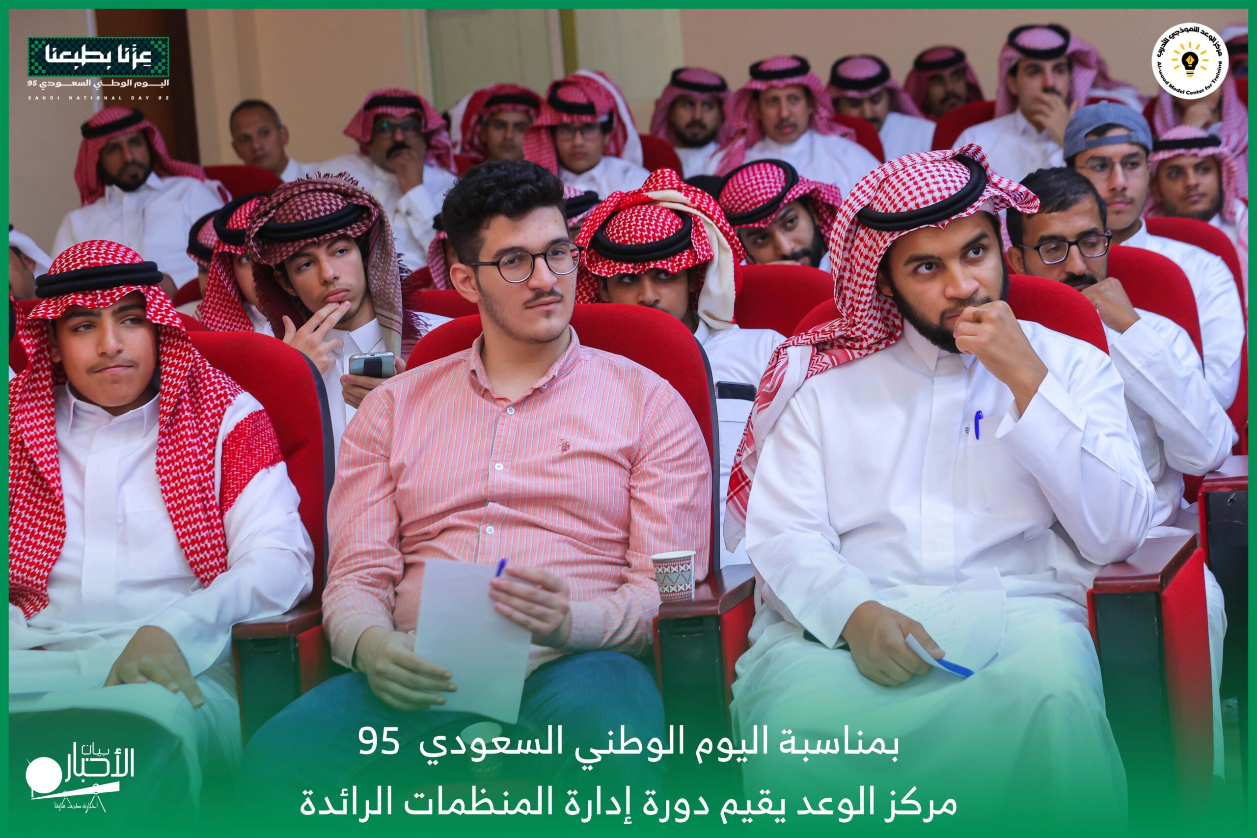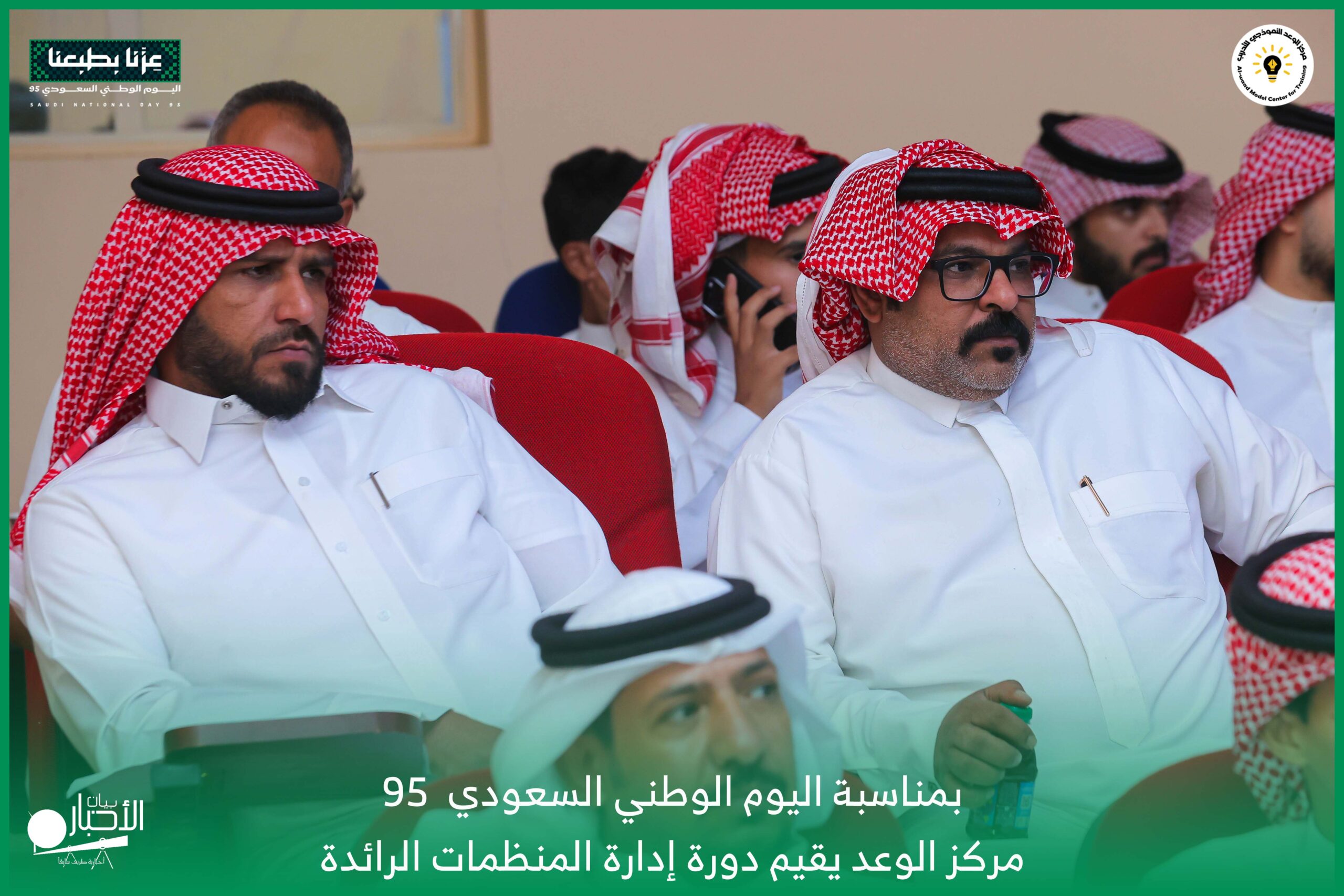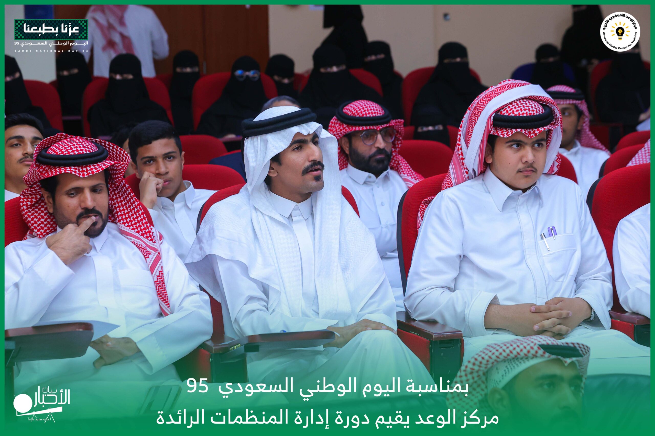 نظم مركز الوعد النموذجي للتدريب دورة تدريبية بعنوان “إدارة المنظمات الرائدة”، وذلك بمناسبة اليوم الوطني السعودي الـ95 ، وفي إطار مساهمته في تنمية المهارات وبناء القدرات المجتمعية.