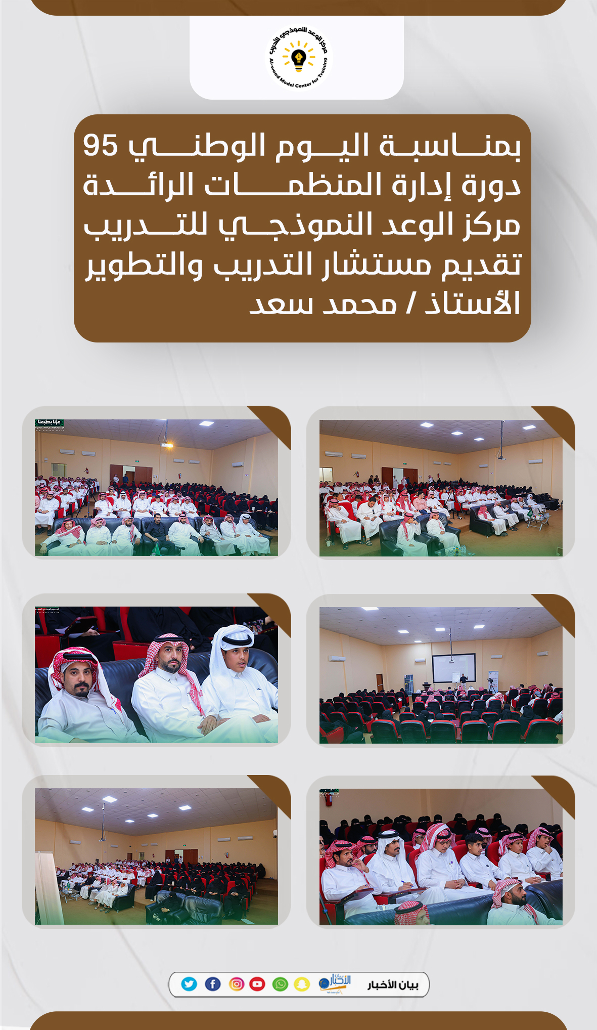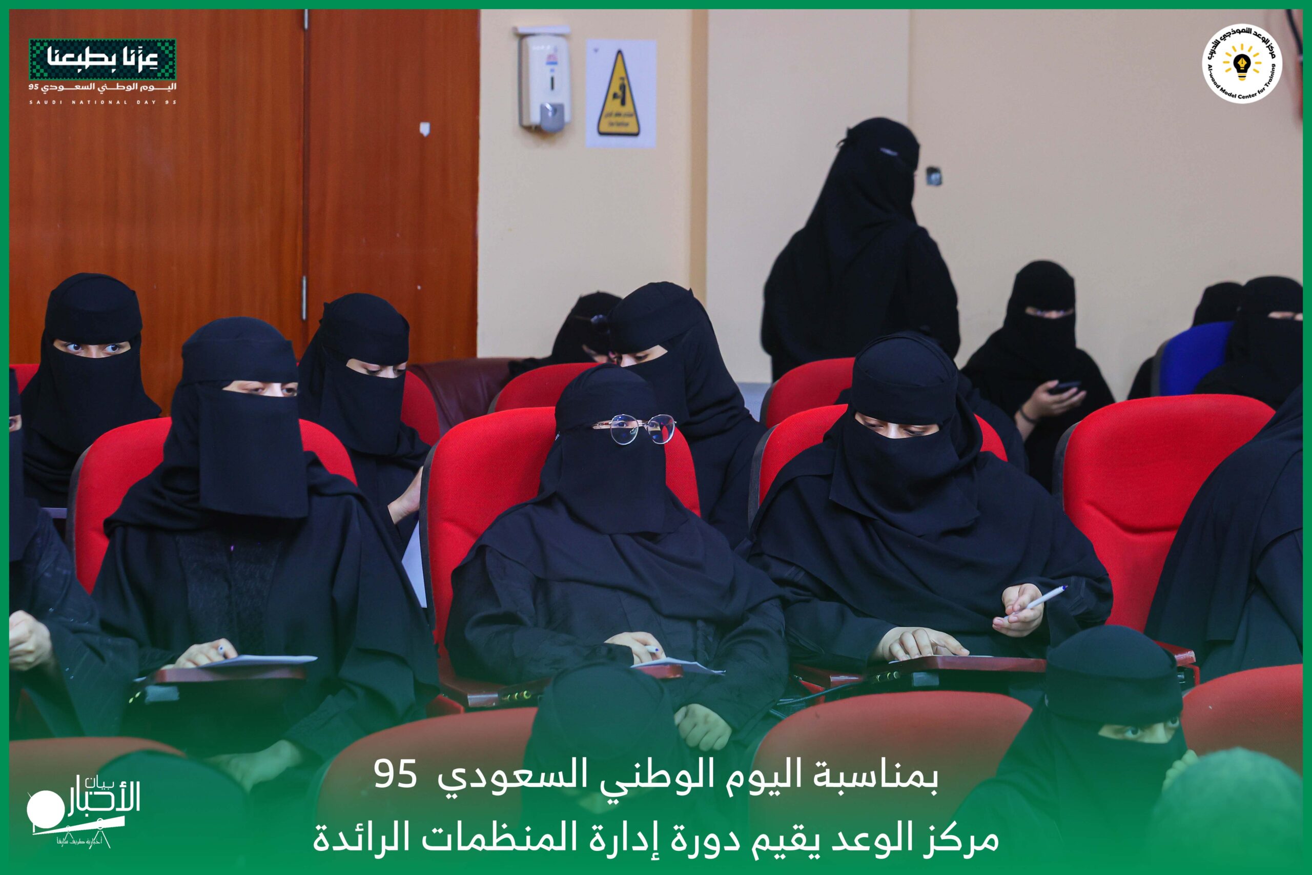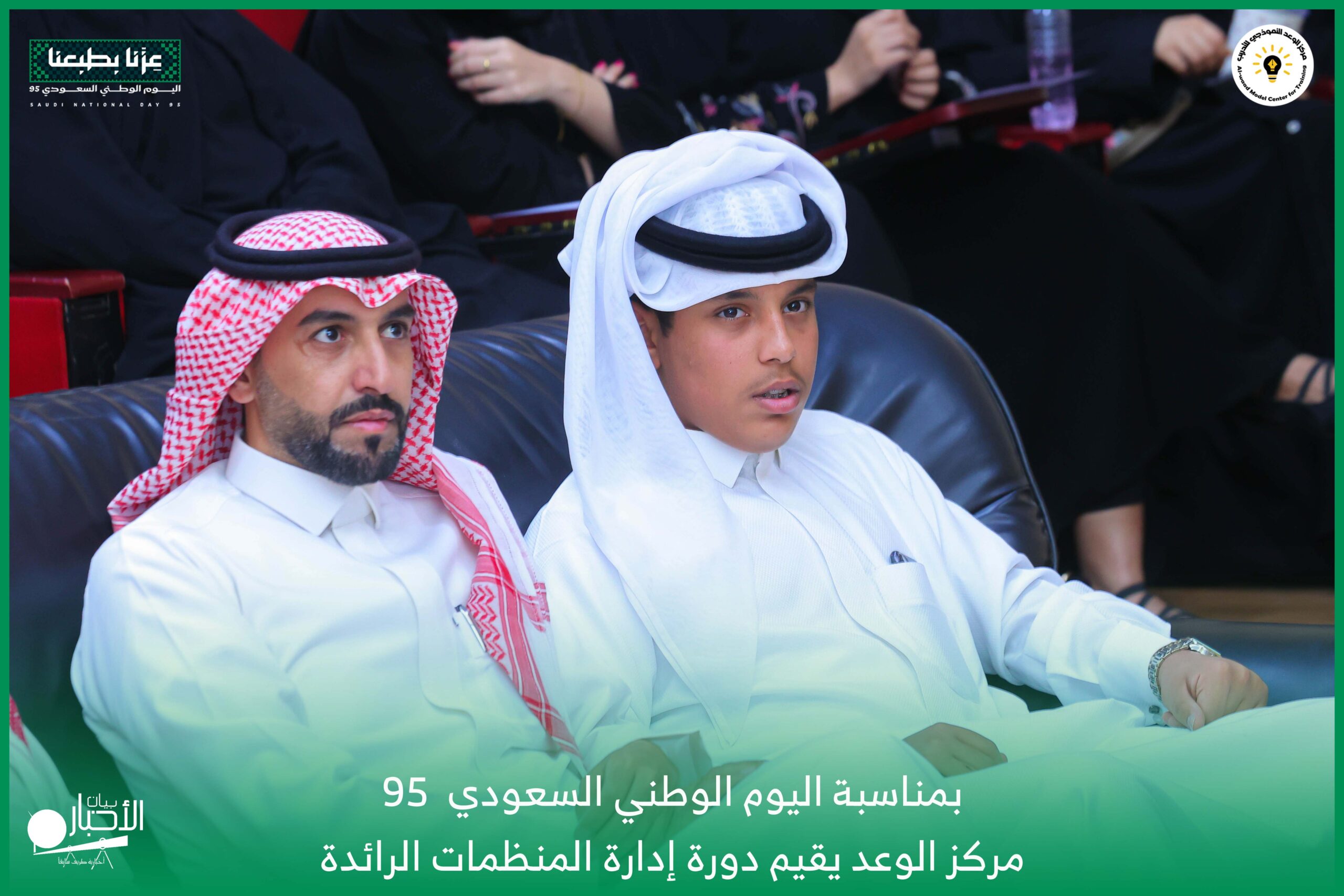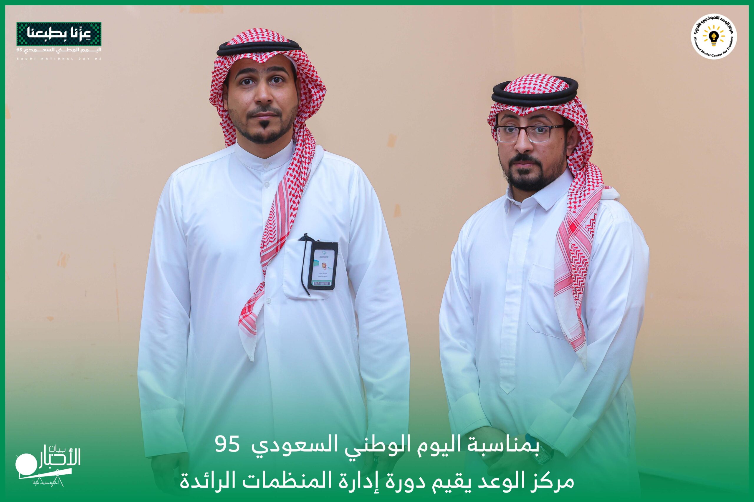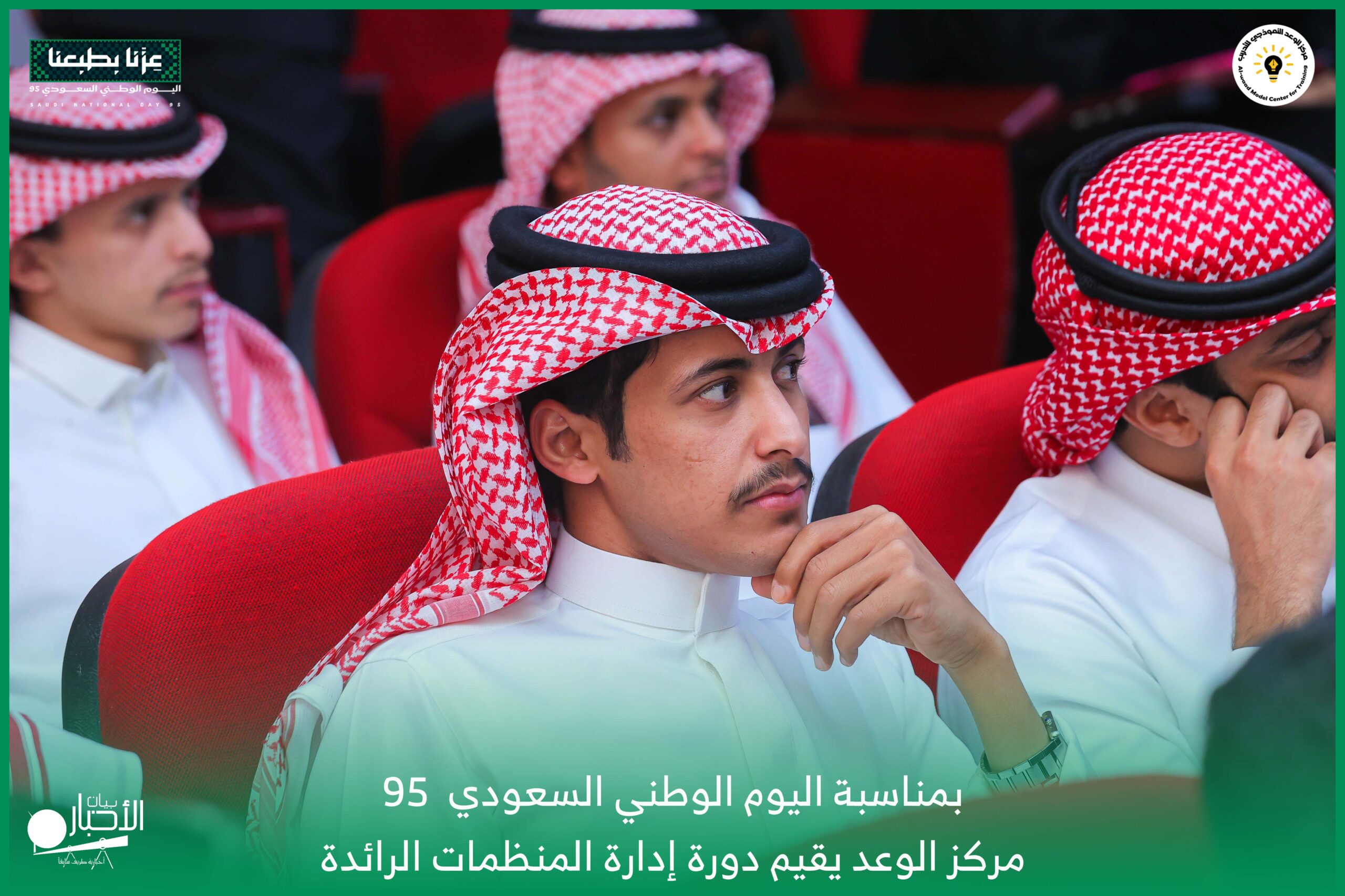 نظم مركز الوعد النموذجي للتدريب دورة تدريبية بعنوان “إدارة المنظمات الرائدة”، وذلك بمناسبة اليوم الوطني السعودي الـ95 ، وفي إطار مساهمته في تنمية المهارات وبناء القدرات المجتمعية.