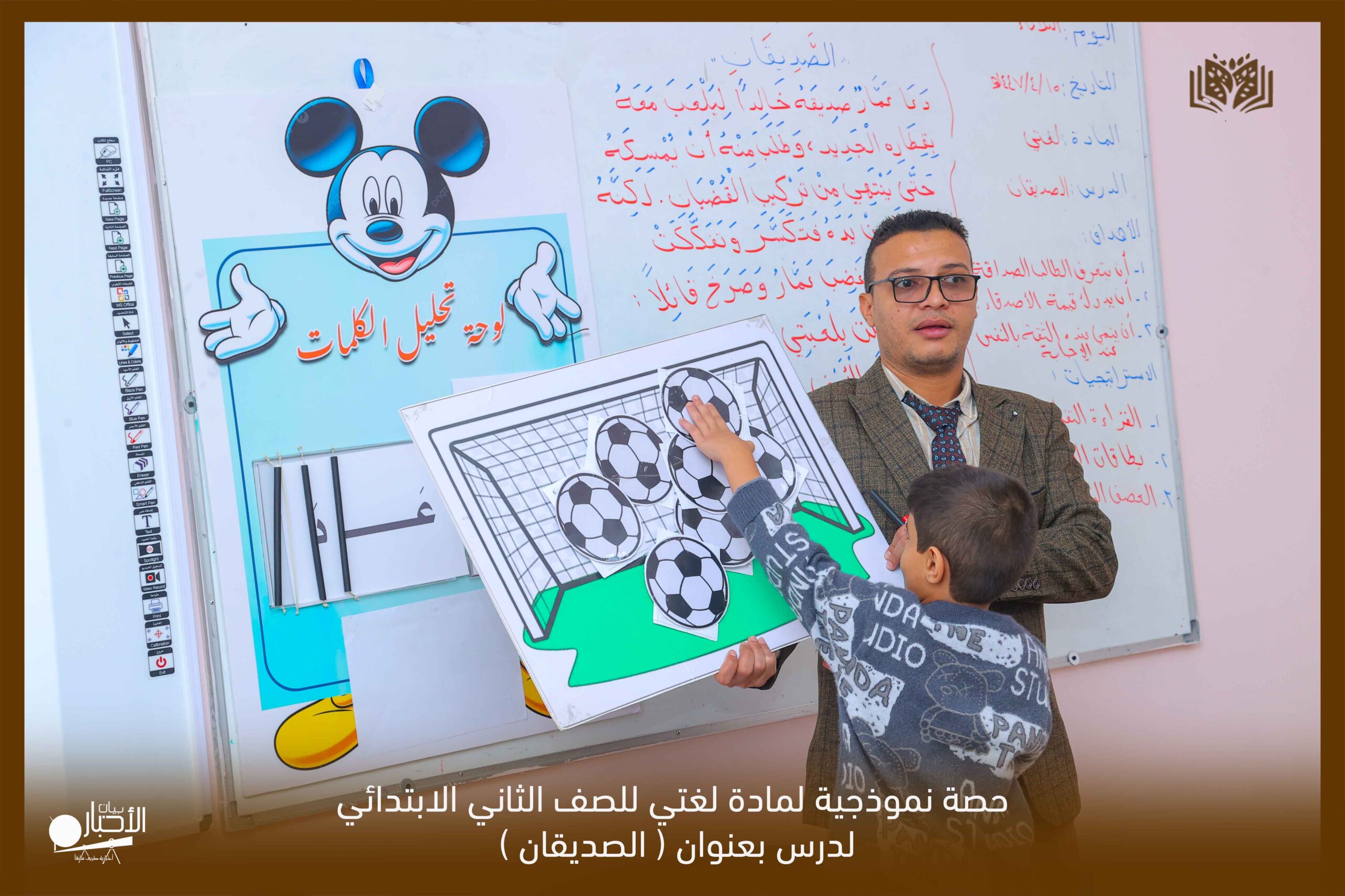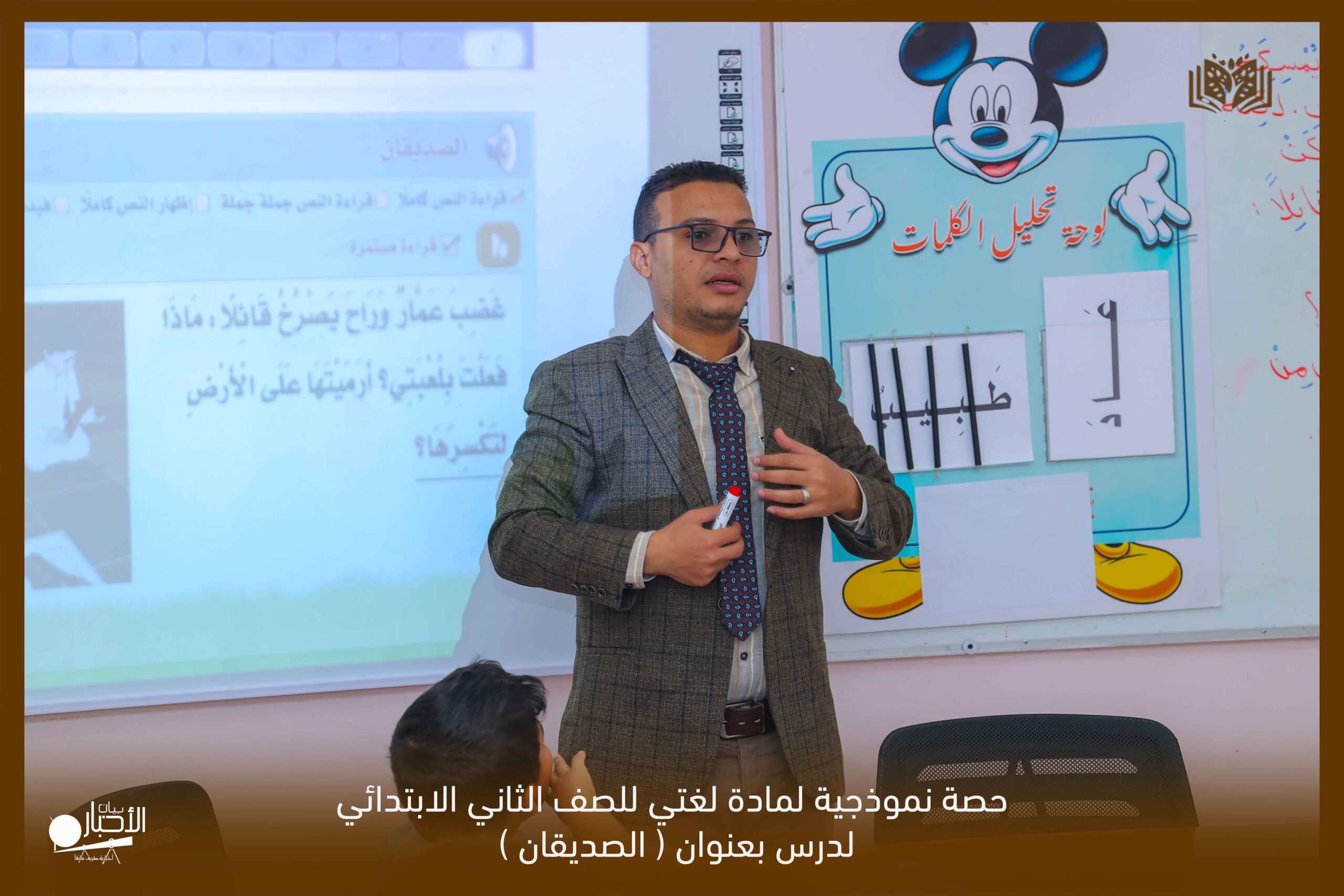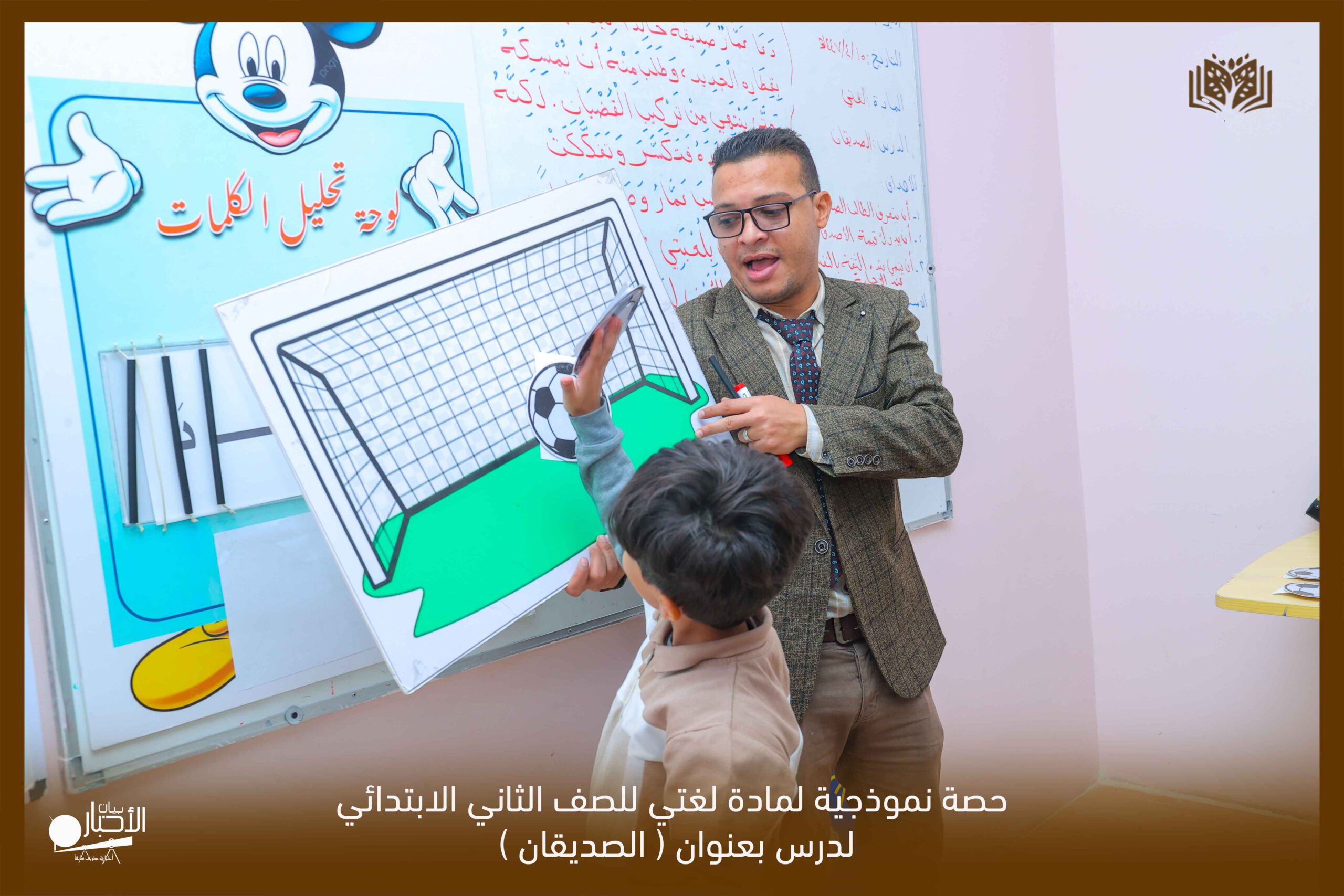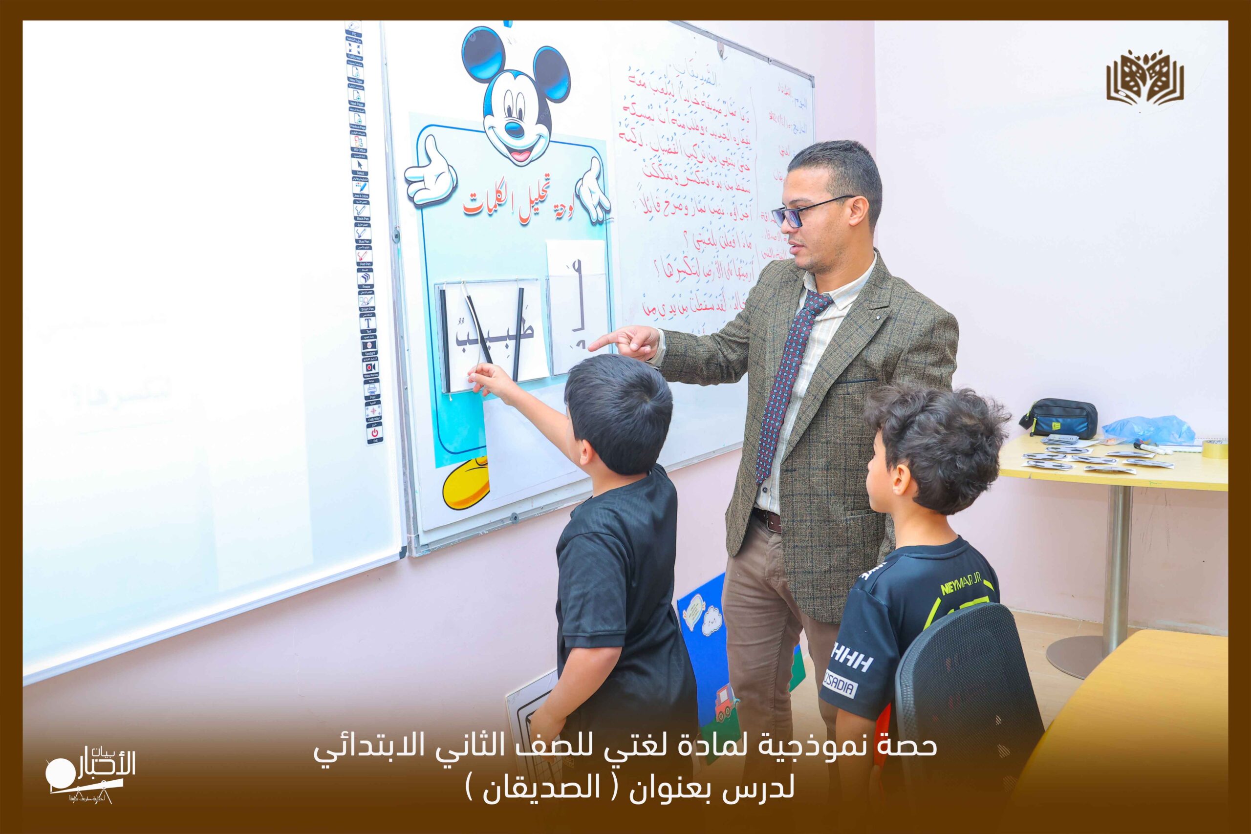 أقامت مدارس الوعد النموذجية حصة نموذجية لمادة لغتي للصف الثاني الابتدائي لدرس بعنوان ( الصديقان ) حيث استخدم المعلم استراتيجيات التعلم في التدريس ومنها ( التعلم النشط – العصف الذهني – التعلم التعاوني ) حيث تفاعل الطلاب مع المعلم أثناء الدرس تفاعلًا رائعًا وذلك باستخدام وسائل تعليمية متنوعة ٠