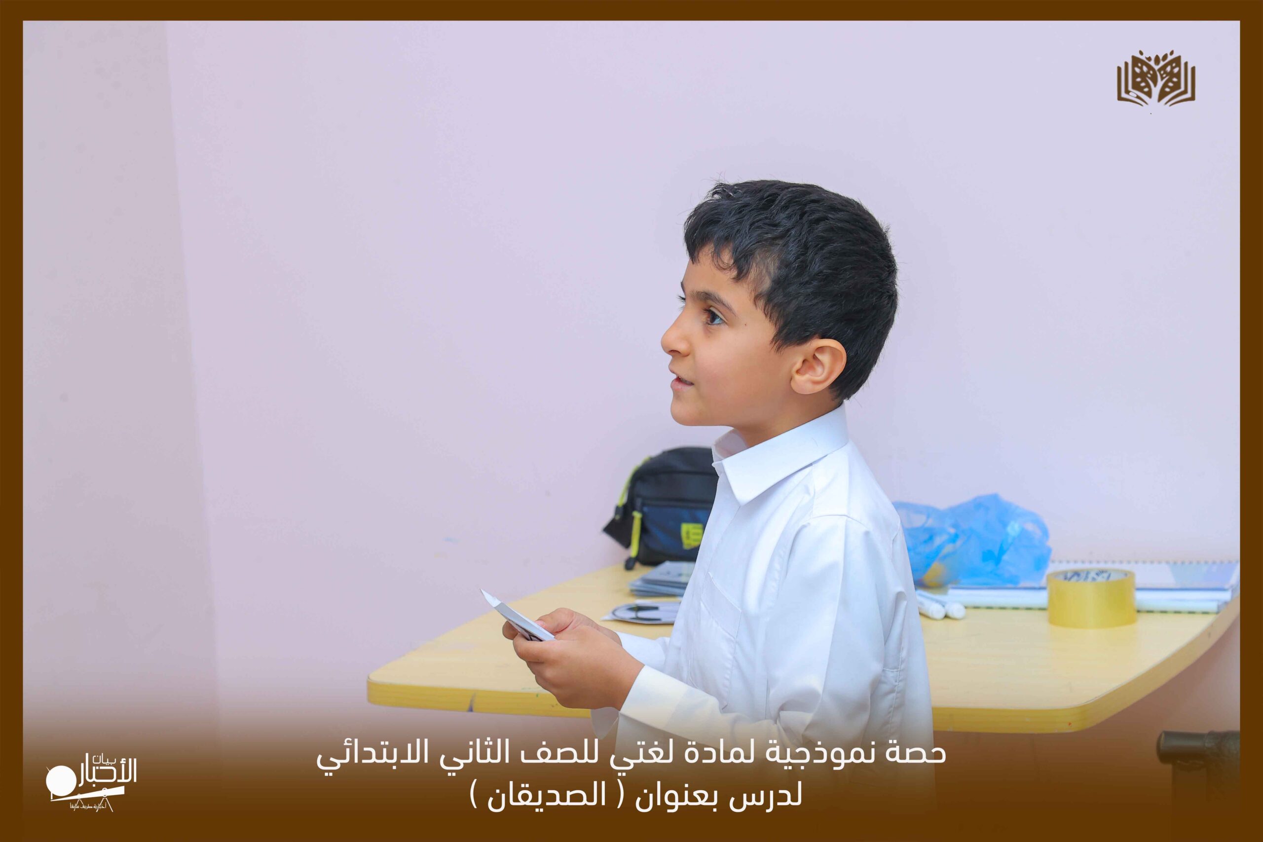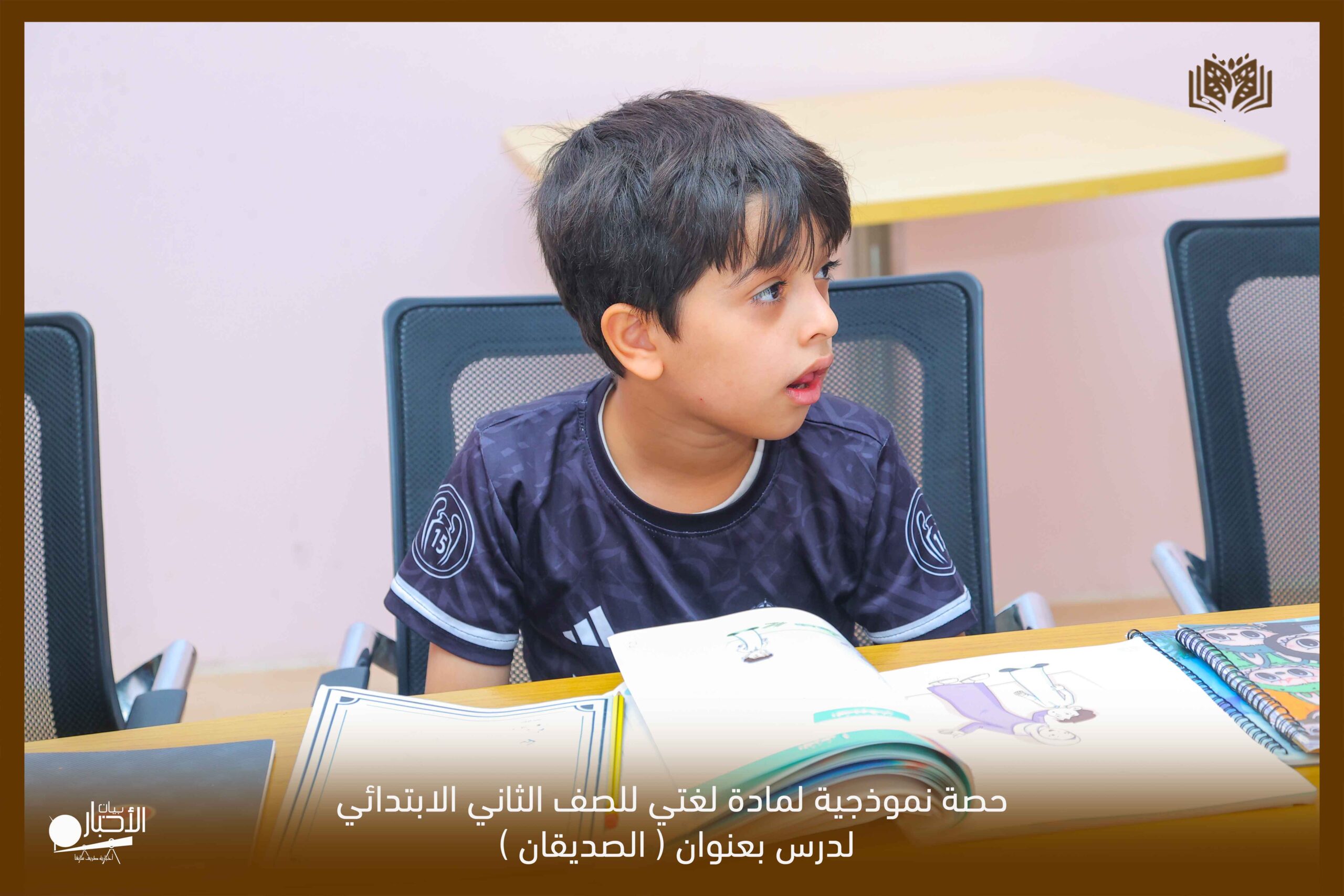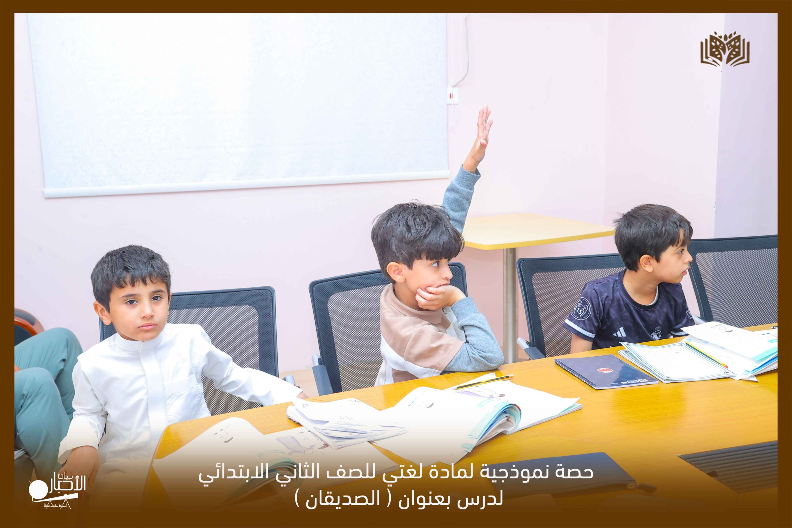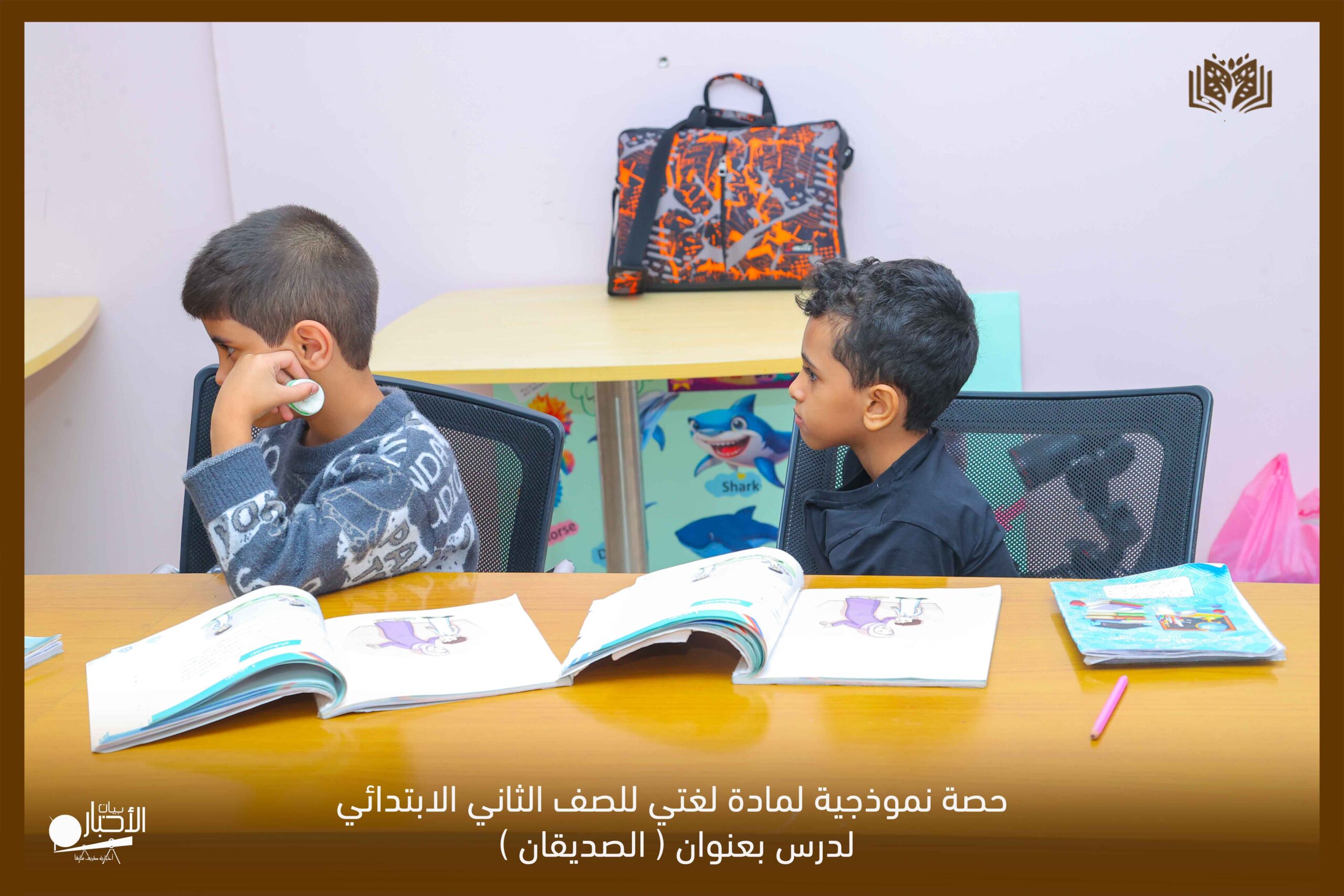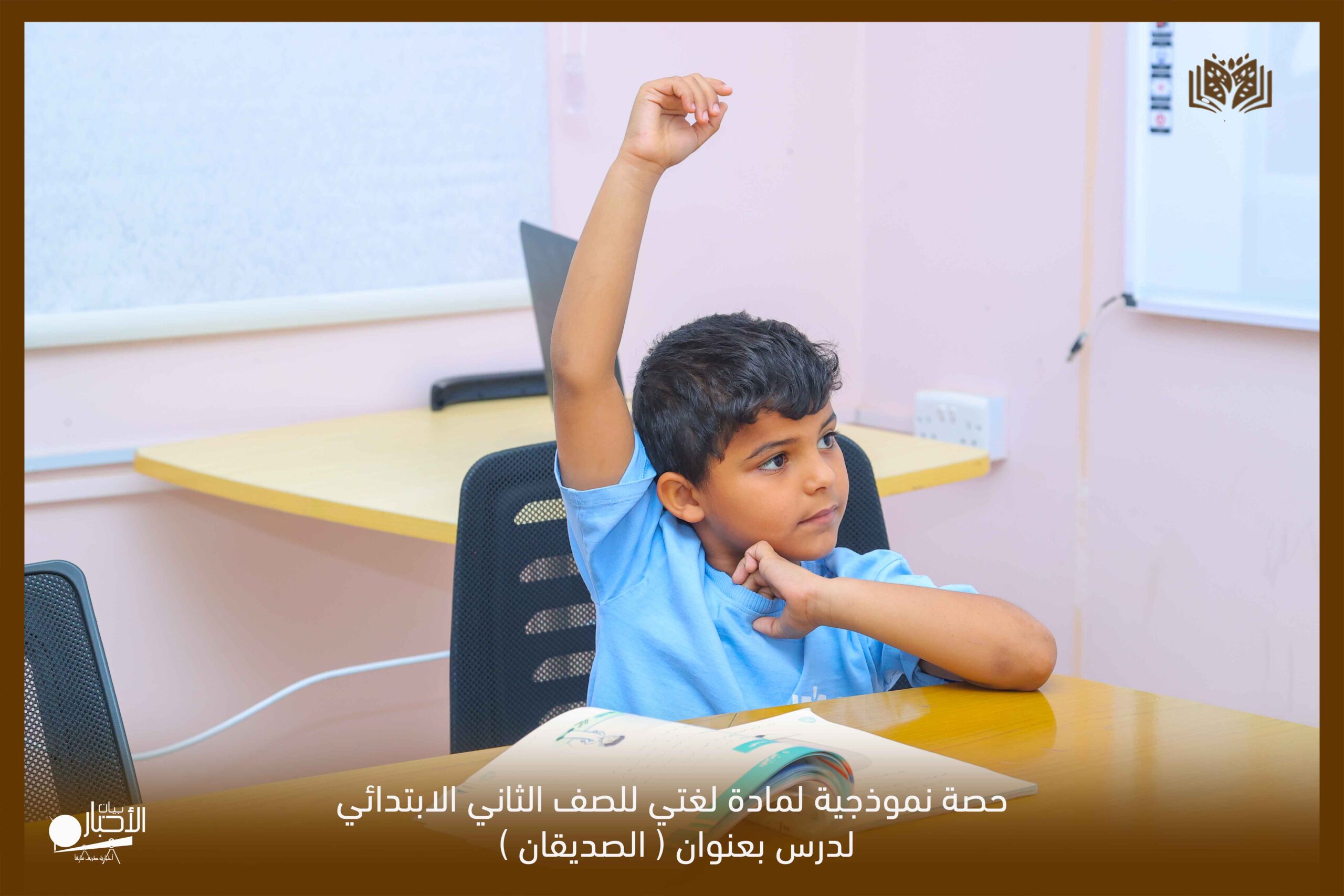 أقامت مدارس الوعد النموذجية حصة نموذجية لمادة لغتي للصف الثاني الابتدائي لدرس بعنوان ( الصديقان ) حيث استخدم المعلم استراتيجيات التعلم في التدريس ومنها ( التعلم النشط – العصف الذهني – التعلم التعاوني ) حيث تفاعل الطلاب مع المعلم أثناء الدرس تفاعلًا رائعًا وذلك باستخدام وسائل تعليمية متنوعة ٠