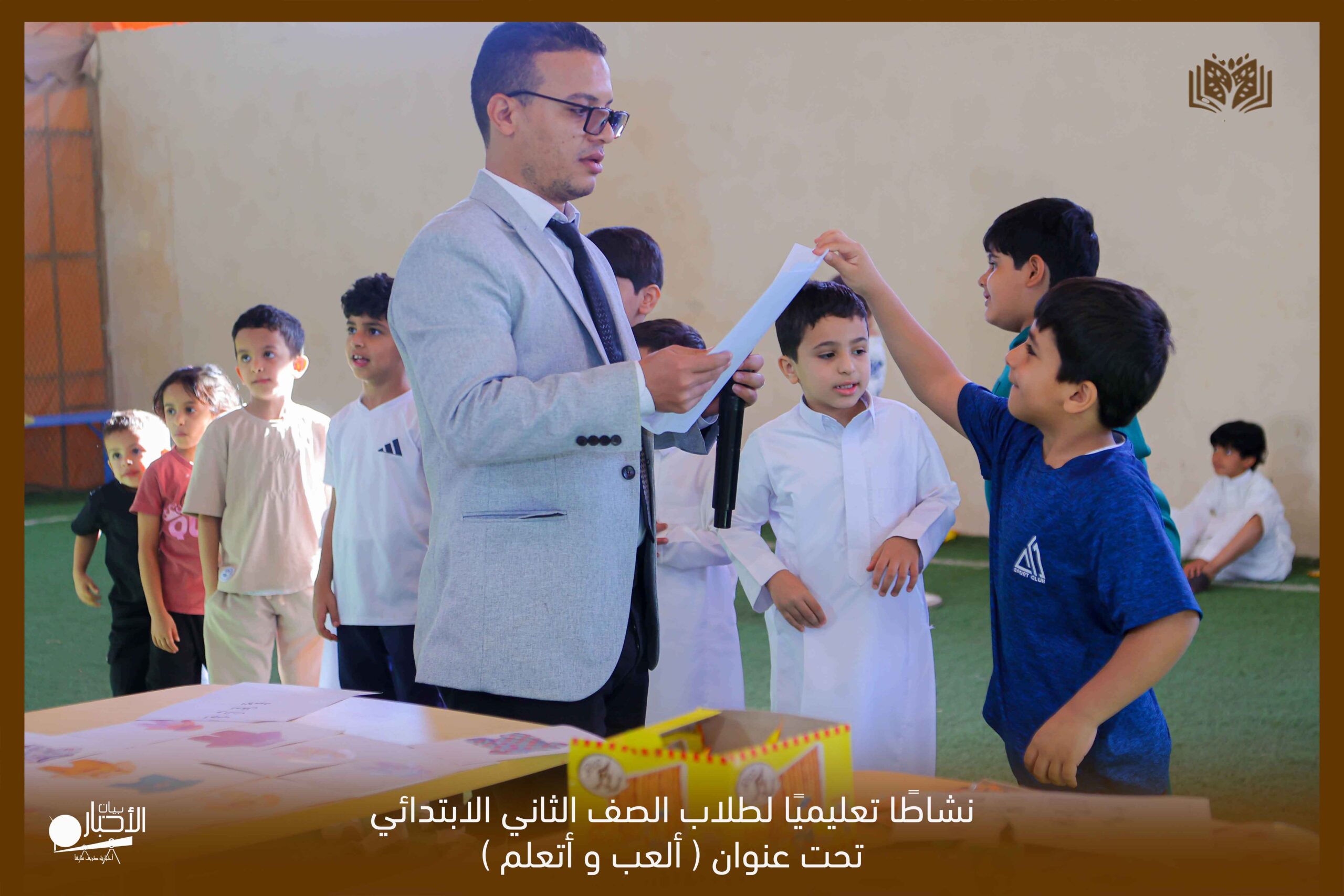 جاء ذلك من إعداد وتنفيذ معلمي الصف الثاني الابتدائي الأستاذ عبدالفتاح صالح و الاستاذ أسامة الملاح تحت وإشراف ومتابعة مدير المدرسة الأستاذ إسماعيل صالح العنزي والمشرف الفني للصفوف الأولية الأستاذ عبدالعظيم ماضي هذا وتتمنى إدارة المدارس دوام التوفيق والنجاح لأبنائها الطلاب .